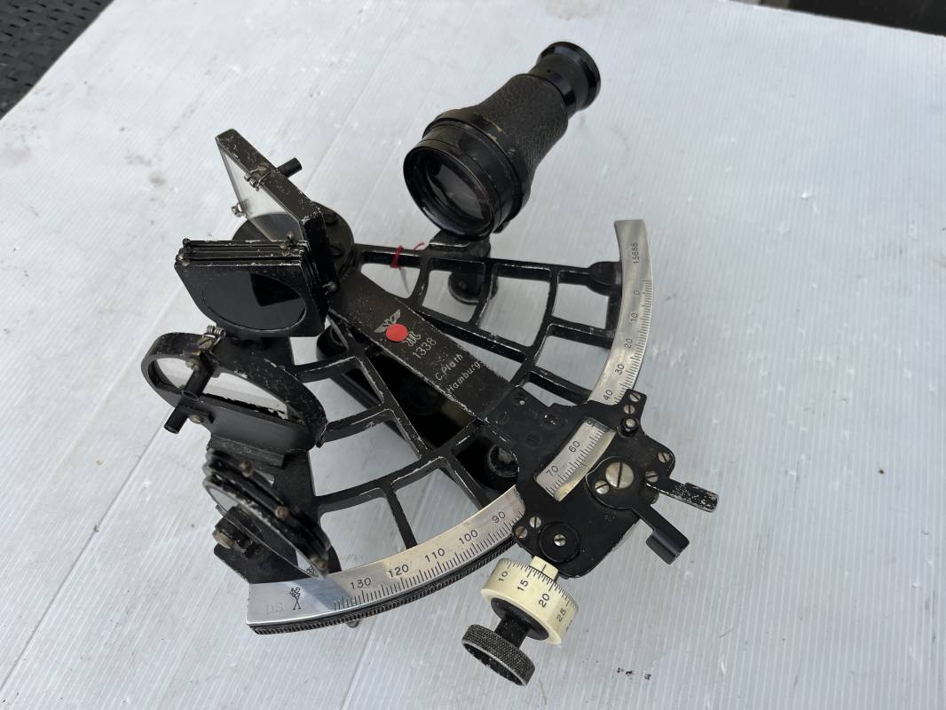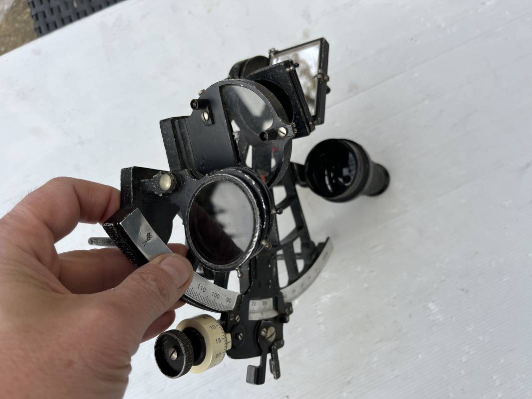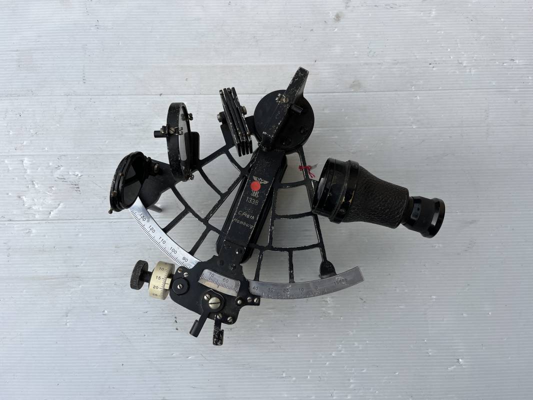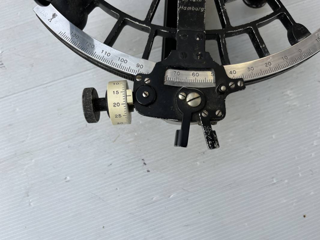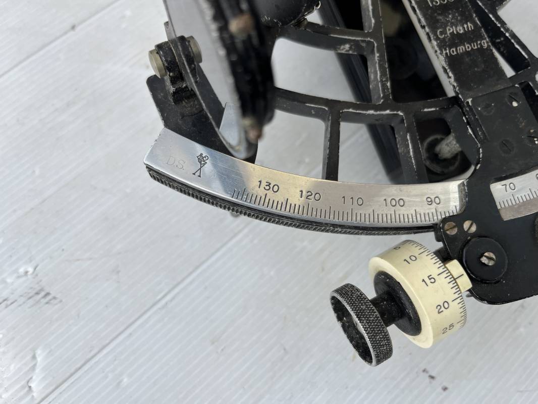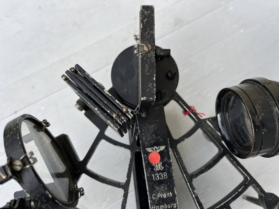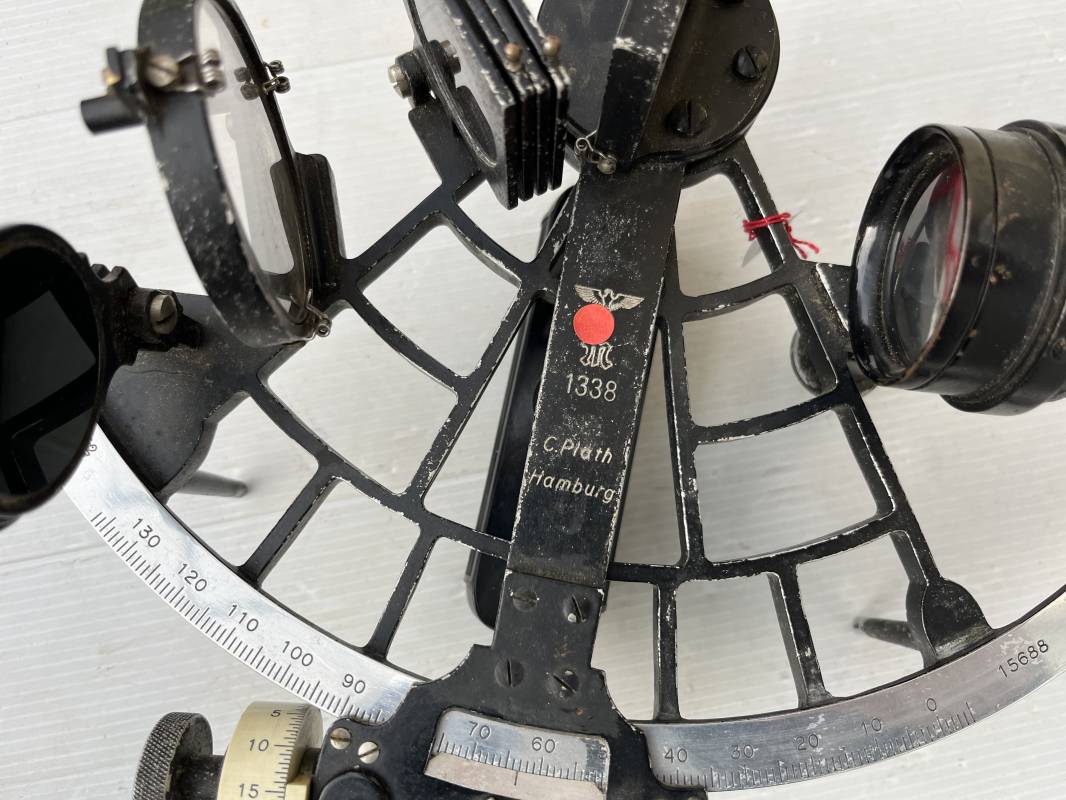 Rare sextant de la Kriegsmarine . Marquage fabricant C.Plath Hamburg . Numero matricule . Réceptionné avec aigle de la KM . Sextant en métall , peinture noire d origine . Optique et miroirs . Poignée de maintient en plastique noir . Bon instrument de navigation en bon état . Peu courant 1935/45 Ref 21137