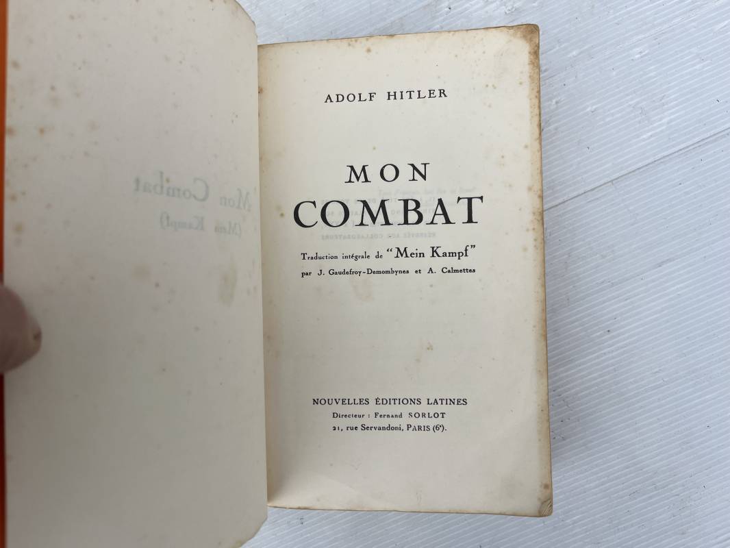 Rare livre Mein Kampf édition originale 1934 par 'les nouvelles éditons latines' . Livre dimensions 150X230 mm 690 pages . Couverture en carton orangé . Préface du Maréchal Lyautey ' Tout Francais doit lire ce livre' .Trés bel état Rare livre historique Ref 21754