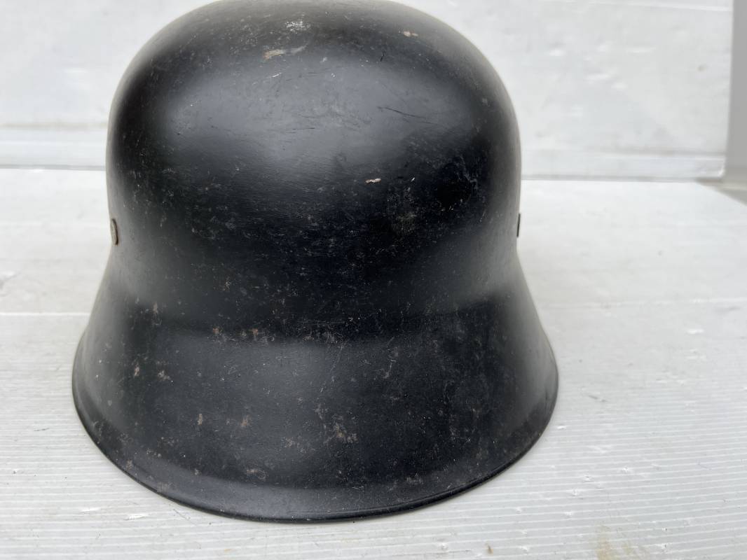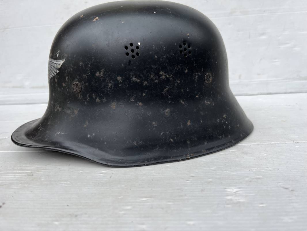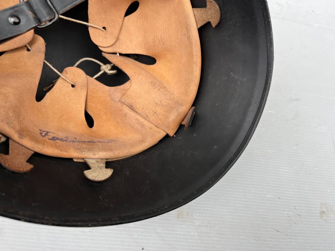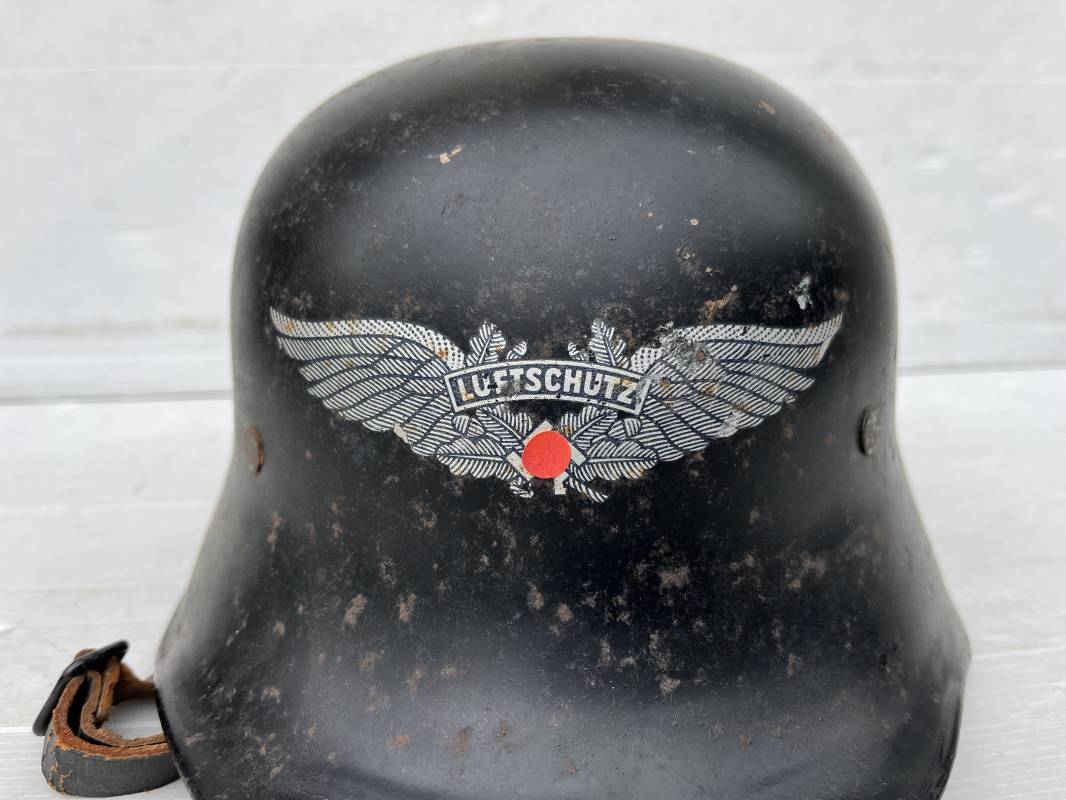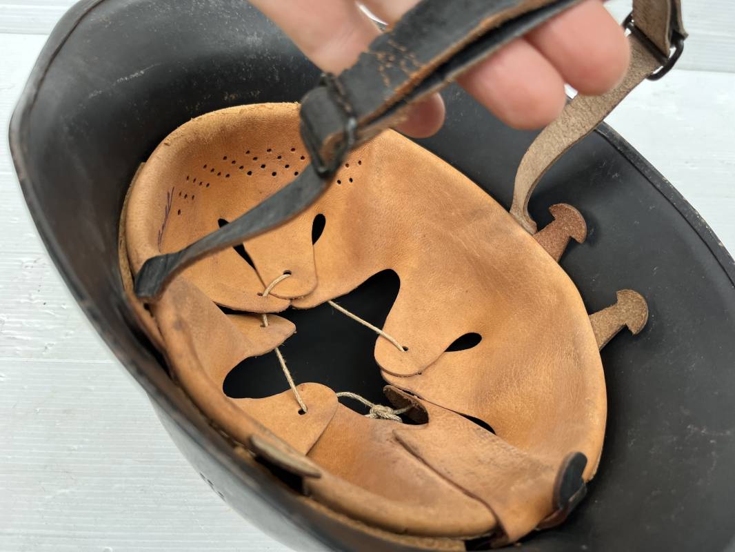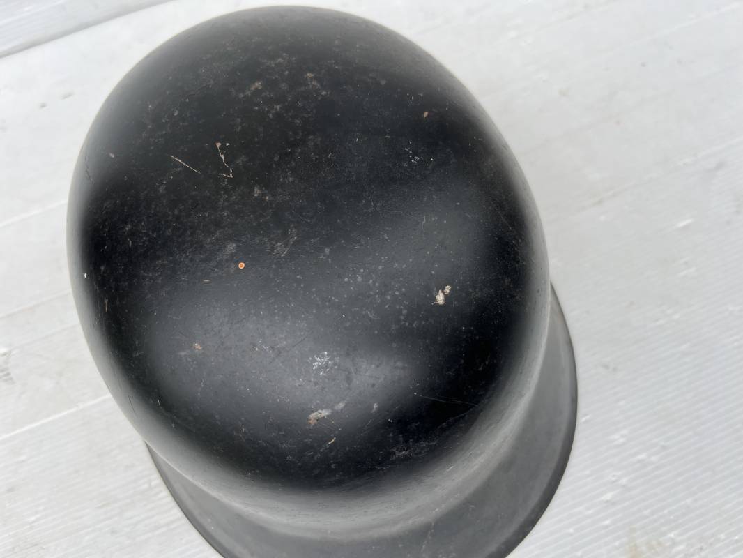 Tres beau casque modele 1934 de la Luftschutz ( défense passive du Reich ) . Casque en acier , peinture bleu nuit d'usinage , oeillets de ventilation . Insigne frontal de la LS sur le devant . Jugulaire en cuir noir et boucles metalliques , cuir souple . Coiffe interieure en cuir naturel fauve , cuir souple . Lacet coton d'origine taille 56 . Casque légérement porté en tres bel état 1940/45 Ref 19842