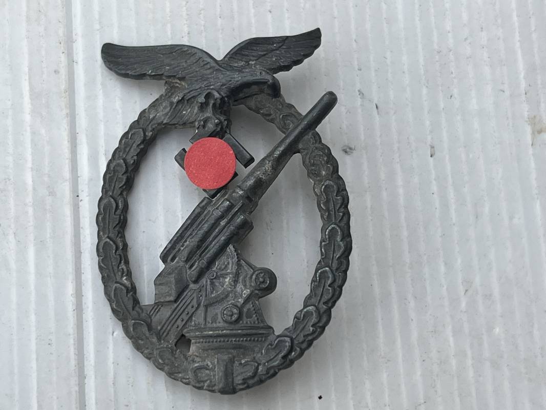 Beau badge de la Flak Artillerie de la Luftwaffe . Badge en zinc . Belle fabrication massive. Beaux reliefs. Attache et crochet au dos.Légérement porté en parfait état Ref 21387