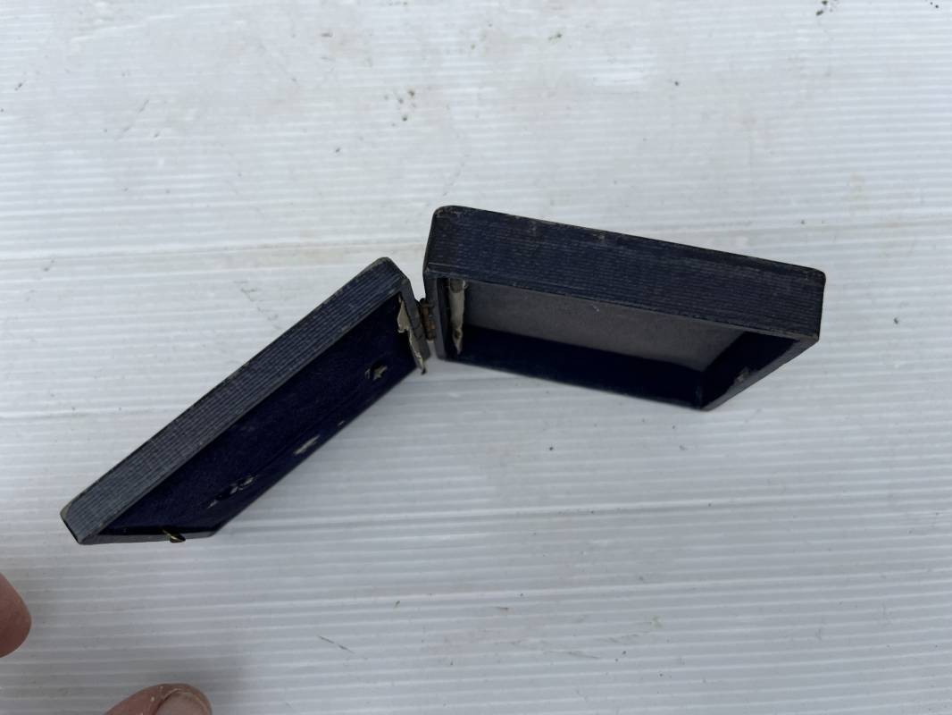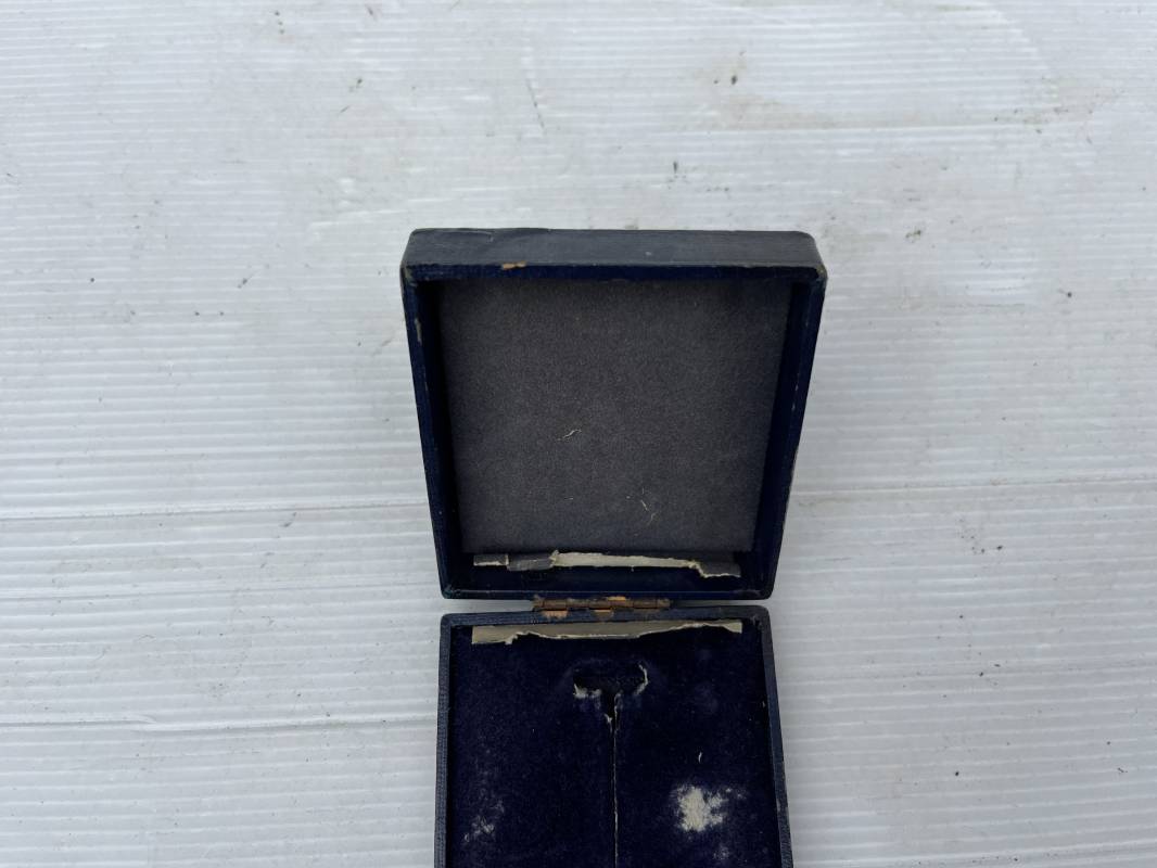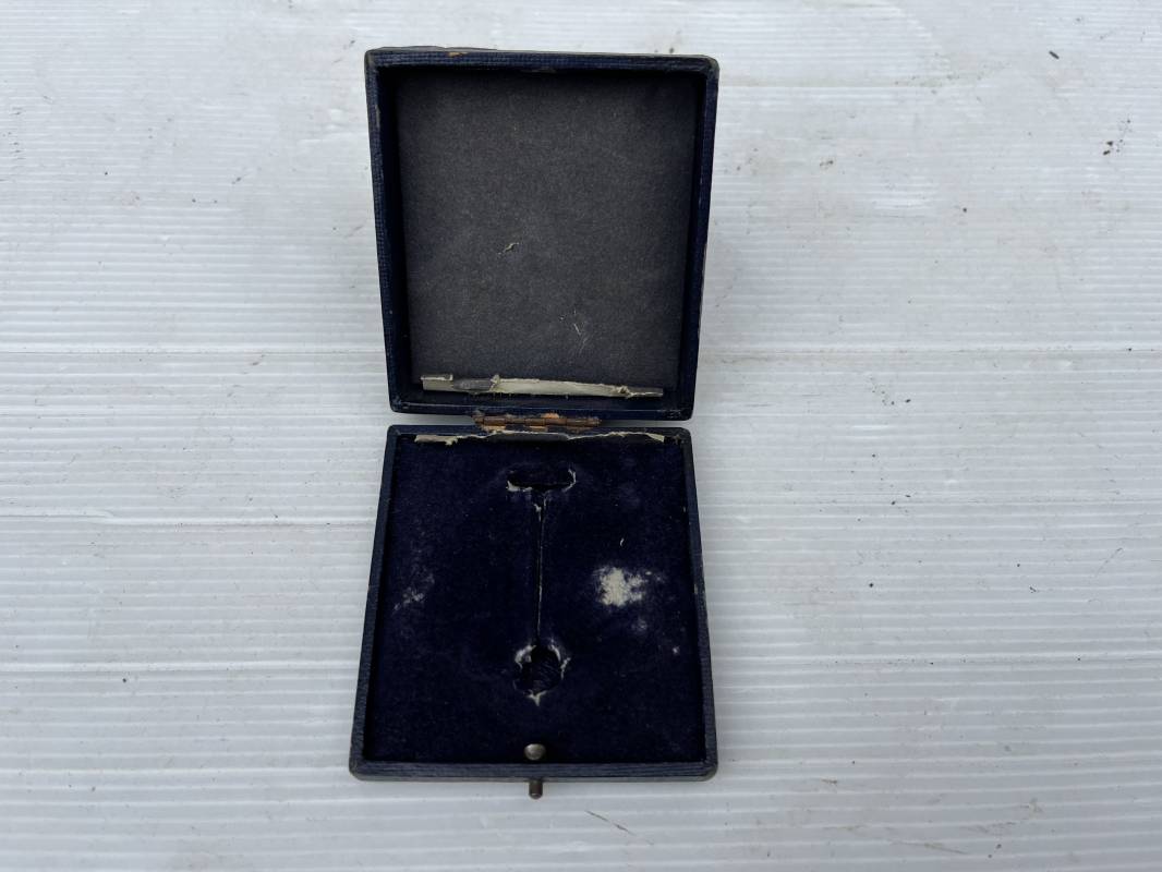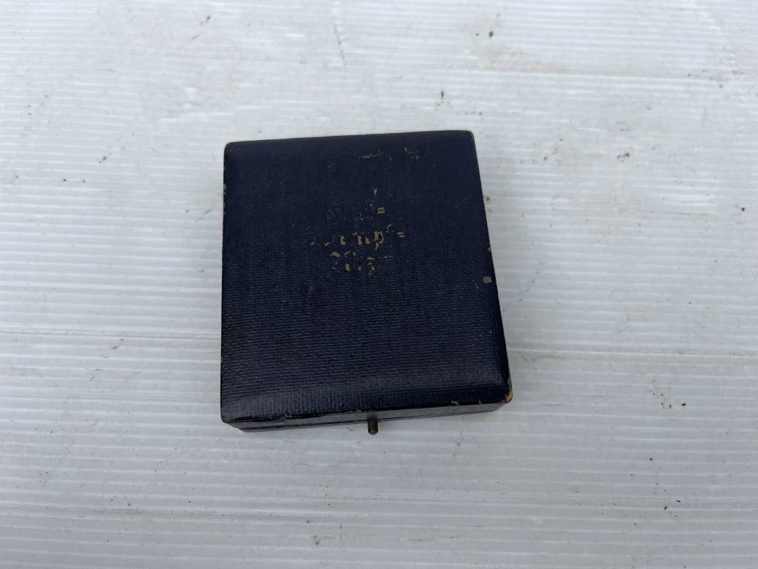 Beau boitier du badge Flak de la Luftwaffe . Boitier en carton recouvert papier bleu nuit . Marquage sur le dessus Flak Kampf Abz . Dimensions 75X80X25 mm Intérieru doublé en velours gris et bleu nuit . Boitier utilisé . Dans son jus . 1935/45 Ref 18032