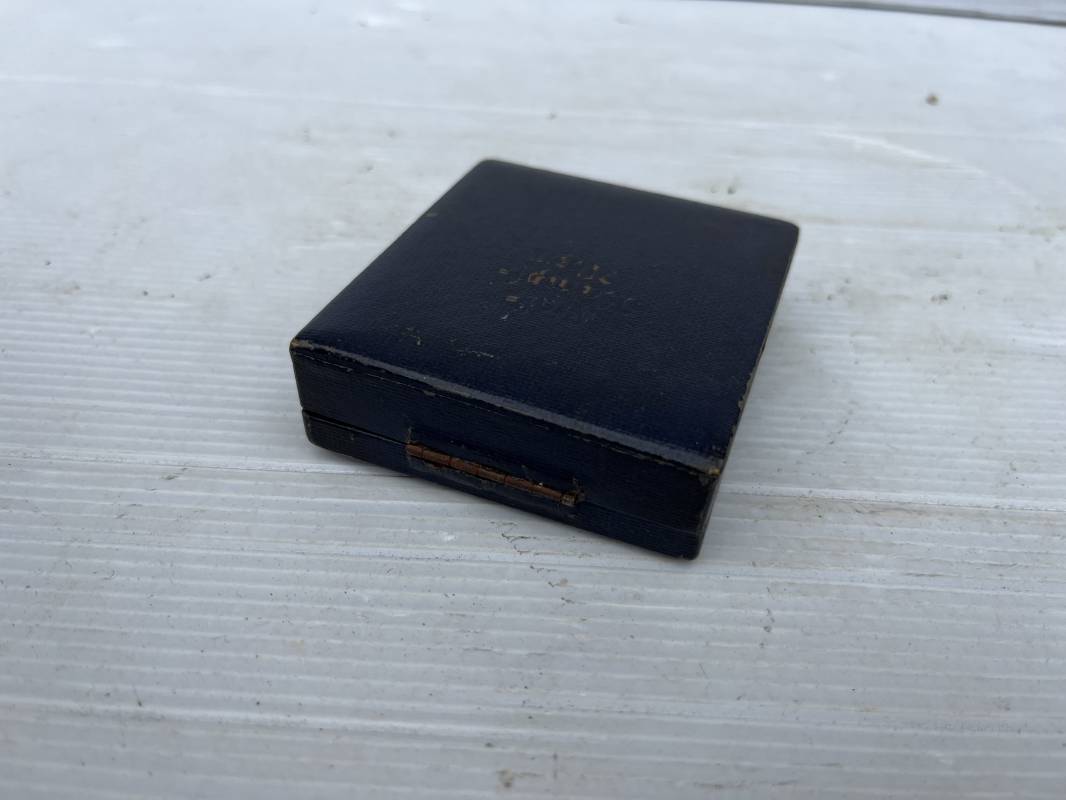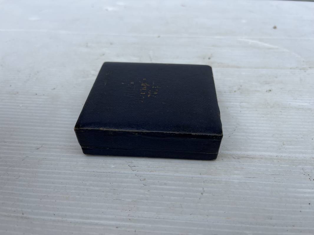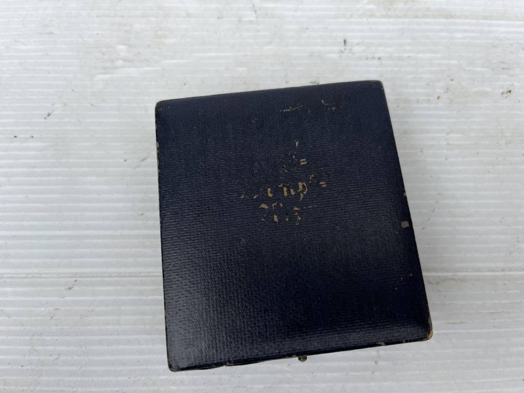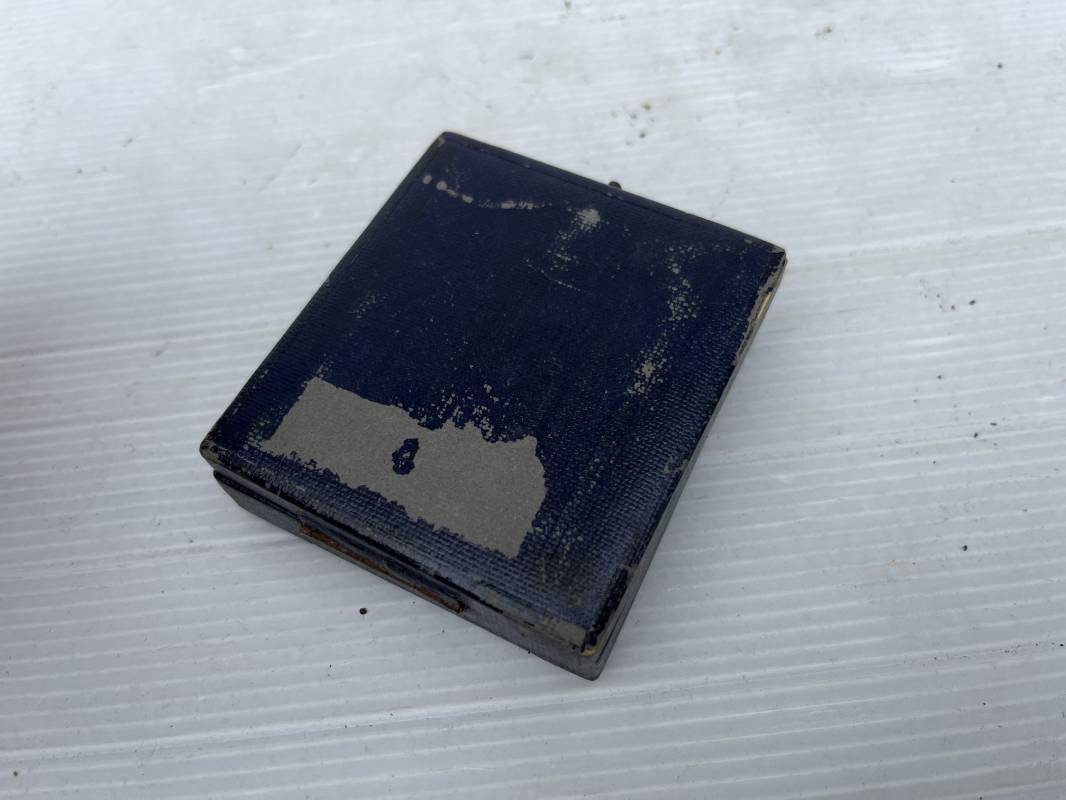 Beau boitier du badge Flak de la Luftwaffe . Boitier en carton recouvert papier bleu nuit . Marquage sur le dessus Flak Kampf Abz . Dimensions 75X80X25 mm Intérieru doublé en velours gris et bleu nuit . Boitier utilisé . Dans son jus . 1935/45 Ref 18032