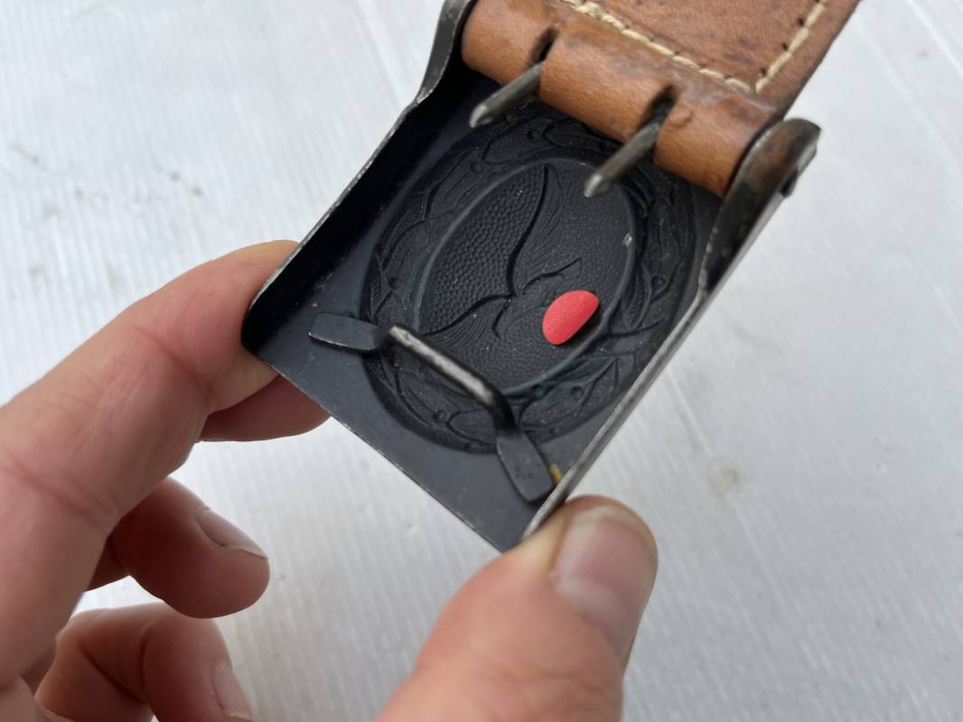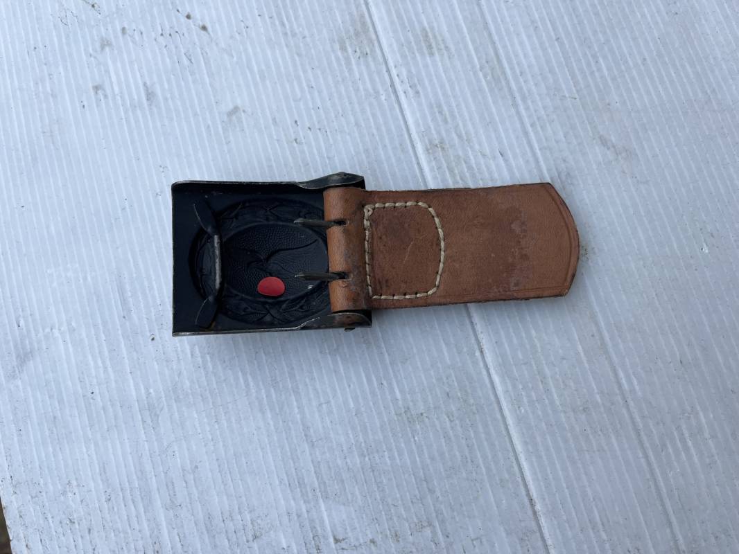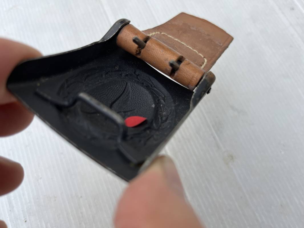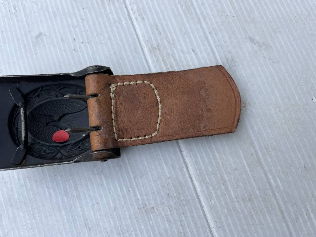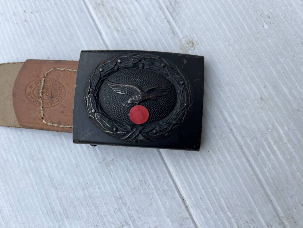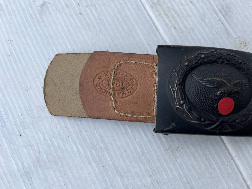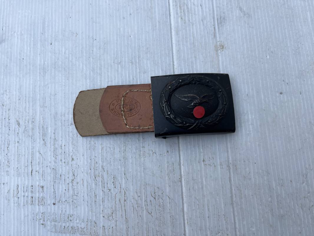 Trés belle boucle de ceinturon troupe de la Luftwaffe du modéle 1940 en fer peint gris bleu . Cette boucle est dans un état quasi neuf . Boucle fer avec peinture d origine à 100 % . Patelette en cuir fauve avec marquage fabricant .J.C.Maedickere Berlin 1941 Superbe boucle dans un état de conservation exceptionnel Ref 21604