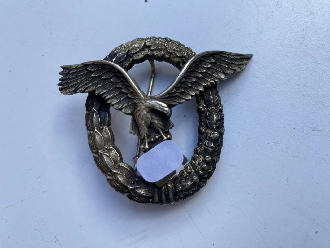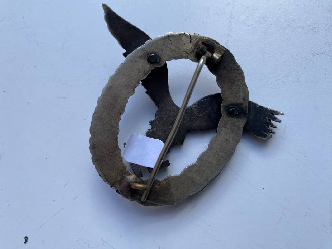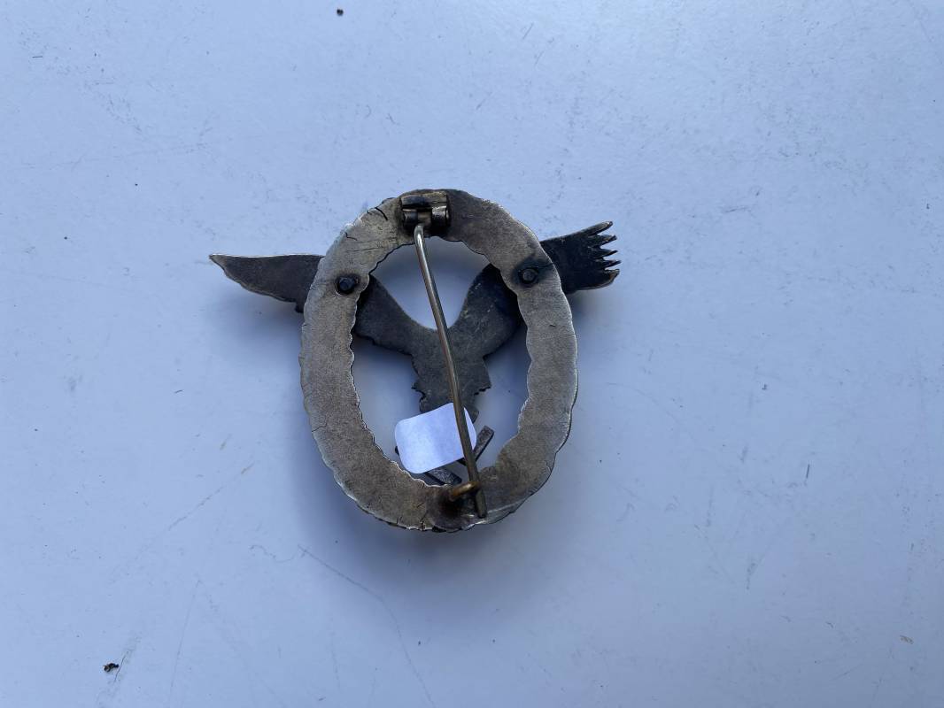 Très beau brevet de pilote de la Luftwaffe fabricant . Brevet en maillechort. Très belle fabrication soignée légèrement bombée. Couronne et feuilles de chêne. Aigle riveté, très beaux relief . Attache et crochet d'origines au dos. Légèrement porté en parfait état 1940/45.Ref 19093