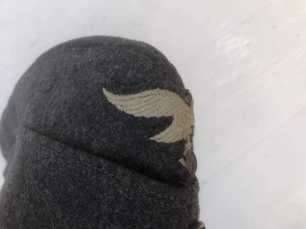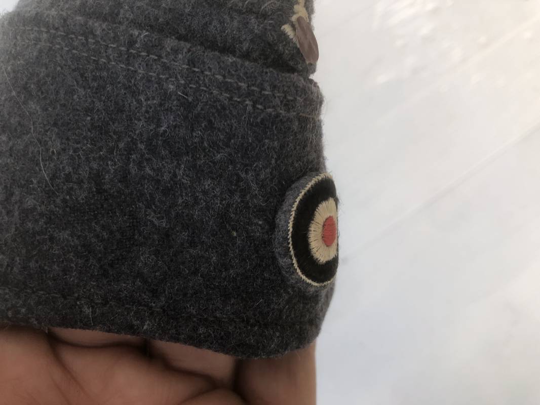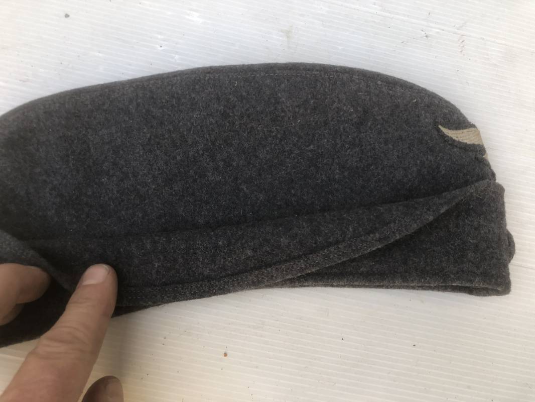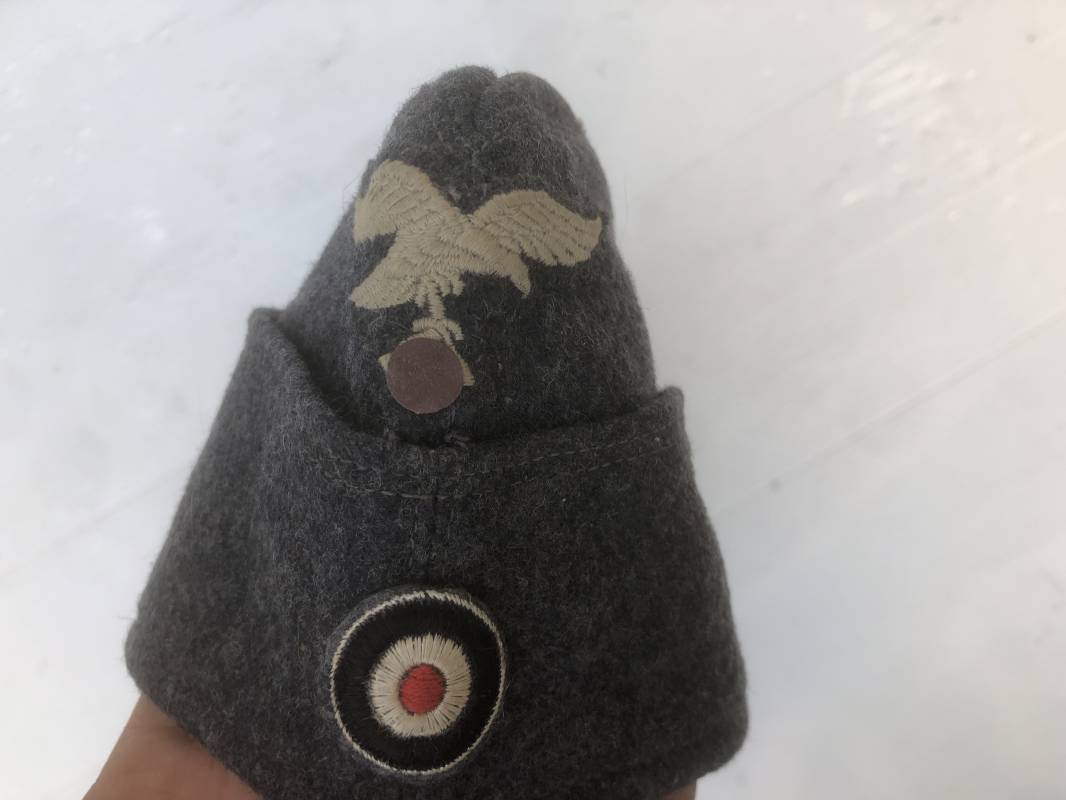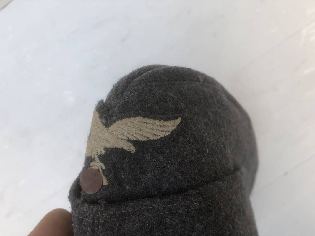 Trés beau calot troupe modéle 1935 de la Luftwaffe . Calot de dotation en drap gris bleu . Rabats , insigne brodés coton aigle et cocarde . Intérieur doublé en coton gris bleu , marquage encre balnc code fabricant Rbnr . Taille 56 . Légèrement porté en trés bel état 1935/45 Ref 19684