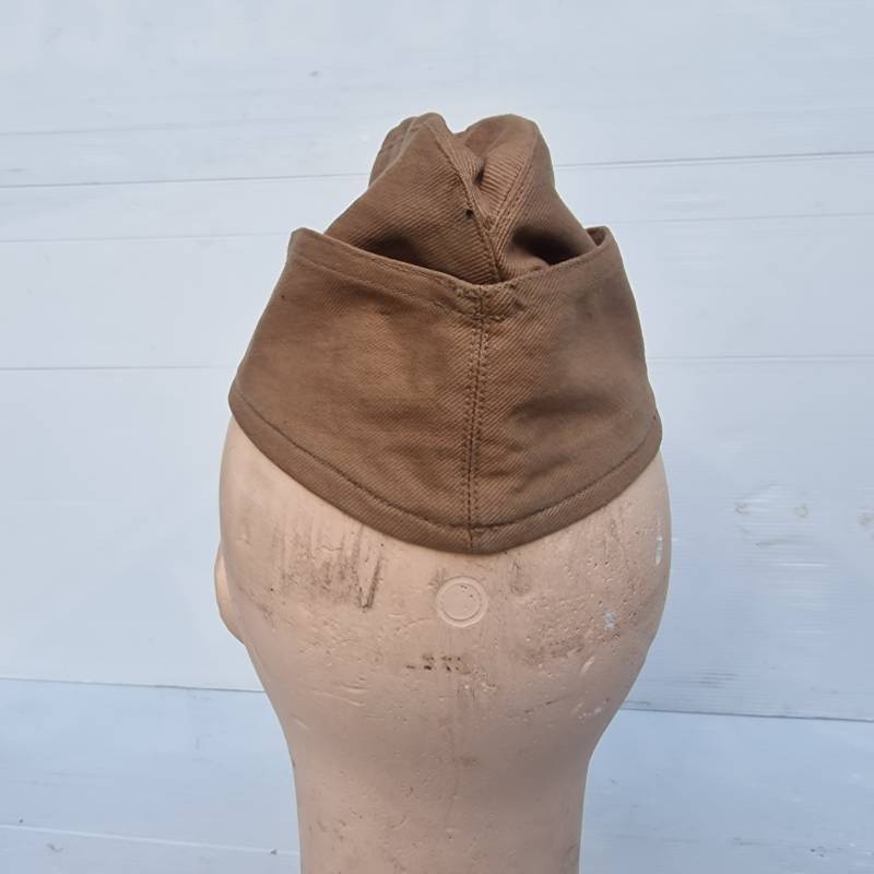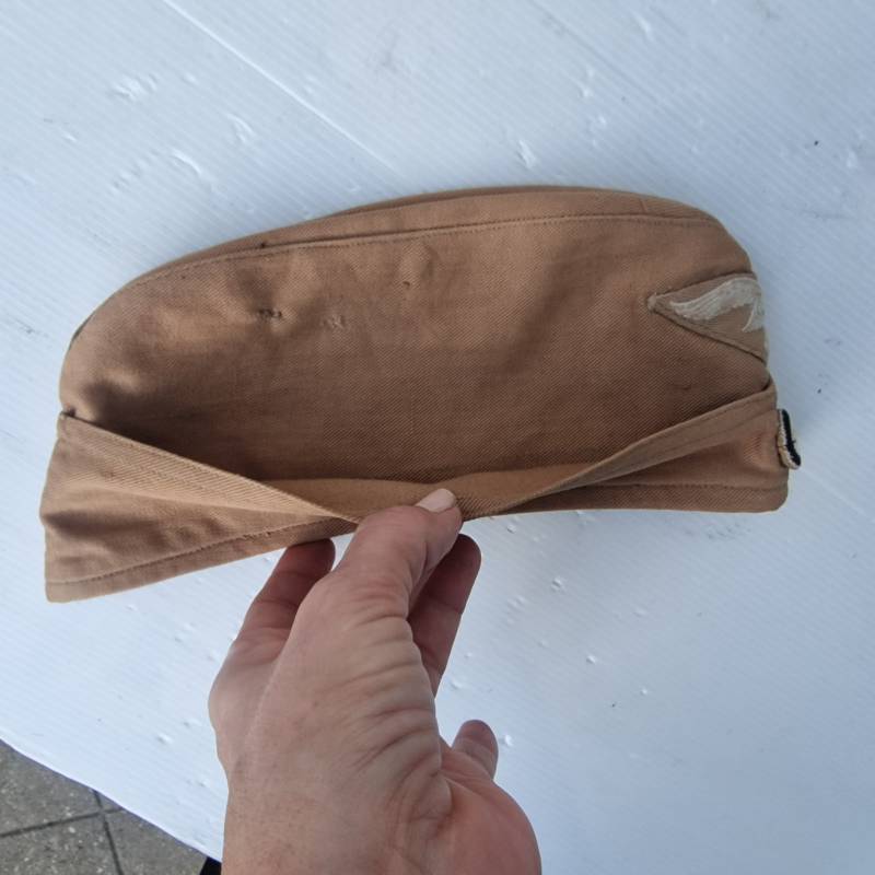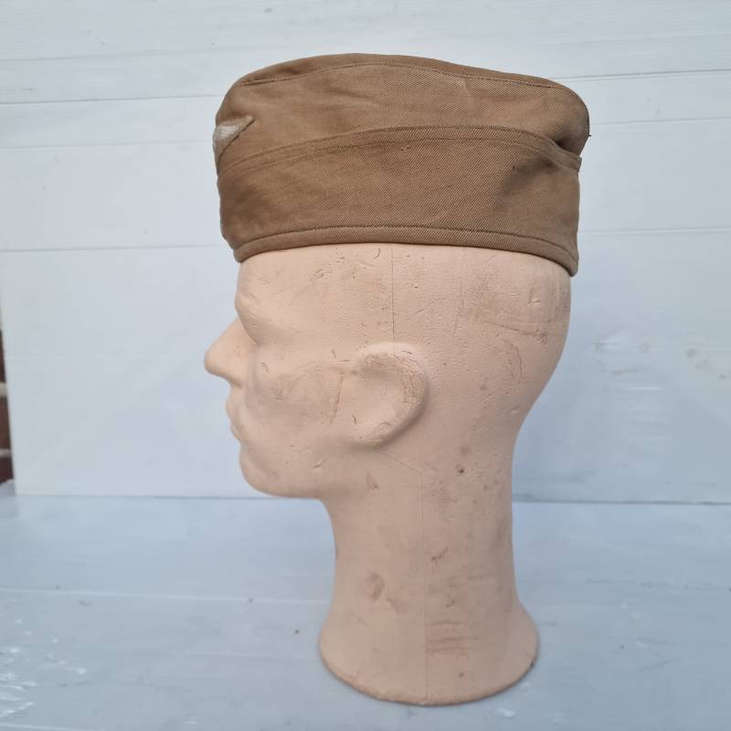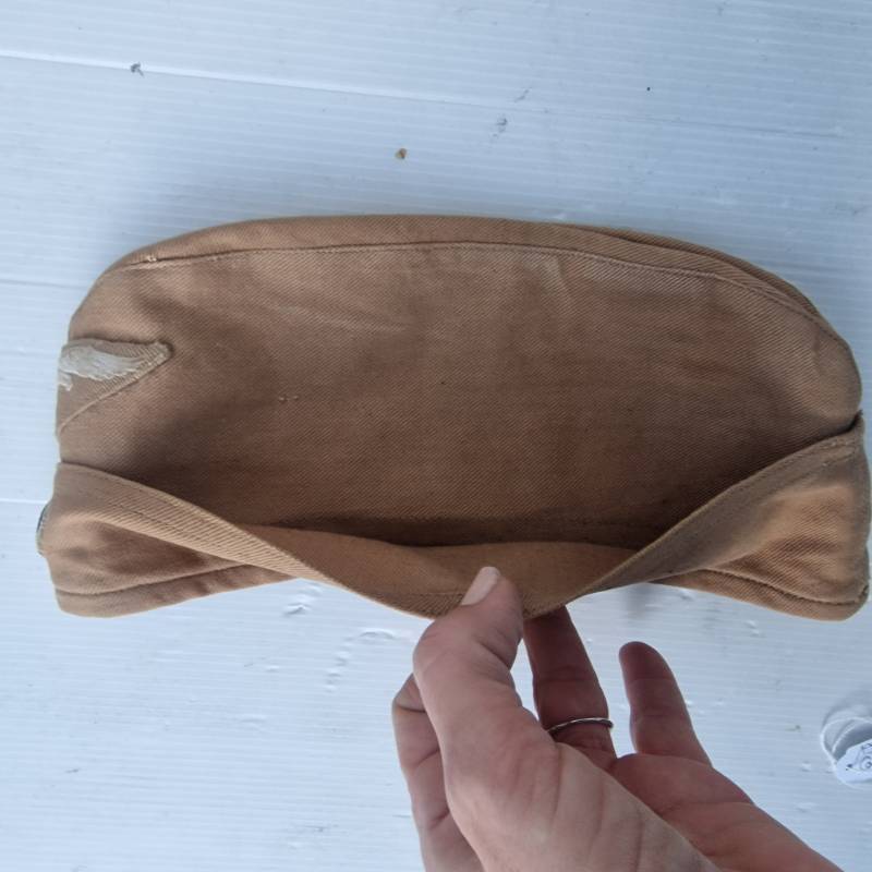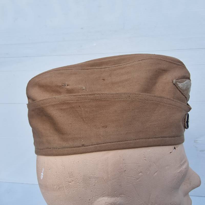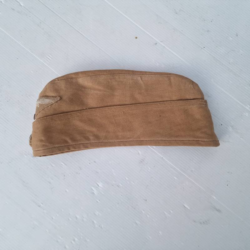 Rare calot trpopical modéle 1941 de la luftwaffe . Calot en toile de coton jaune sable . Rabats en toile . Aigle et cocarde du modéle tropical brodés coton . Intérieur doublé en toile de coton jaune , marquage fabricant Paischwick Berlin 1942 Taille 57 . Calot de dotation légérement porté en bel état 19141/43 Ref 19632