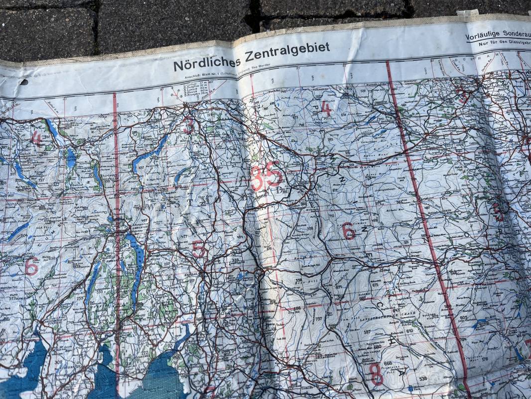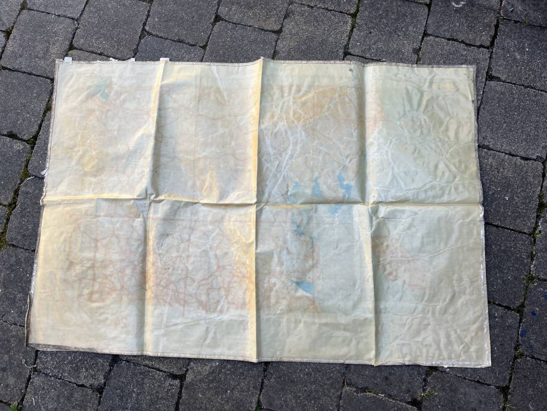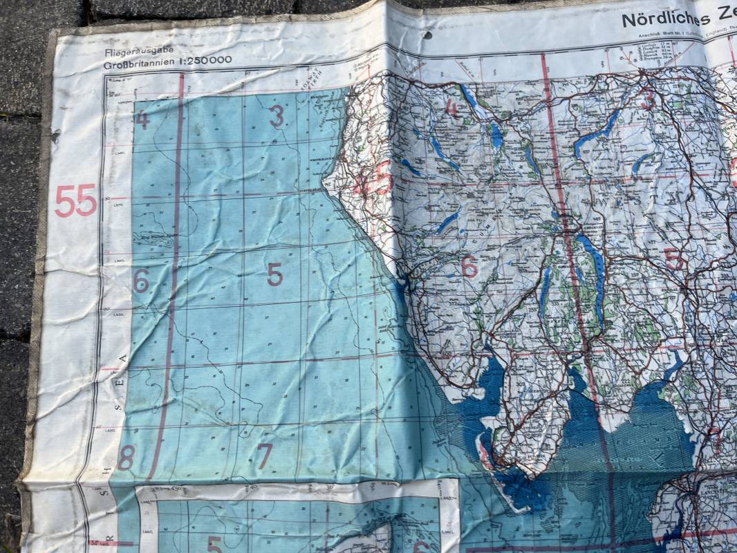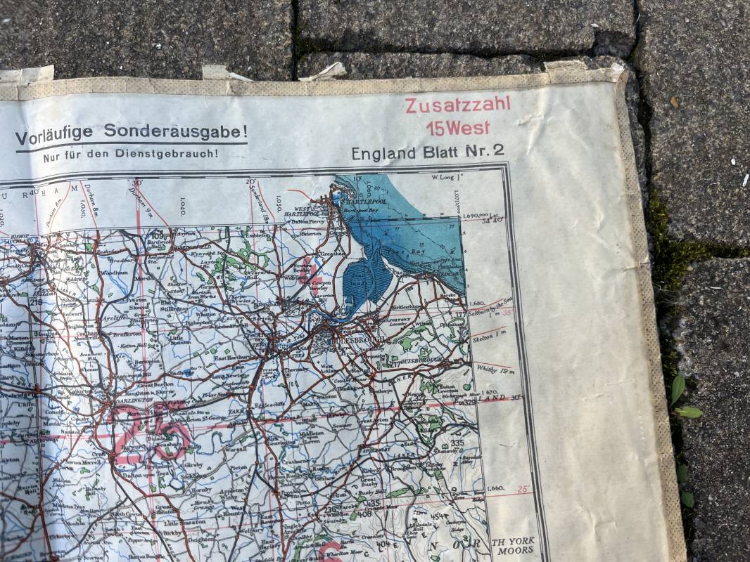 Rare carte de vol d'un navigant de la Luftwaffe . Carte en toile plastifiée dimensions 900X620 mm . Angleterre Centre ' . Secteur ville Preston . Beles couleurs . Utilisé en bel état . Ref 18181