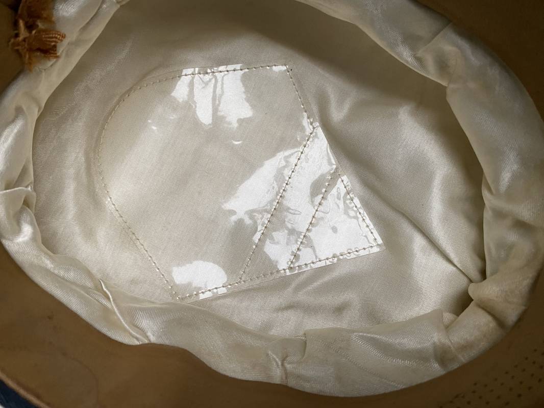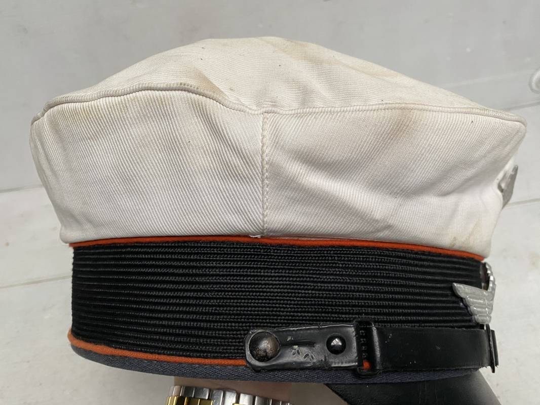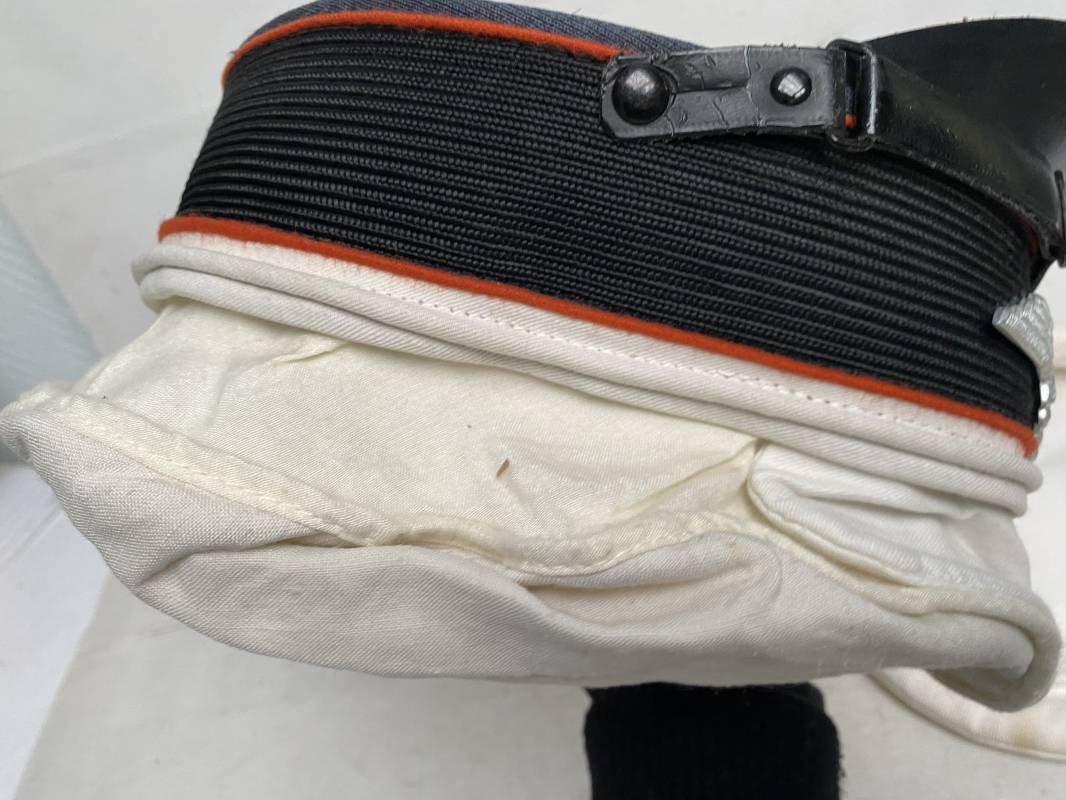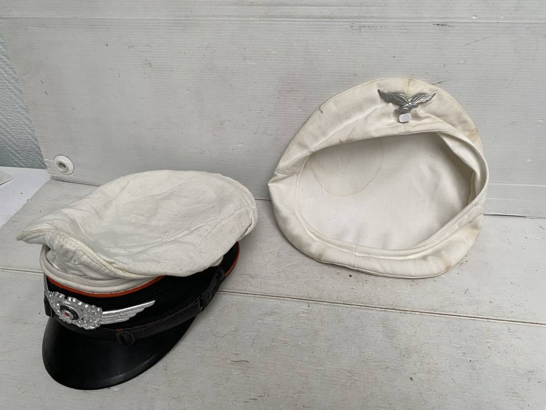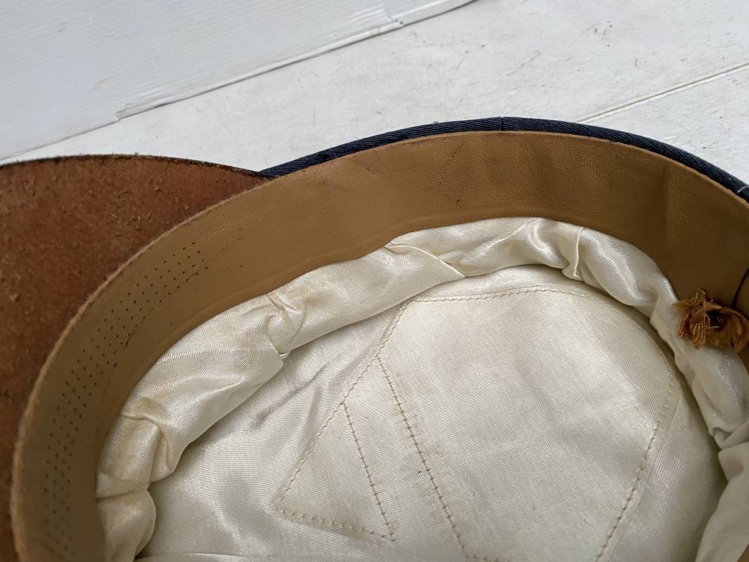 Rare casquette d'été d'un sous officier de l'Artillerie (Flak) de la Luftwaffe. Casquette avec coiffe amovible en coton blanc. Insignes alu aigle et cocarde. Bandeau de coiffe extèrieur en coton satiné noir. Liseré rouge de l'Artillerie (Flak). Jugulaire en cuir vernis noire. Visière en cuir noir, revers en cuir naturel. Intèrieur doublé en satinette blanche. Rhodoid. Bandeau de coiffe intèrieur en cuir marron clair. Petit noeud soie marron. Taille 56. Casquette légèrement portée en parfait état. Rare casquette d'été de la Flak avec visière en cuir 1935/45. Ref 18728