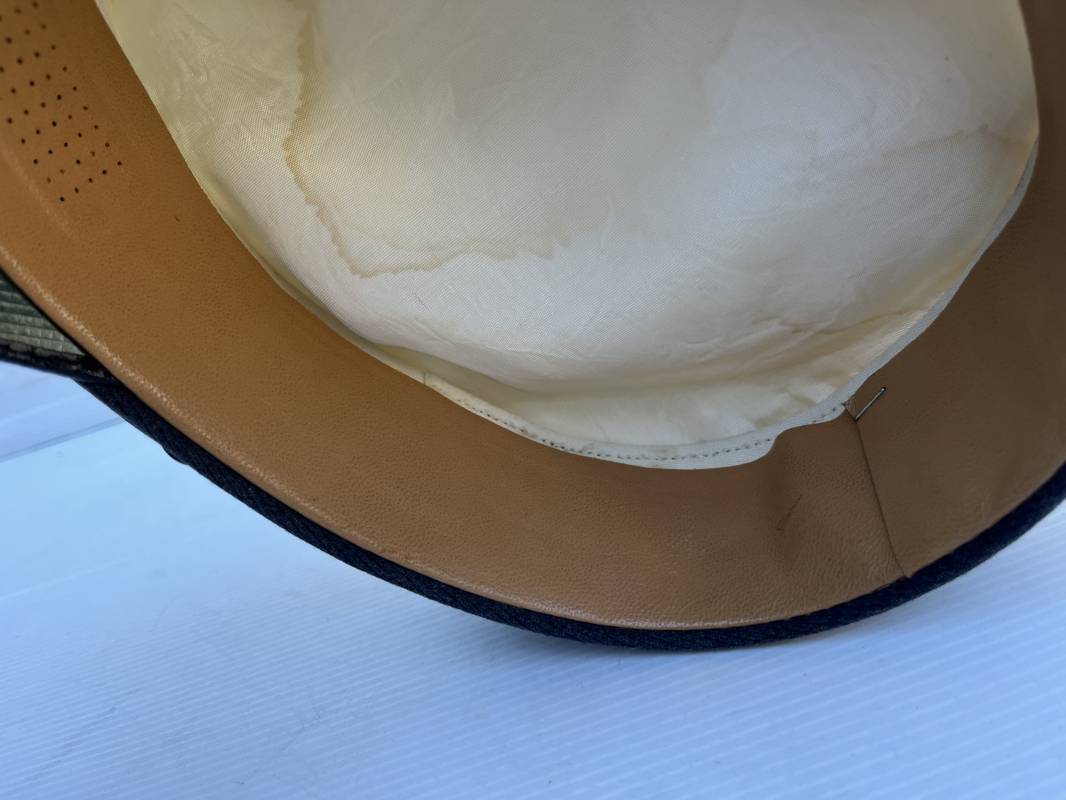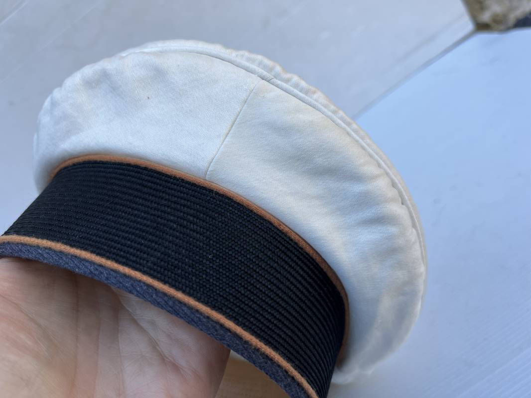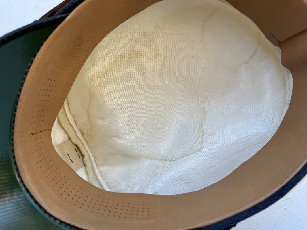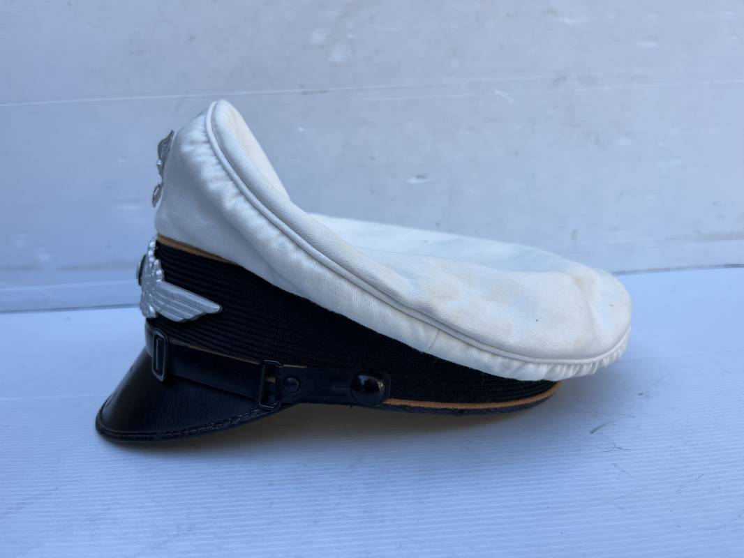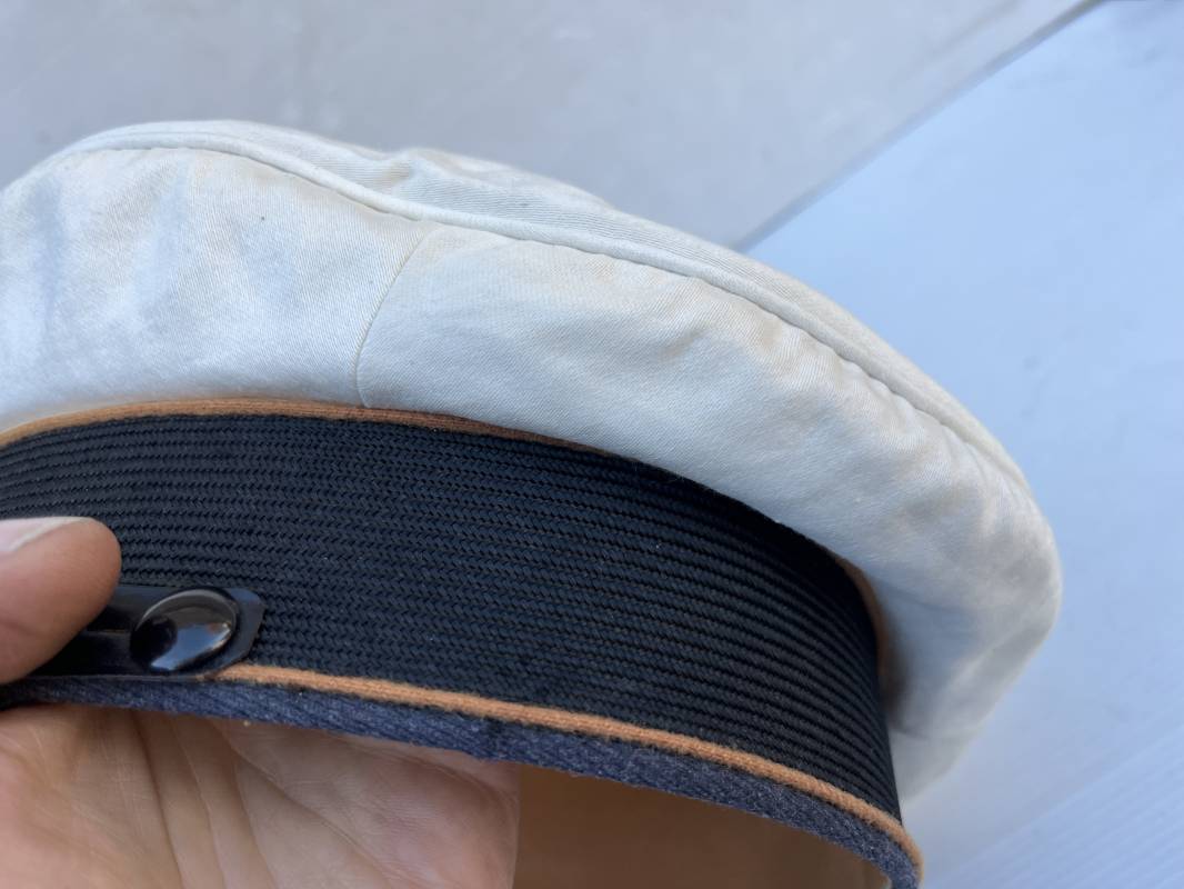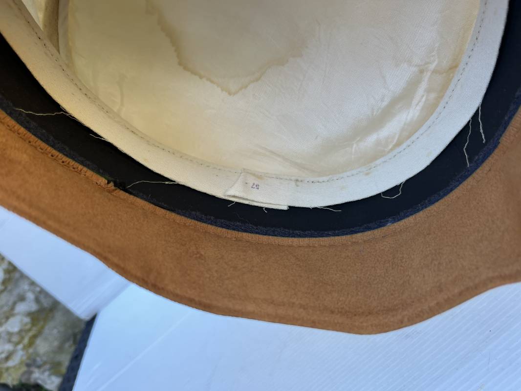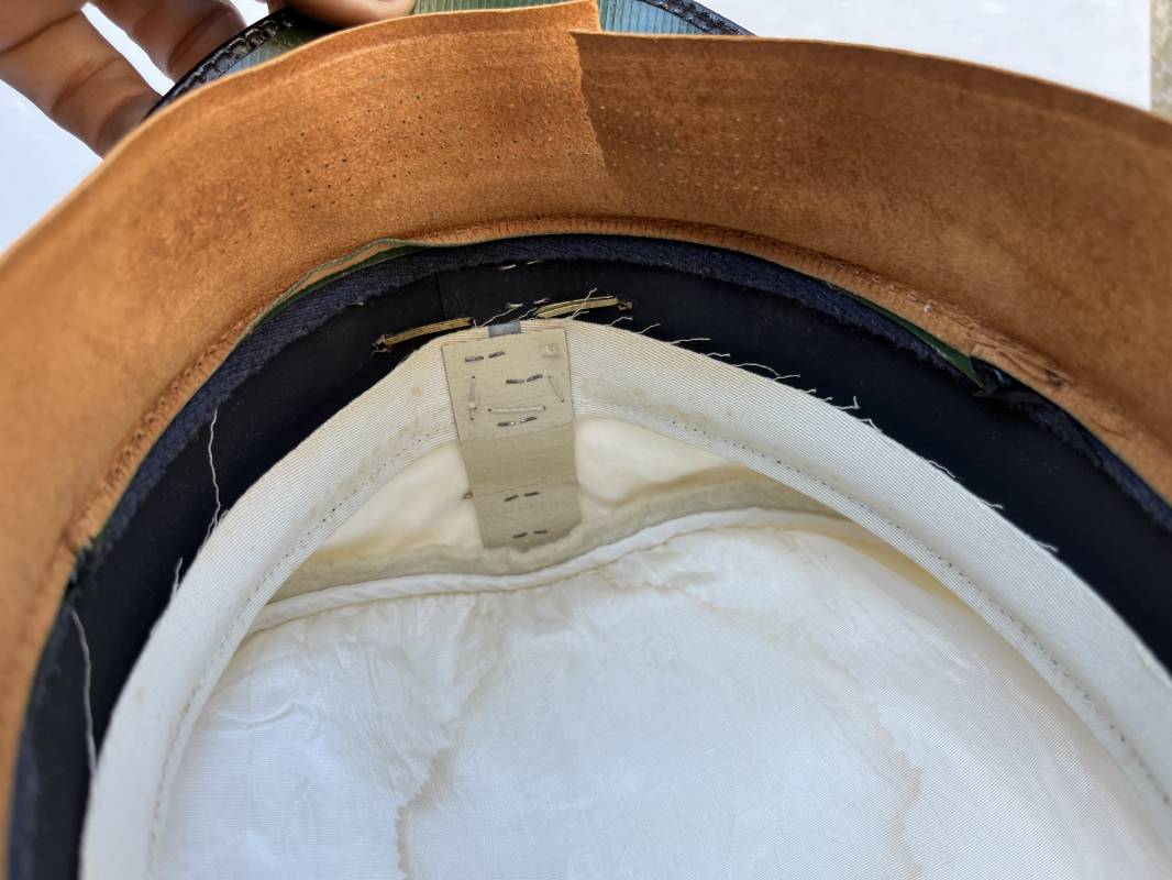 Rare casquette d'été d'un sous officier des Transmissions de la Luftwaffe. Casquette avec coiffe amovible en coton blanc. Insignes alu aigle et cocarde. Bandeau de coiffe extèrieur en coton satiné noir. Liseré marron( mordoré) des transmissions . Jugulaire en cuir vernis noire. Visière en fibre noire , revers guilloché vert et jonc sur le pourtour . Intèrieur doublé en soie blanche. Bandeau de coiffe intèrieur en cuir marron clair. Taille 59. Casquette légèrement portée en parfait état. Rare casquette d'été des transmission de la LW 1935/45. Ref 21526