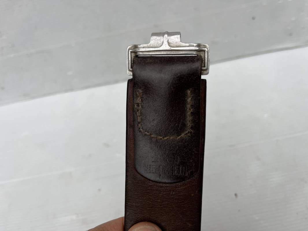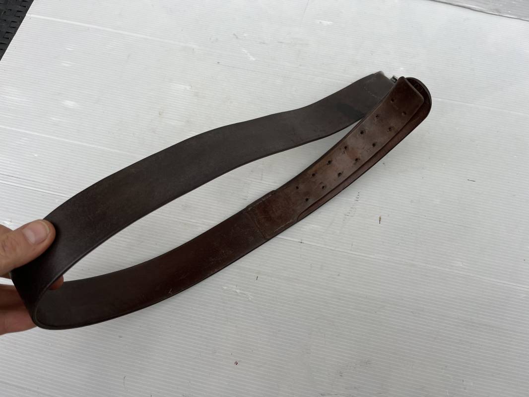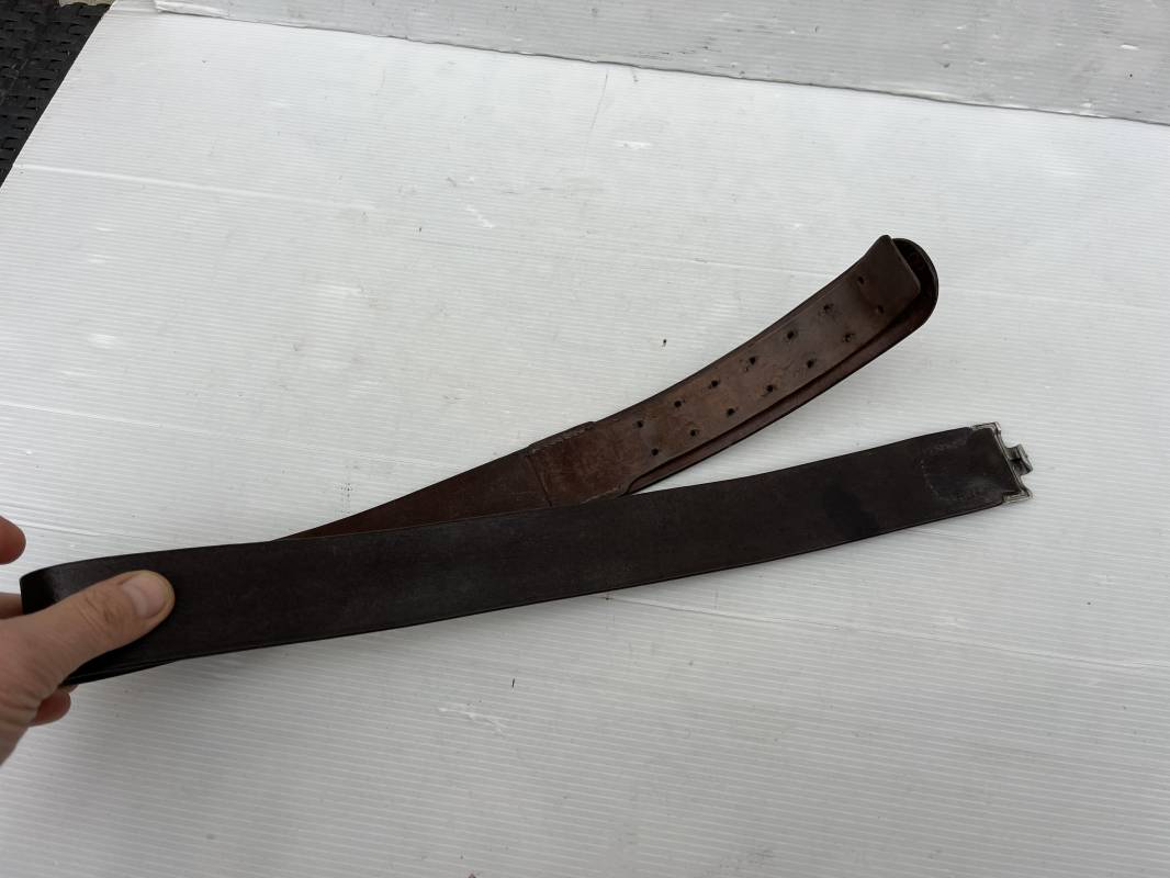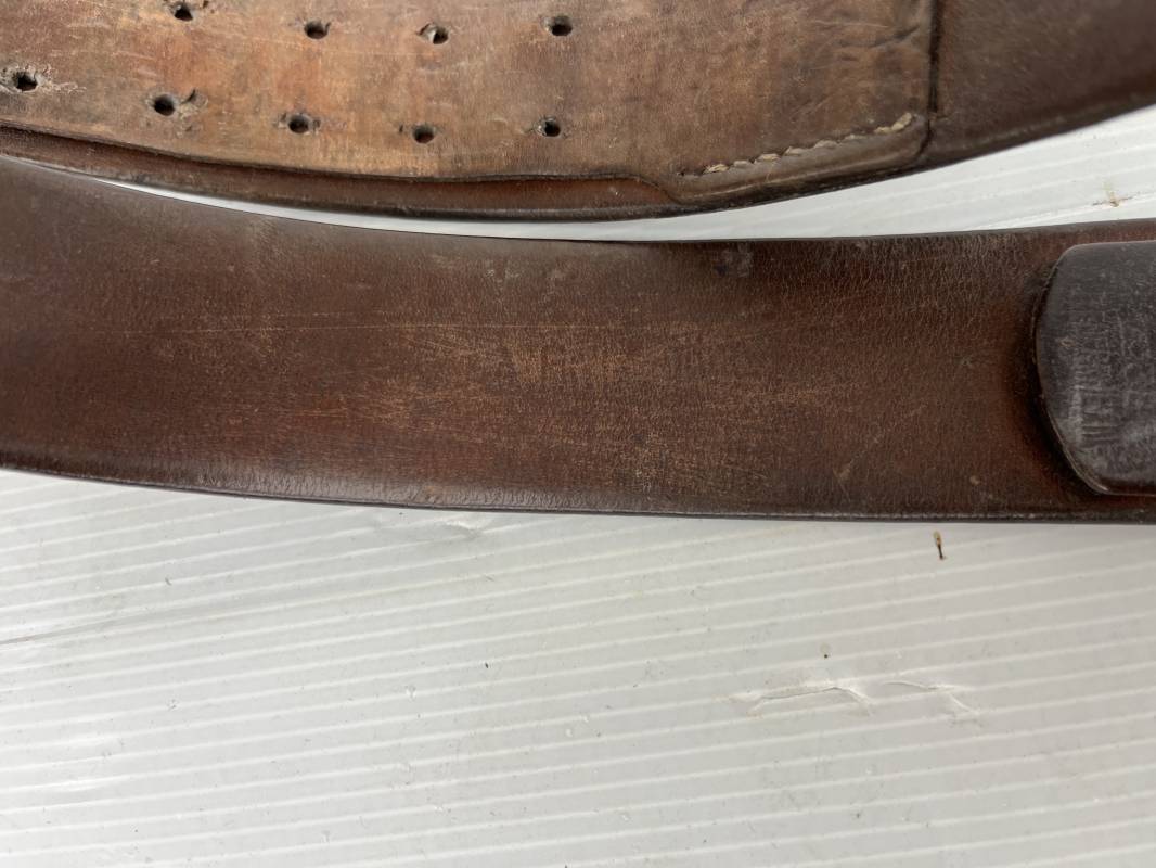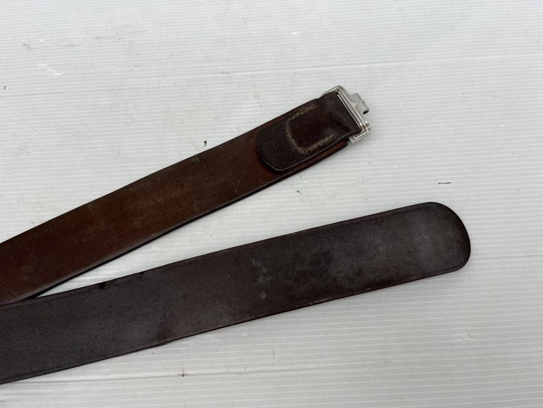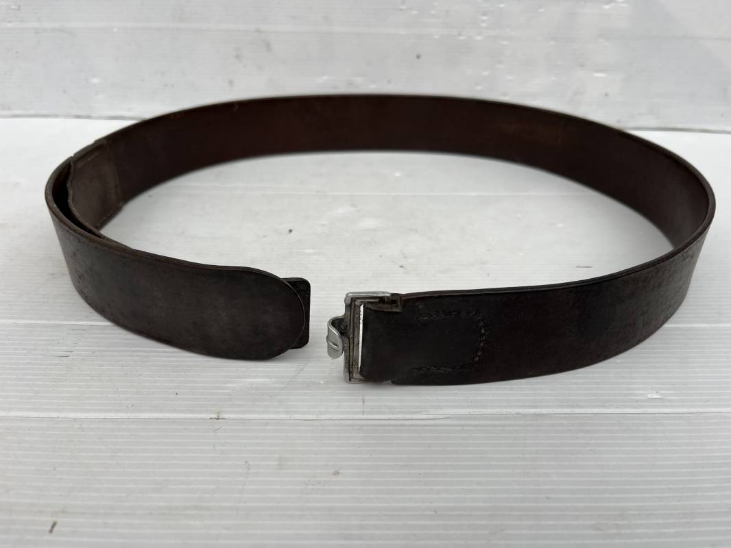 Trés beau cuir de ceinturon troupe de la Luftwaffe en cuir marron foncé . Crochet en alu. Patelette cuir de réglage de taille avec coutures non apparentes à l'extèrieur du cuir (spécifique à la Luftwaffe). Marquage fabricant daté 1938 , tampon réceoption LBA et affectation sur cuir intérieur . Cuir souple.Parfait état Longueur 92cm .1935/40 Ref 21494