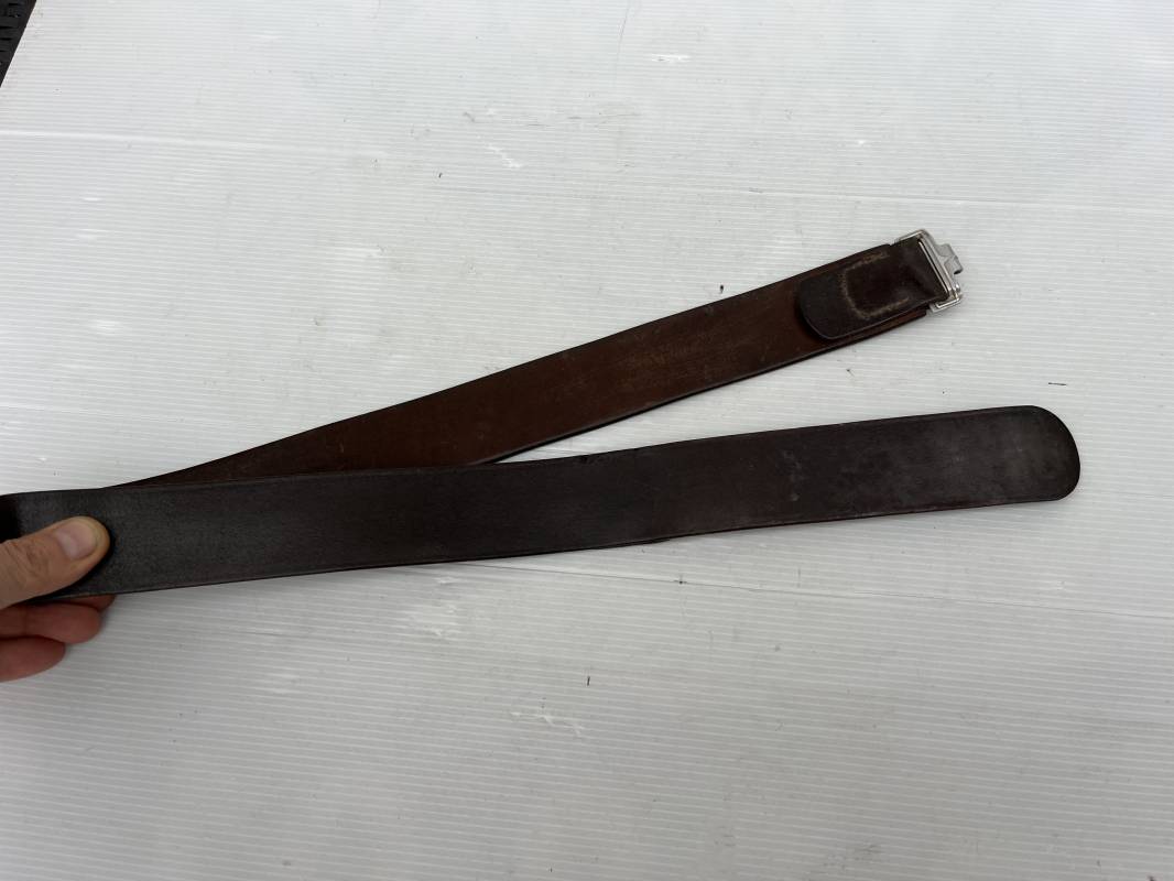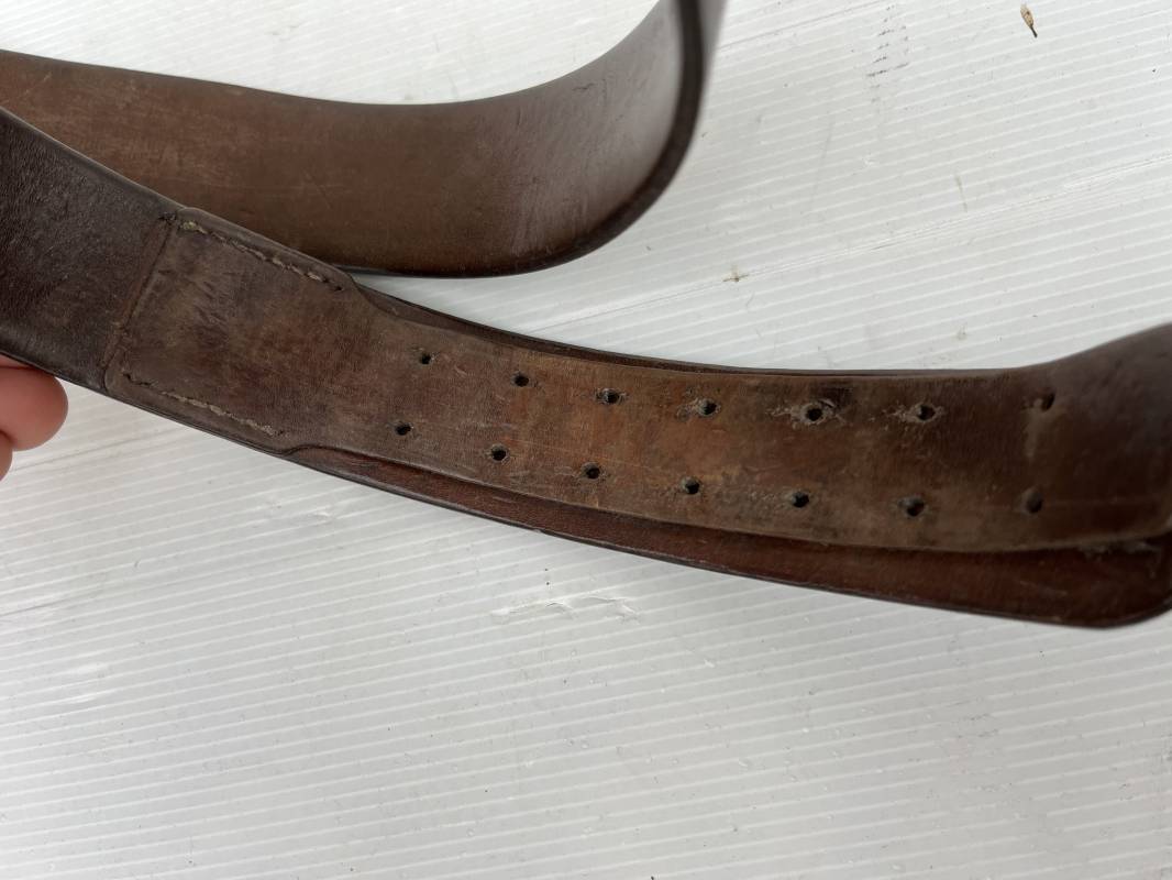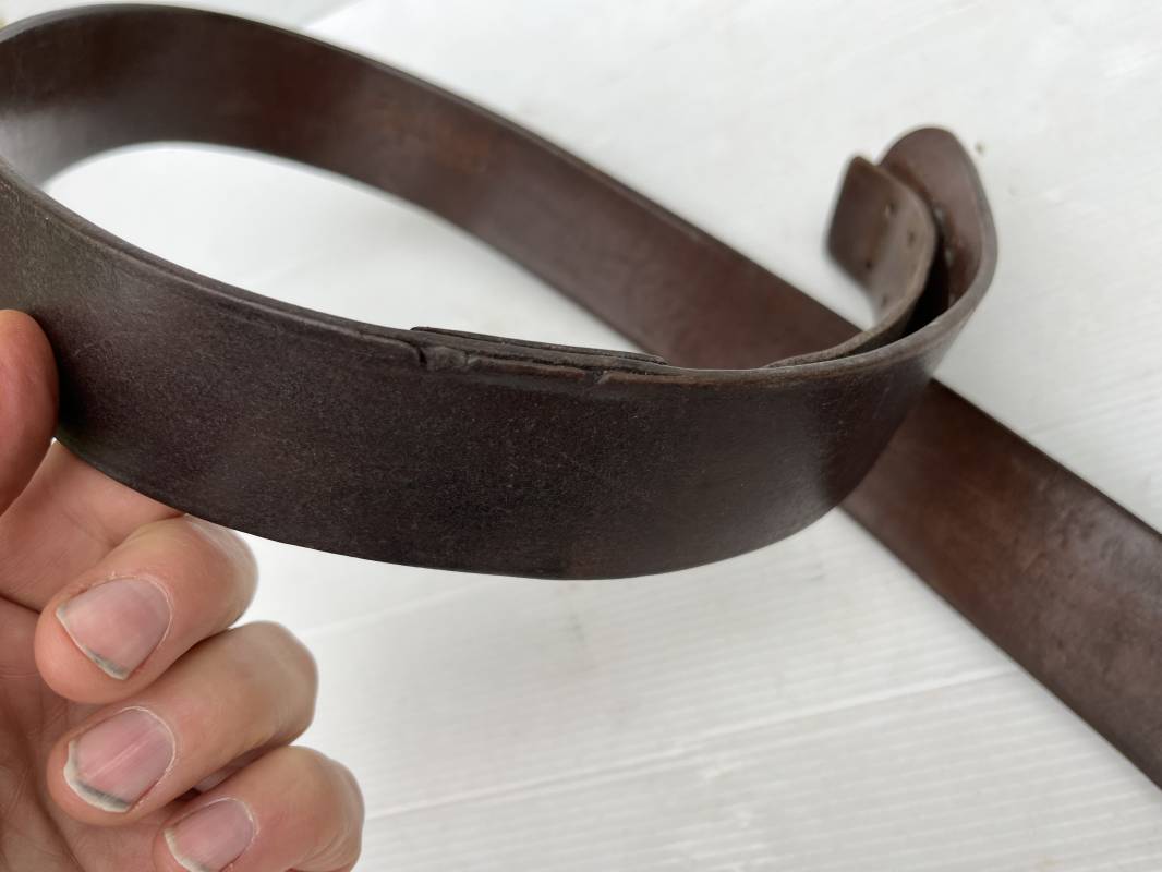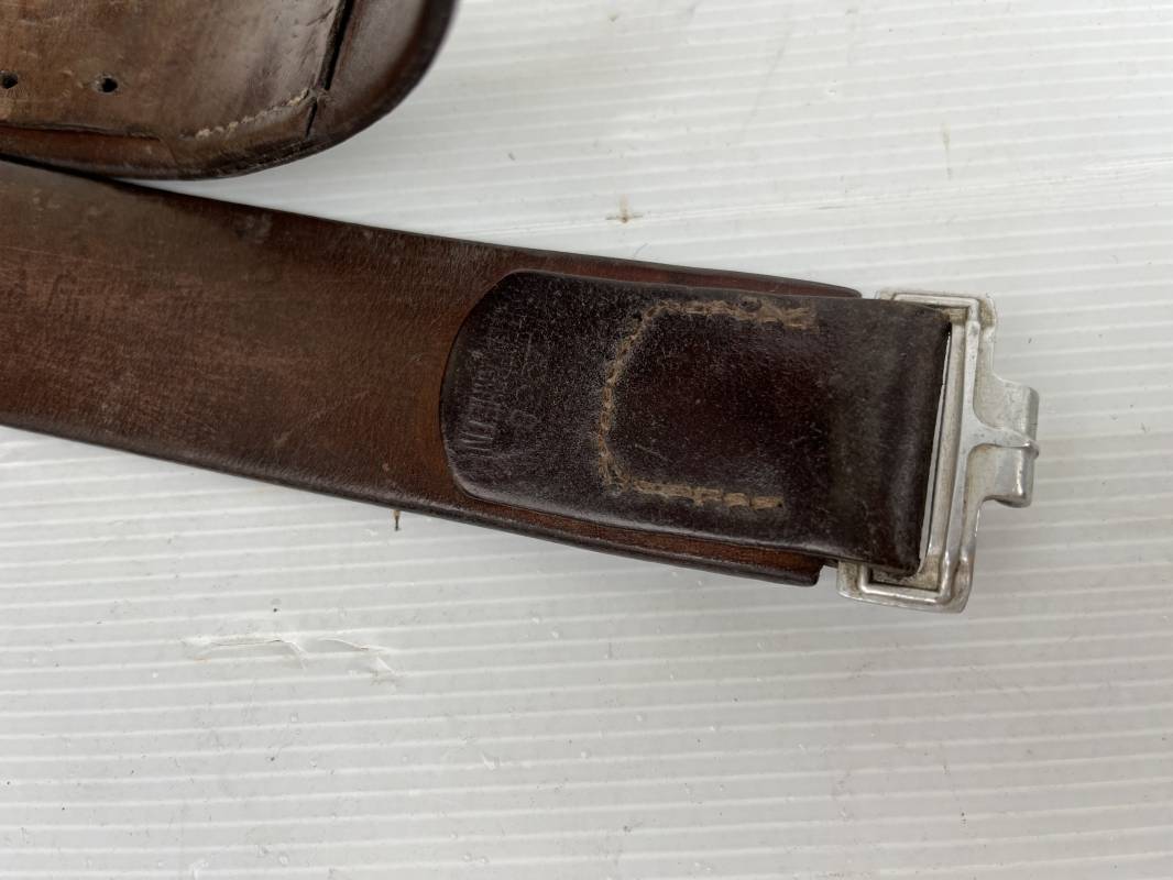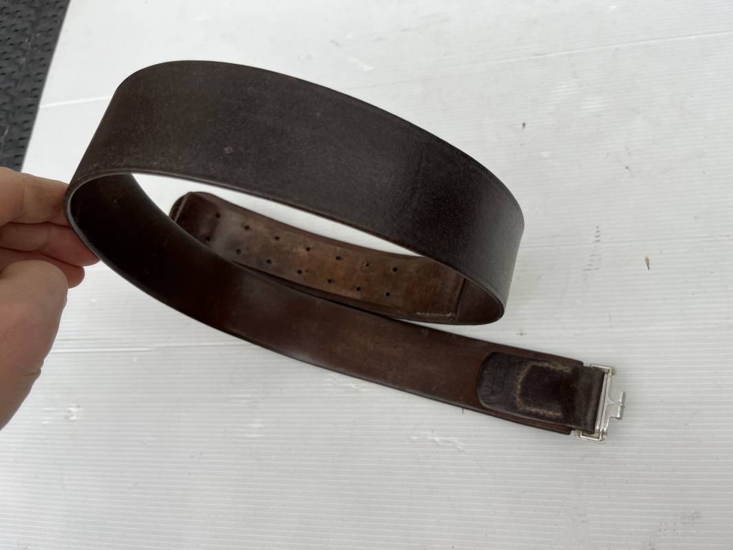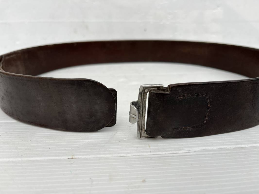 Trés beau cuir de ceinturon troupe de la Luftwaffe en cuir marron foncé . Crochet en alu. Patelette cuir de réglage de taille avec coutures non apparentes à l'extèrieur du cuir (spécifique à la Luftwaffe). Marquage fabricant daté 1938 , tampon réceoption LBA et affectation sur cuir intérieur . Cuir souple.Parfait état Longueur 92cm .1935/40 Ref 21494
