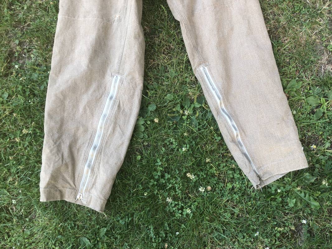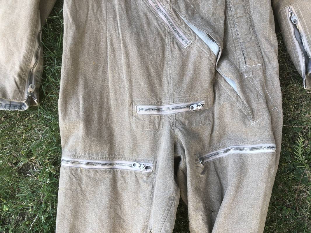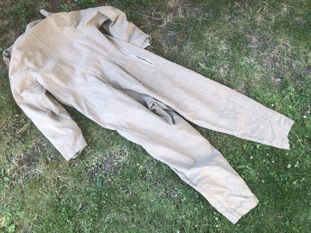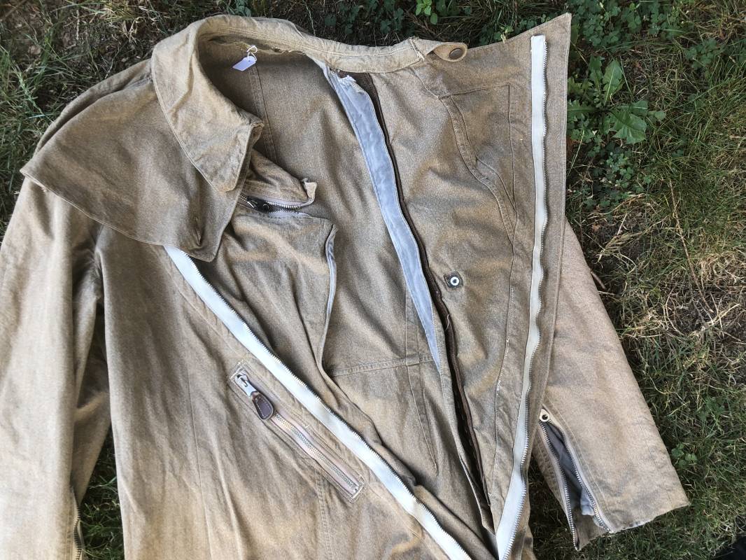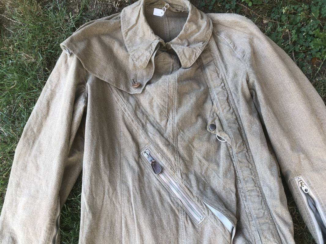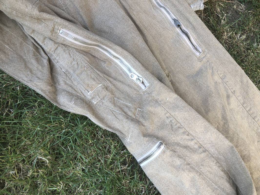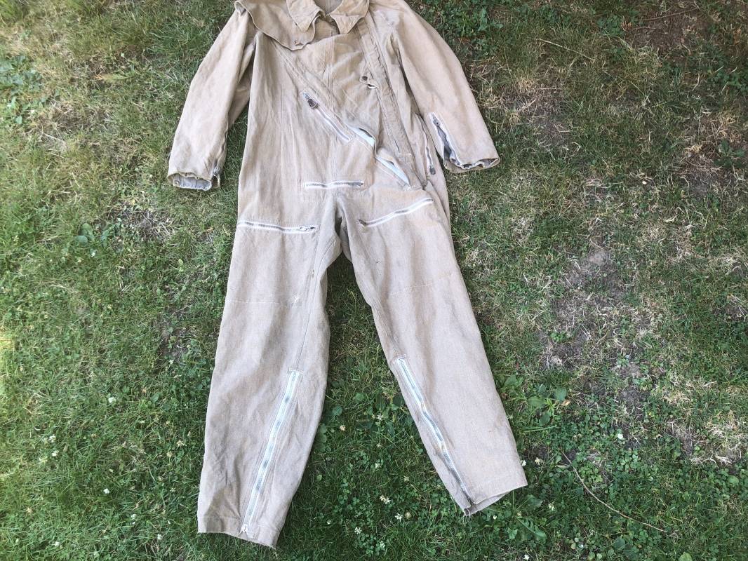 Rare combinaison de vol Mdle 1934 d'un navigant de la Luftwaffe . Combinaison du premier modéle en toile de coton chiné beige clair . Col , poche à cartes et multi poches a zipp . Toutes les glissières sont d'origine et fonctionnelles . Tirette de dégrafage rapide . Boutons pression Prym . Combinaison du premier type avec braguette horizontale . Etiquette fabricant Wiese a Berlin daté 1934 . Les deux glissières des bas de jambes sont fonctionnelles , mais curseurs manquants . Combinaison portée en bel état Largeur épaules 45 cm , longueur totale 160 cm , manche 64 cm . Rare combinaison du premier type d'un navigant de la LW . Typique bataille de france et d'Angleterre 1940 Ref 19408