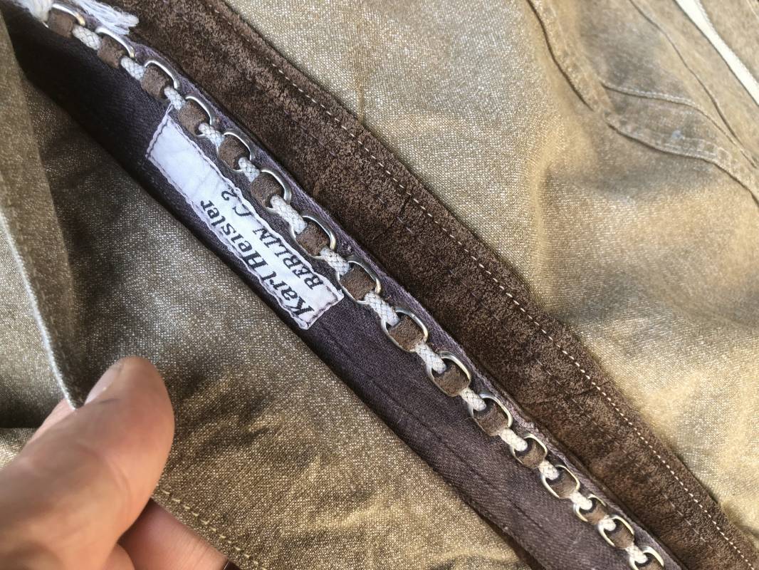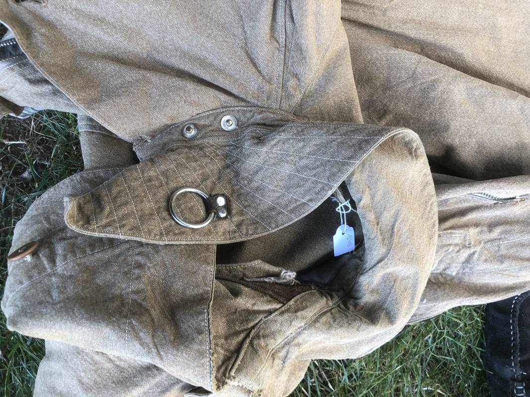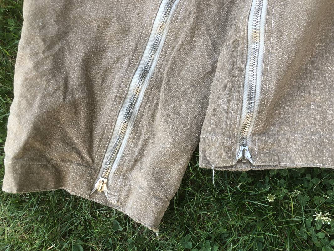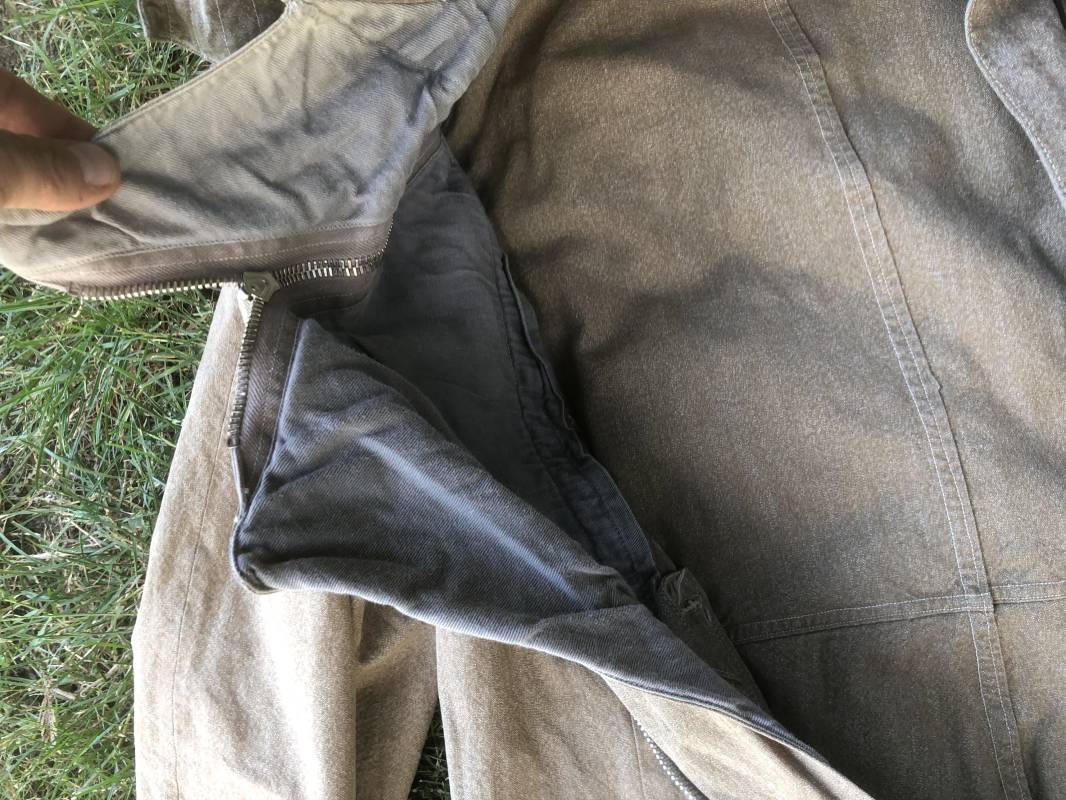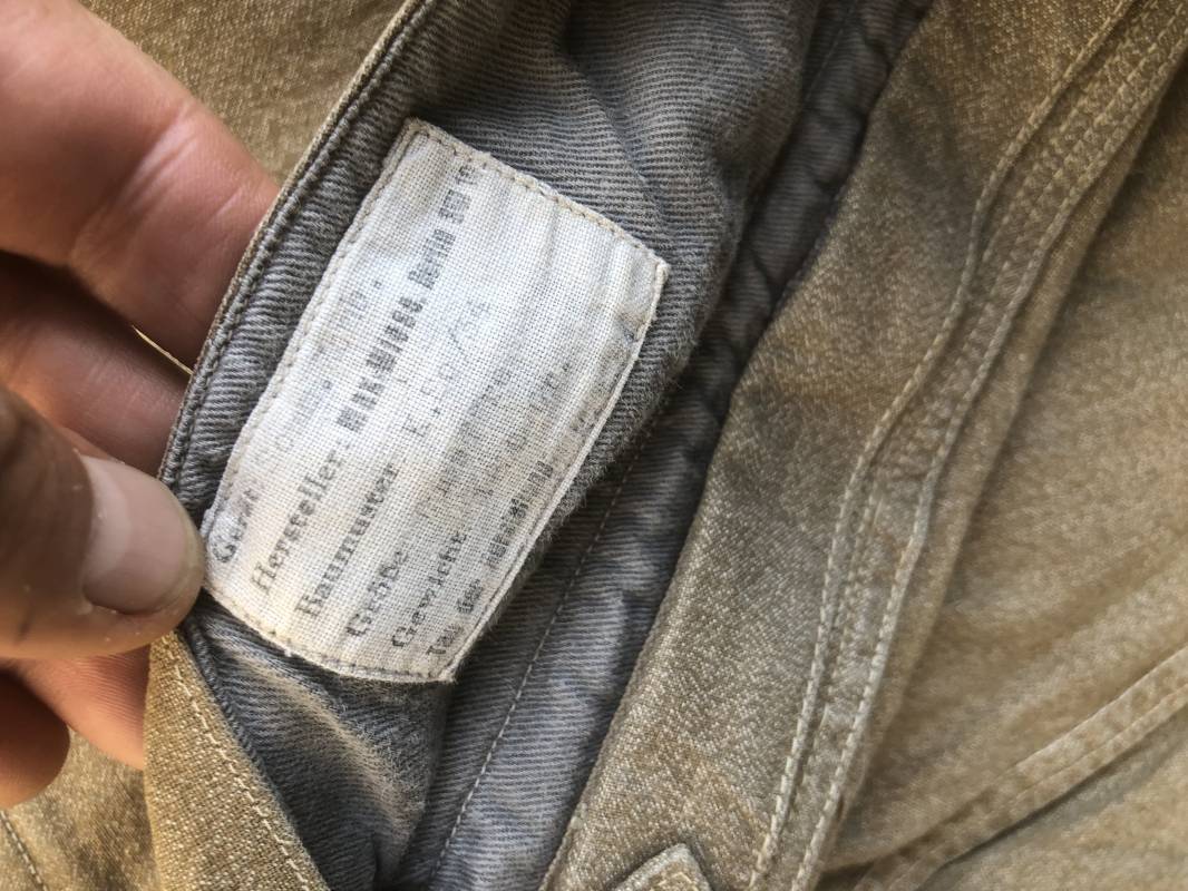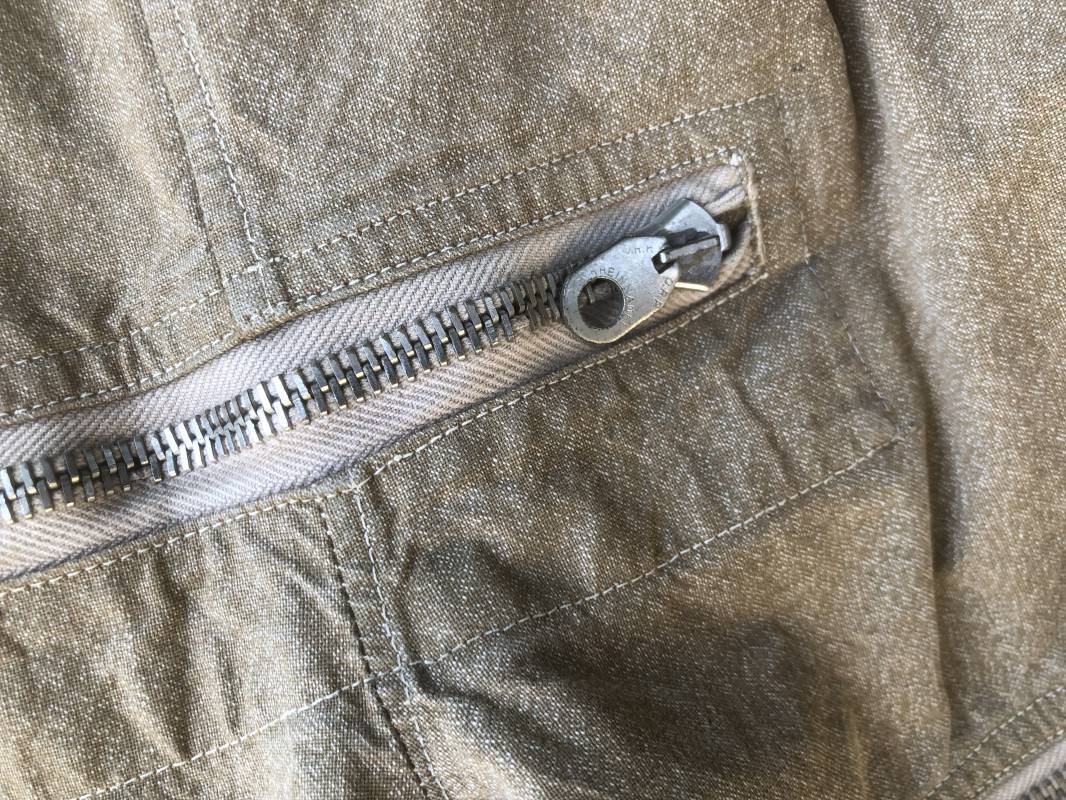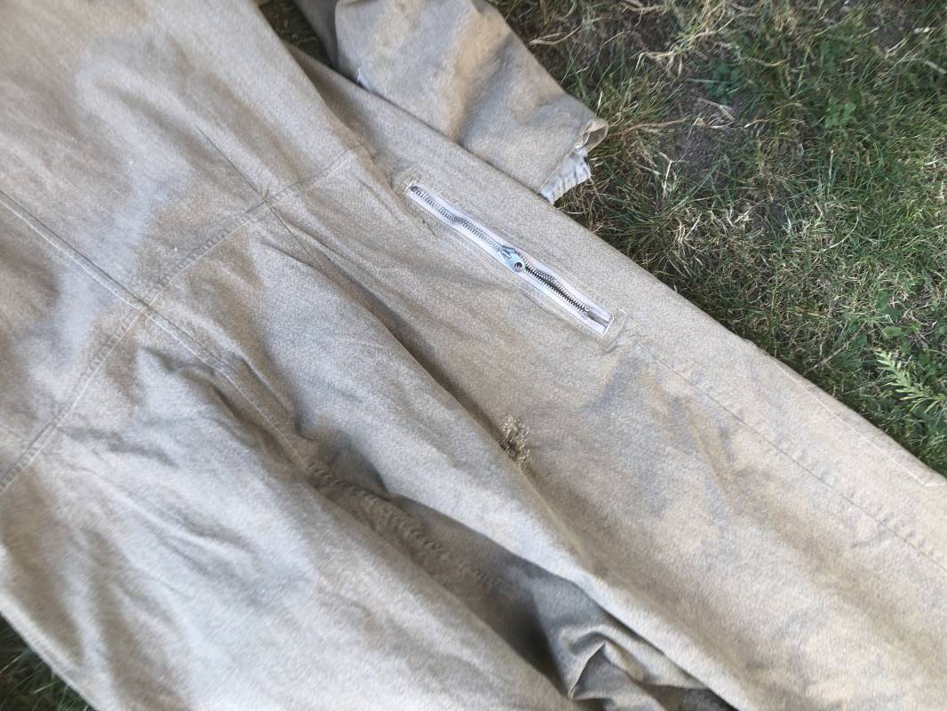 Rare combinaison de vol Mdle 1934 d'un navigant de la Luftwaffe . Combinaison du premier modéle en toile de coton chiné beige clair . Col , poche à cartes et multi poches a zipp . Toutes les glissières sont d'origine et fonctionnelles . Tirette de dégrafage rapide . Boutons pression Prym . Combinaison du premier type avec braguette horizontale . Etiquette fabricant Wiese a Berlin daté 1934 . Les deux glissières des bas de jambes sont fonctionnelles , mais curseurs manquants . Combinaison portée en bel état Largeur épaules 45 cm , longueur totale 160 cm , manche 64 cm . Rare combinaison du premier type d'un navigant de la LW . Typique bataille de france et d'Angleterre 1940 Ref 19408