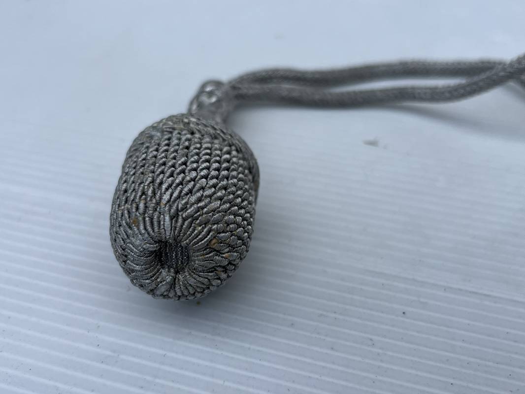 Dragonne de la dague officier modéle 1935 ou 1937 . Dragonne en fil d aluminium avec gland en cannetille . Longueur totale 30 cm . Légèrement porté en parfait état 1935/45 Ref 22350