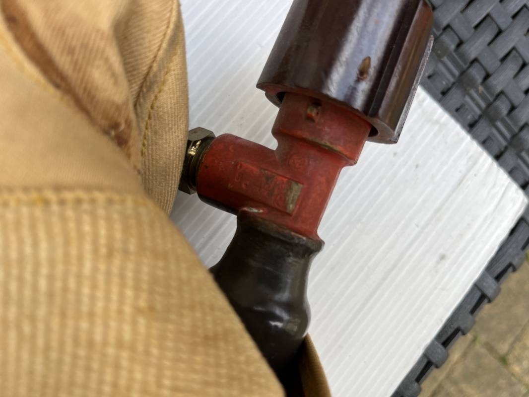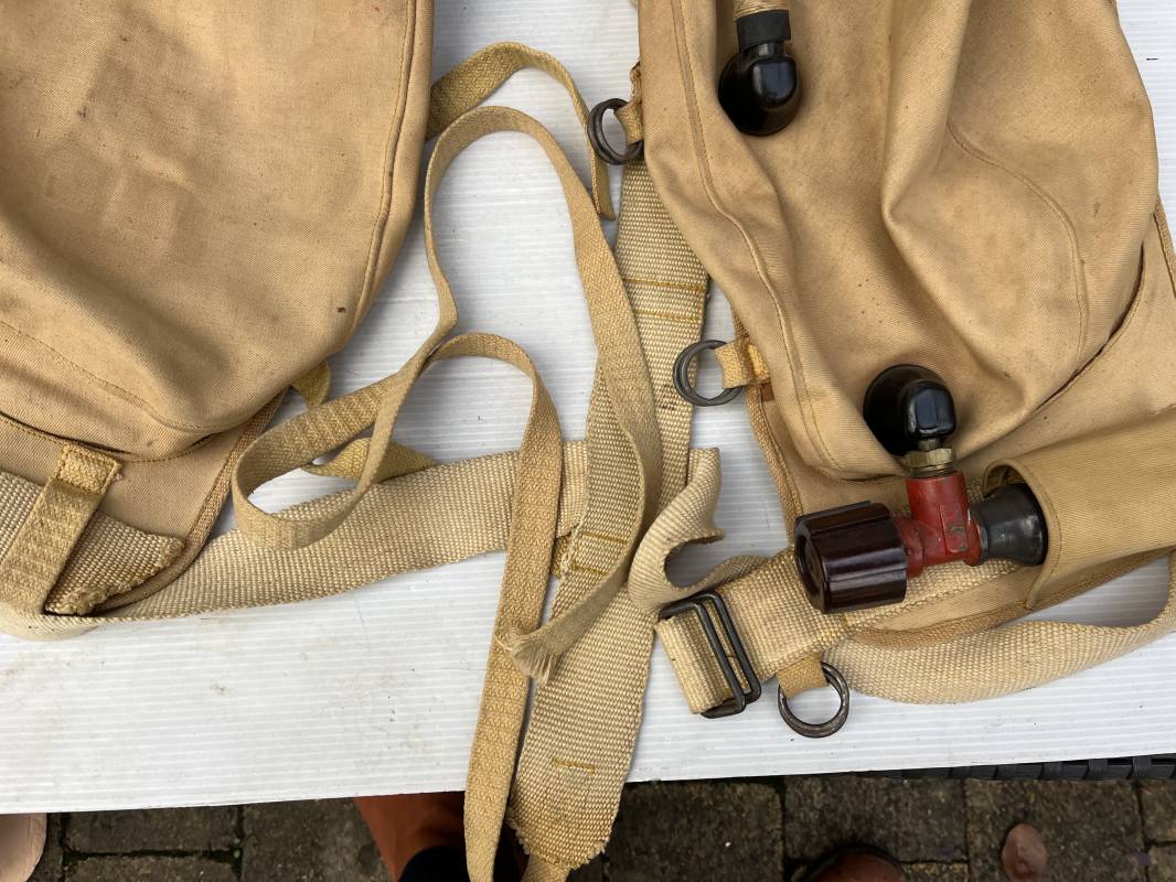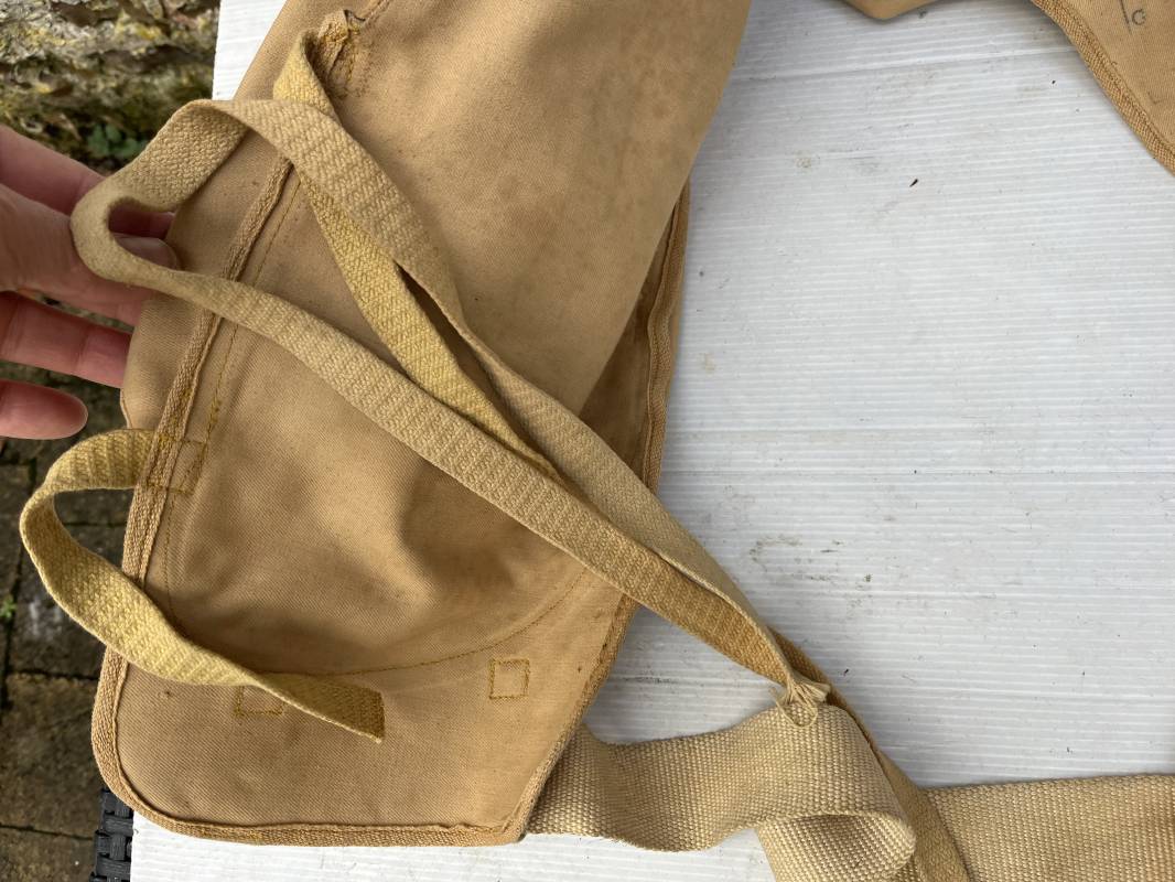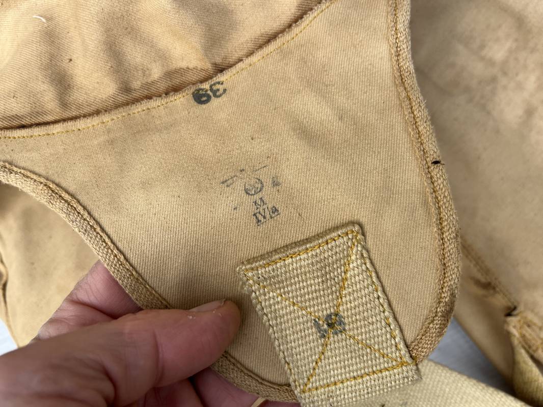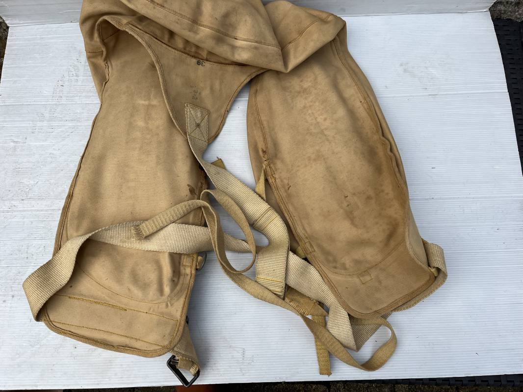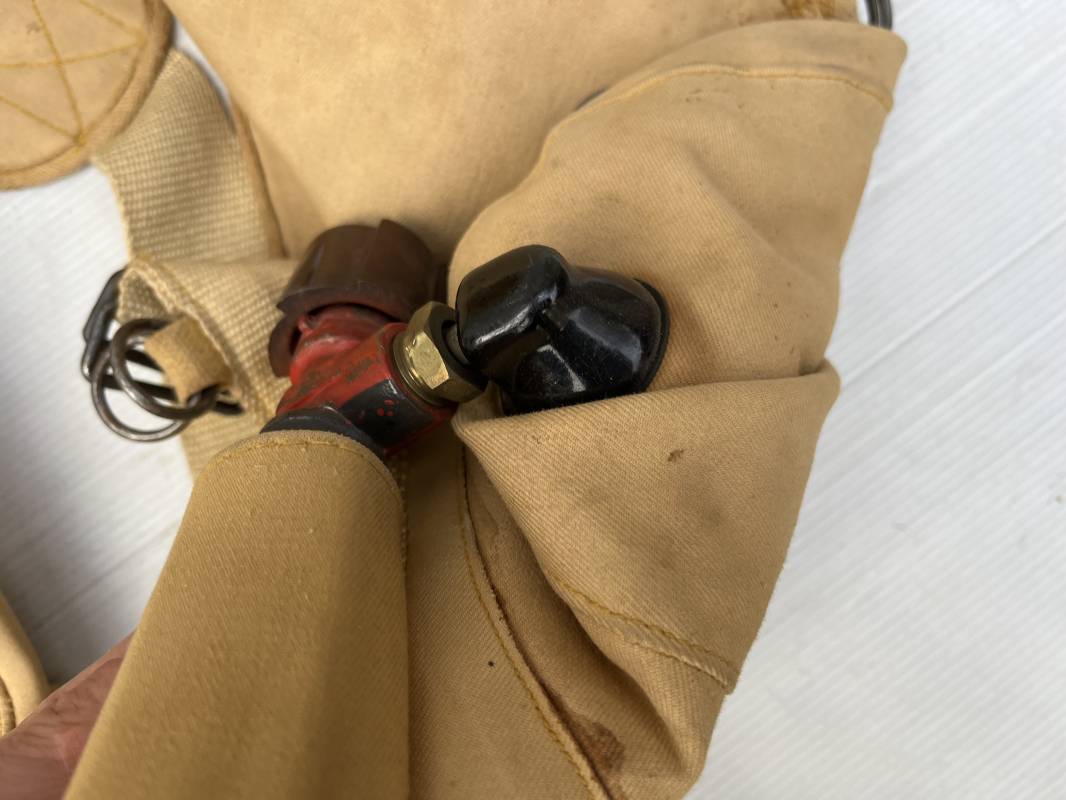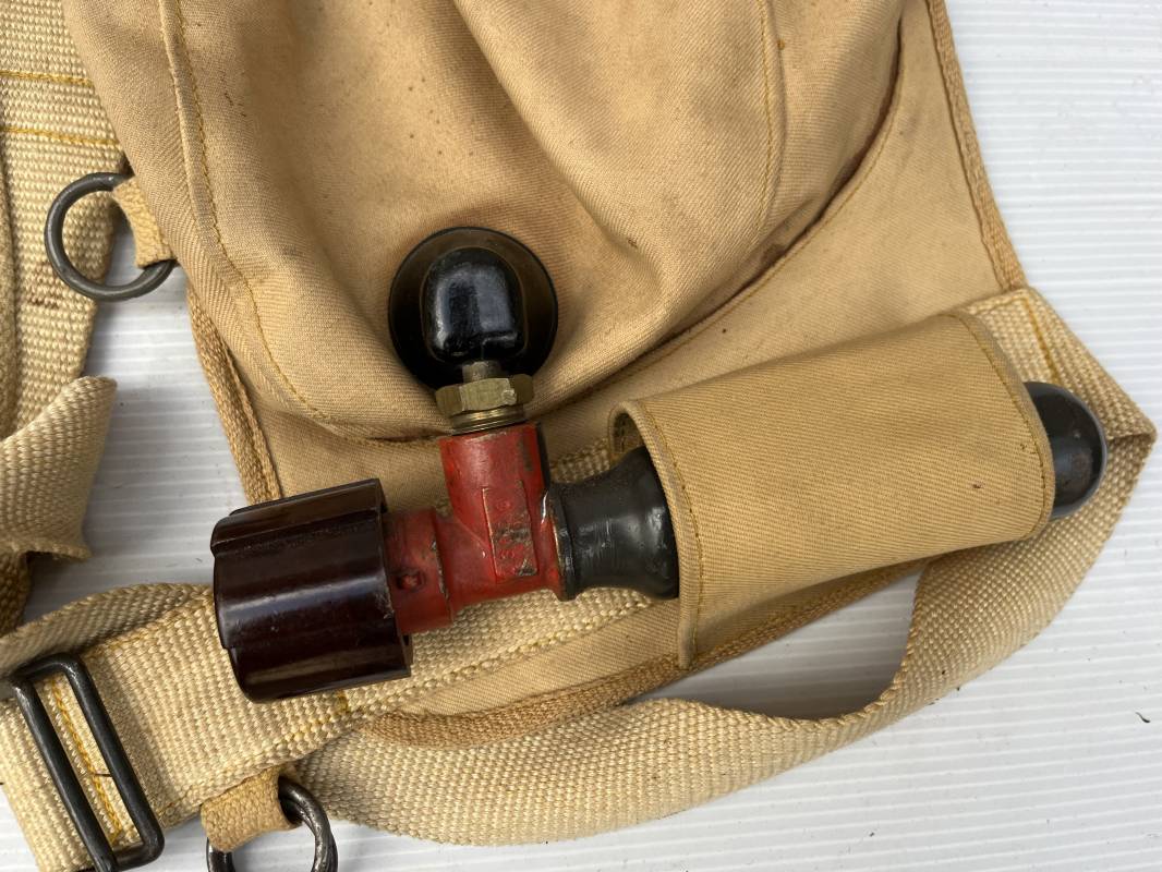 Rare gilet de sauvetage d 'un navigant de la Luftwaffe modele 10-30-B2 . Gilet en caoutchouc jaune complet avec toutes ses sangle en tile de coton filé . Boucles metalliques . Bouteille de gonflage automatique datée 8 1944 , poignée et embase Bakélite marron . Caoutchouc souple . Tube caoutchouc pour gonflage bucal , embout et embase en bakélite marron . Marquage encre ' Schimmweste et matricule ' . Tampon de réception de la Marine KM . Gilet légèrement porté en parfait état 1940/45 Ref 21536