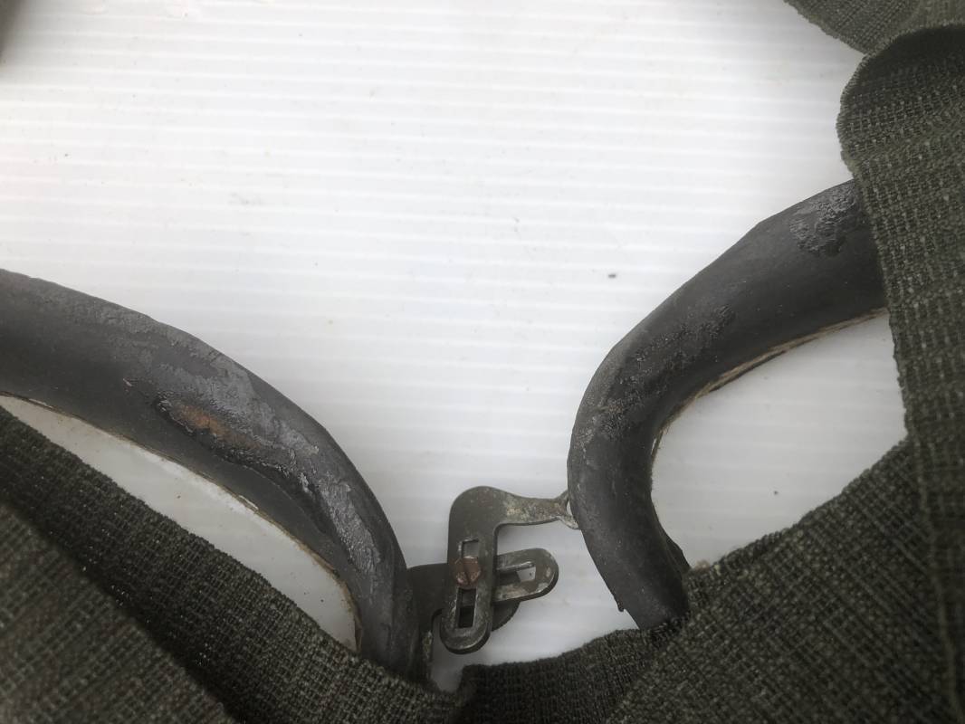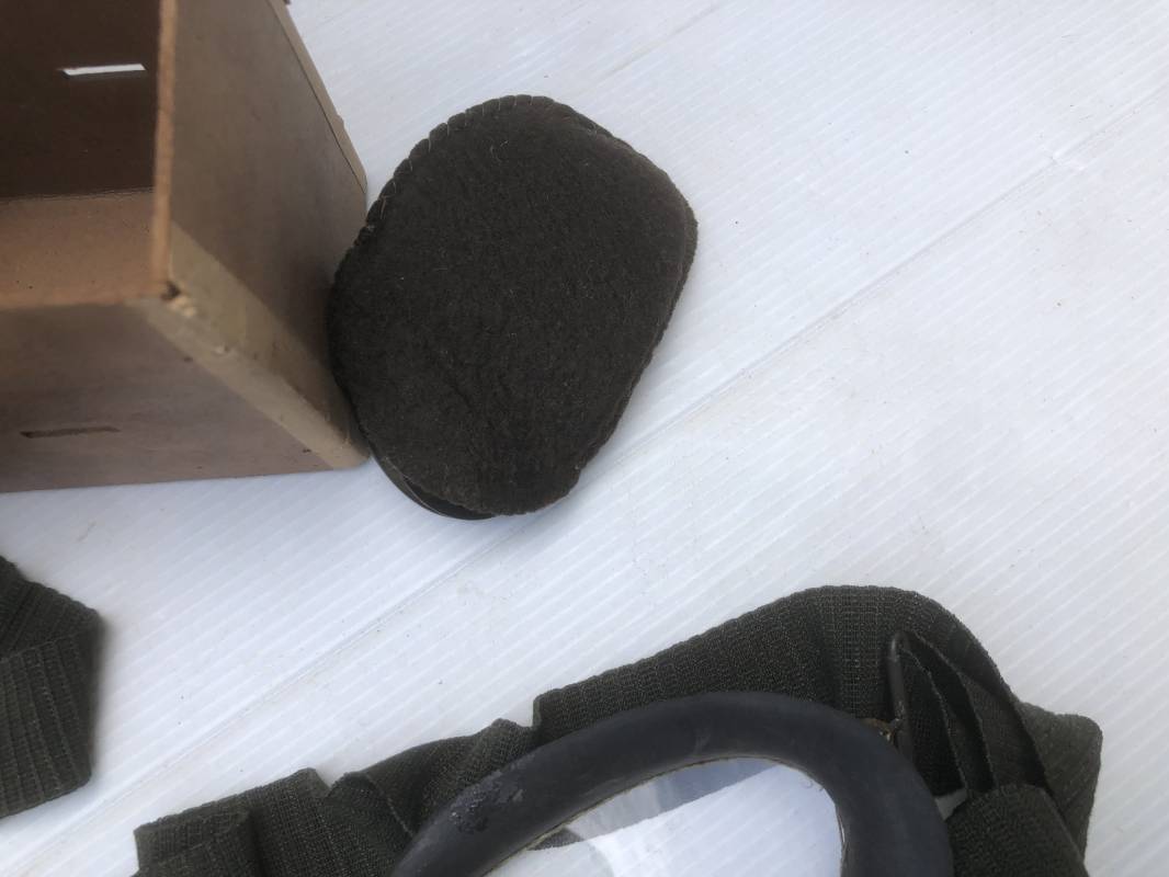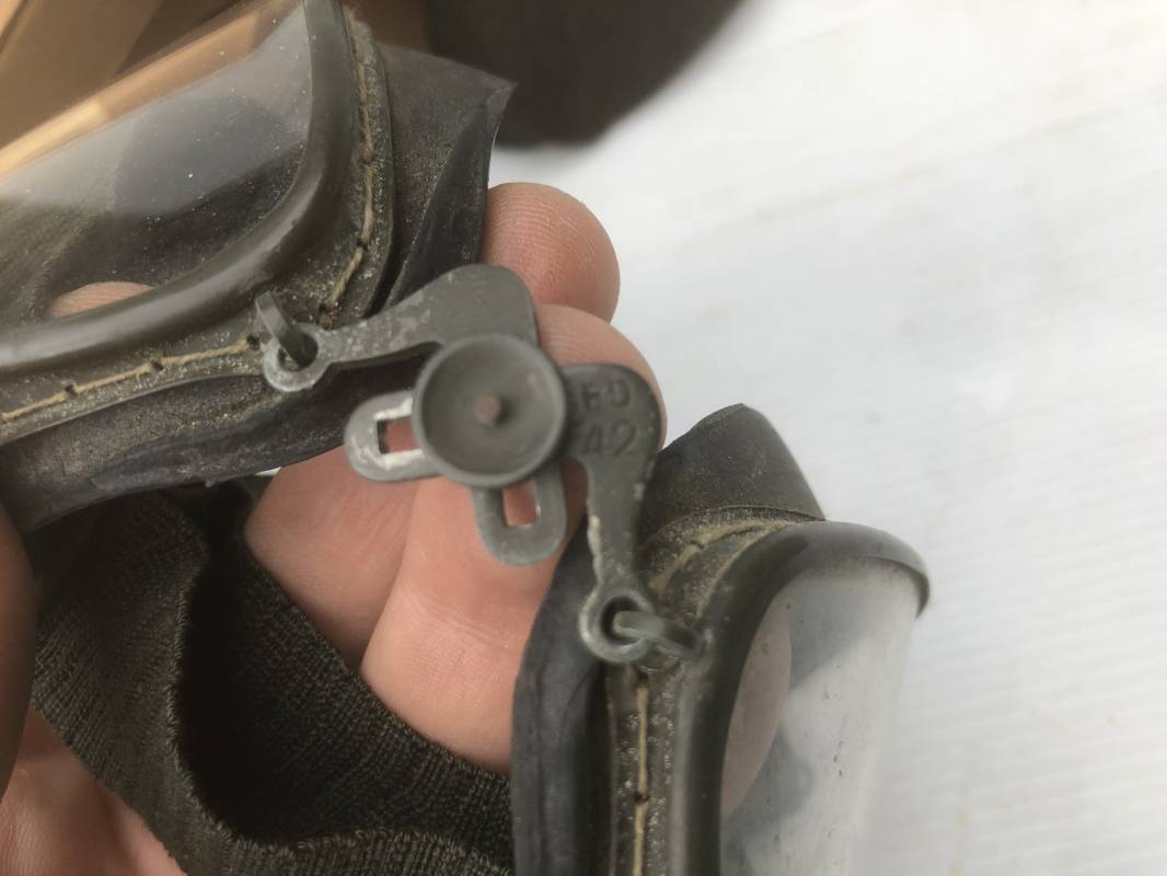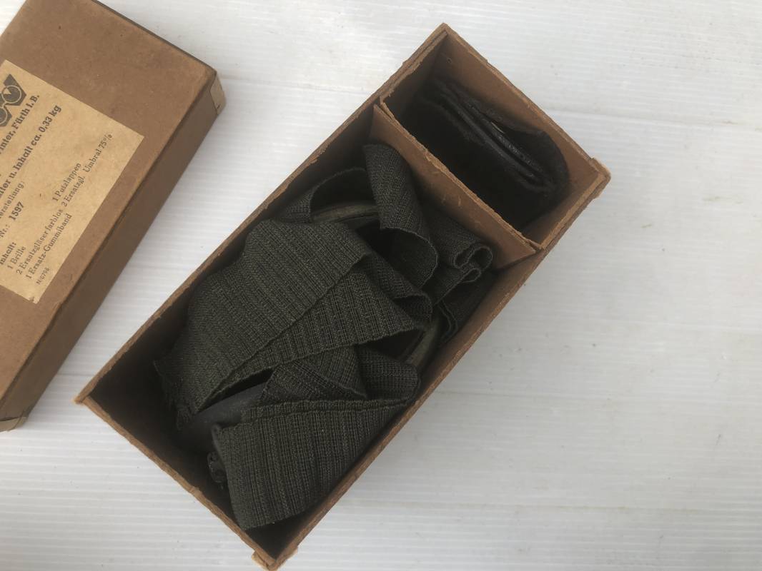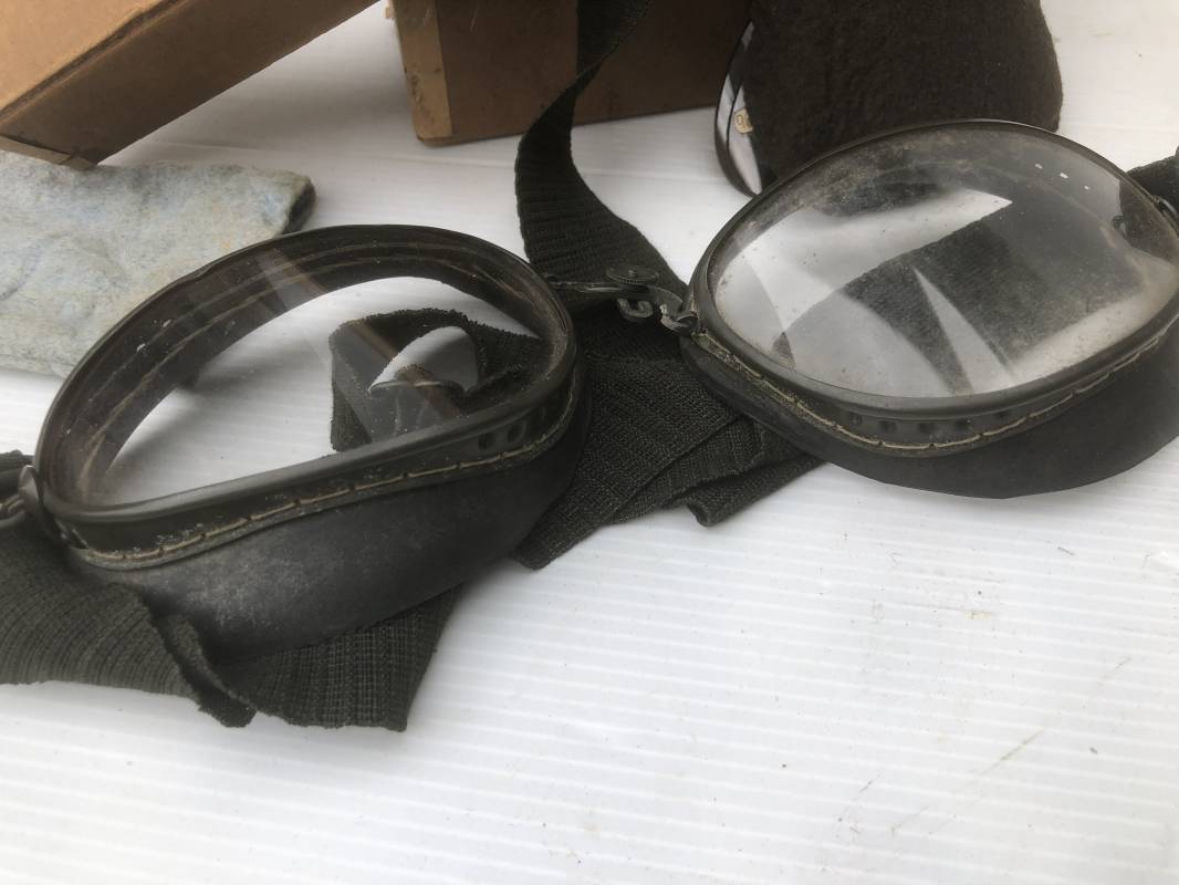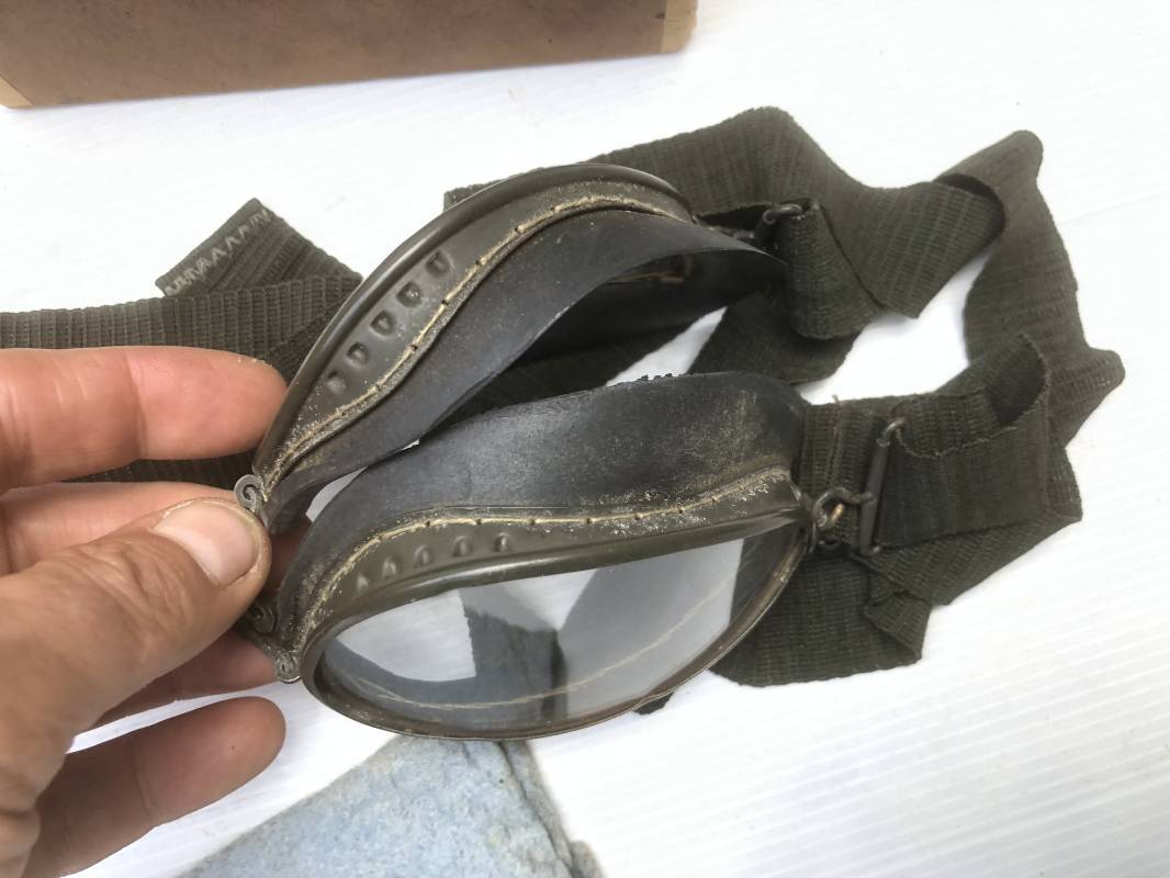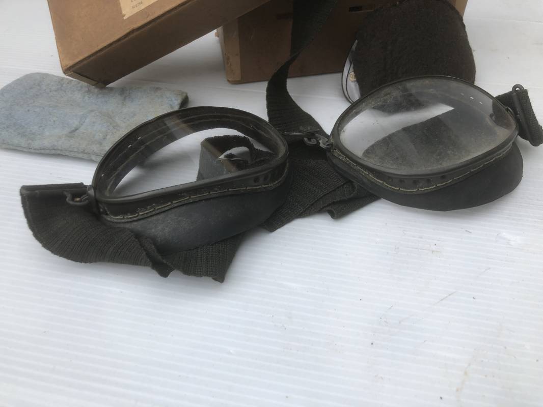 Très belle paire de lunettes de vol d'un Navigant de la Luftwaffe. Lunettes de col (Fliegerbrille ) modéle Dr 652 Verres blancs. Monture en alu peinte en vert. Pourtour en caoutchouc noir . Caoutchouc souple. Crochets métalliques de fixation. Marquage sur articulation métallique FD 42 Sangle en toile et boucle métallique de réglage. Légèrement porté en bon état . Verres de rechange de couleur foncé avec les deux pochettes en feutre . Rare boite en carton de conditionnement avec étiquette fabricant M Winter . Belle pièce de vitrine . Définitif en collection aviation de la Luftwaffe 1935/45. Ref 19178