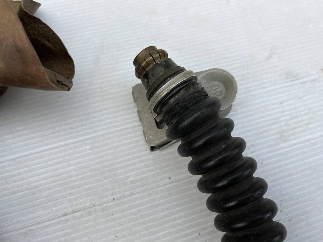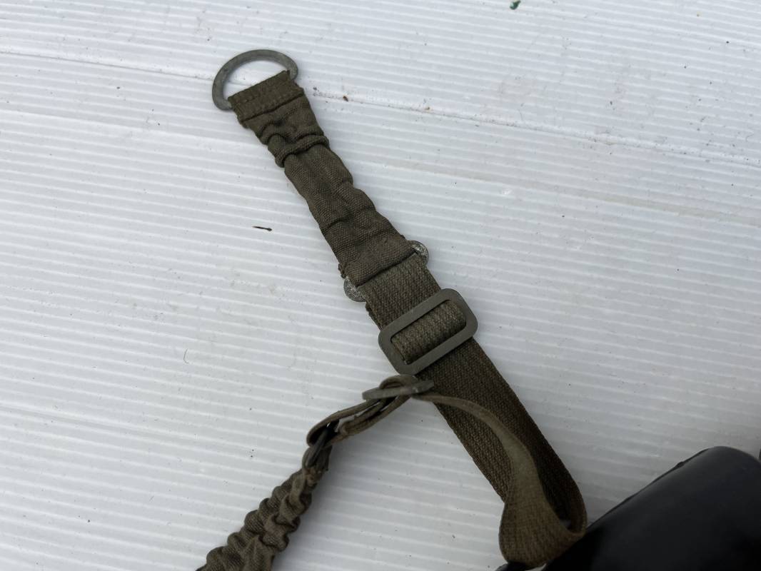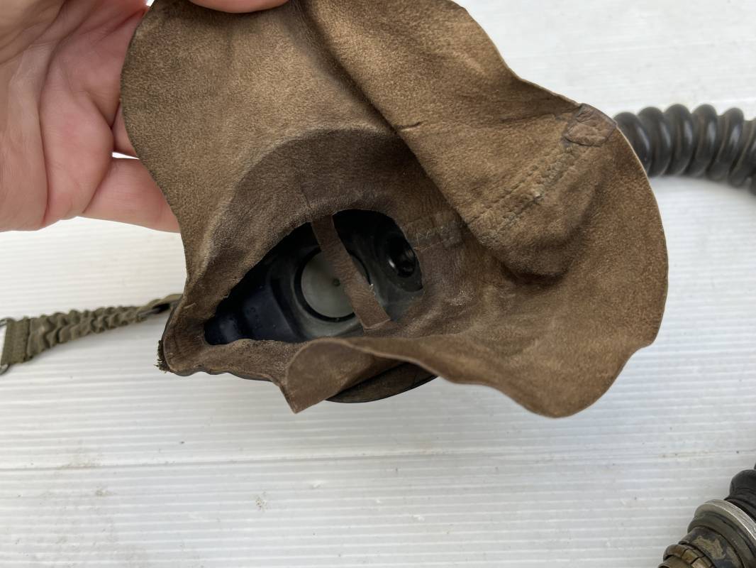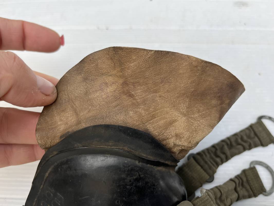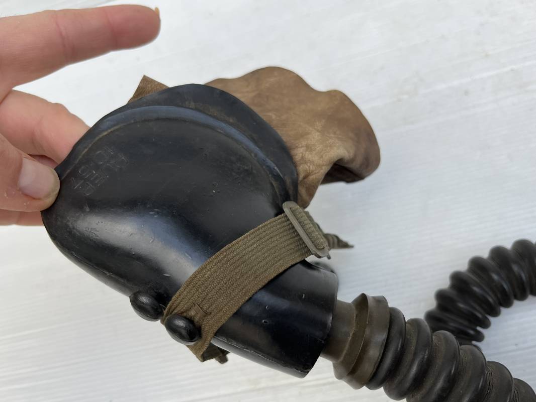 Trés rare masque oxygéne d'un navigant de la Luftwaffe .Masque 100 % nature et totalement intouché . Masque modéle 10-67 en caoutchouc noir . Caoutchouc souple . Pince crocodile en bout de tube . Sangles élastiques d'origines avec anneaux en zinc peints vert de fixation , ces sangles en coton et elastiques avec anneaux et boucles sont d 'origines . . Bavolets d 'origines en peau de chamois , les bavolets n ont pas ete découpés ni modifiés a l usage comme c 'est souvent le cas . . Marquage AUER 10-67 . Tuyau d origine en caoutchouc noir et souple . Ce masque est 100 % nature et totalement intouché . Trés Rare équipement de vol de la Luftwaffe 1940/45 Ref 21279