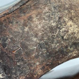 Très belle paire de bottes d'un officier de la Luftwaffe en cuir marron chocolat. Cette paire de bottes a été trouvée en succession à Paris sortie directement de la famille. Paire de bottes à tiges dures, hauteur 45cm. Tirettes en toile et boutonnières cuir. Marquages encre fabricant Salamander à l'intérieur de chaque tiges. Marquage encre noire B3141 II F21. Semelles et talons en cuir lisse d'origine. Longueur 31cm. Pointure 44cm. Paire légèrement portée en parfait état. Rare paire de fabrication précoce d'un officier de la Luftwaffe 1935/40. Ref 17234