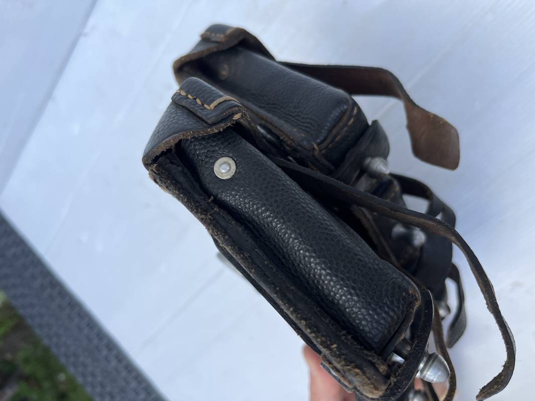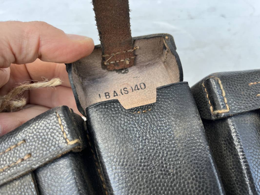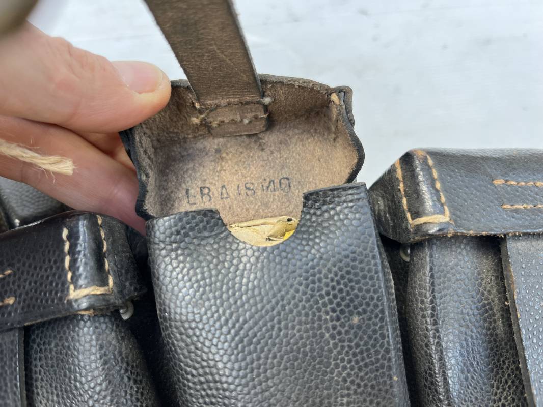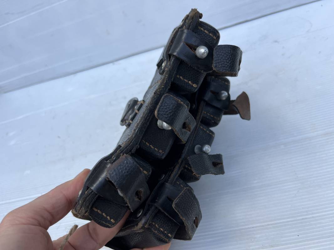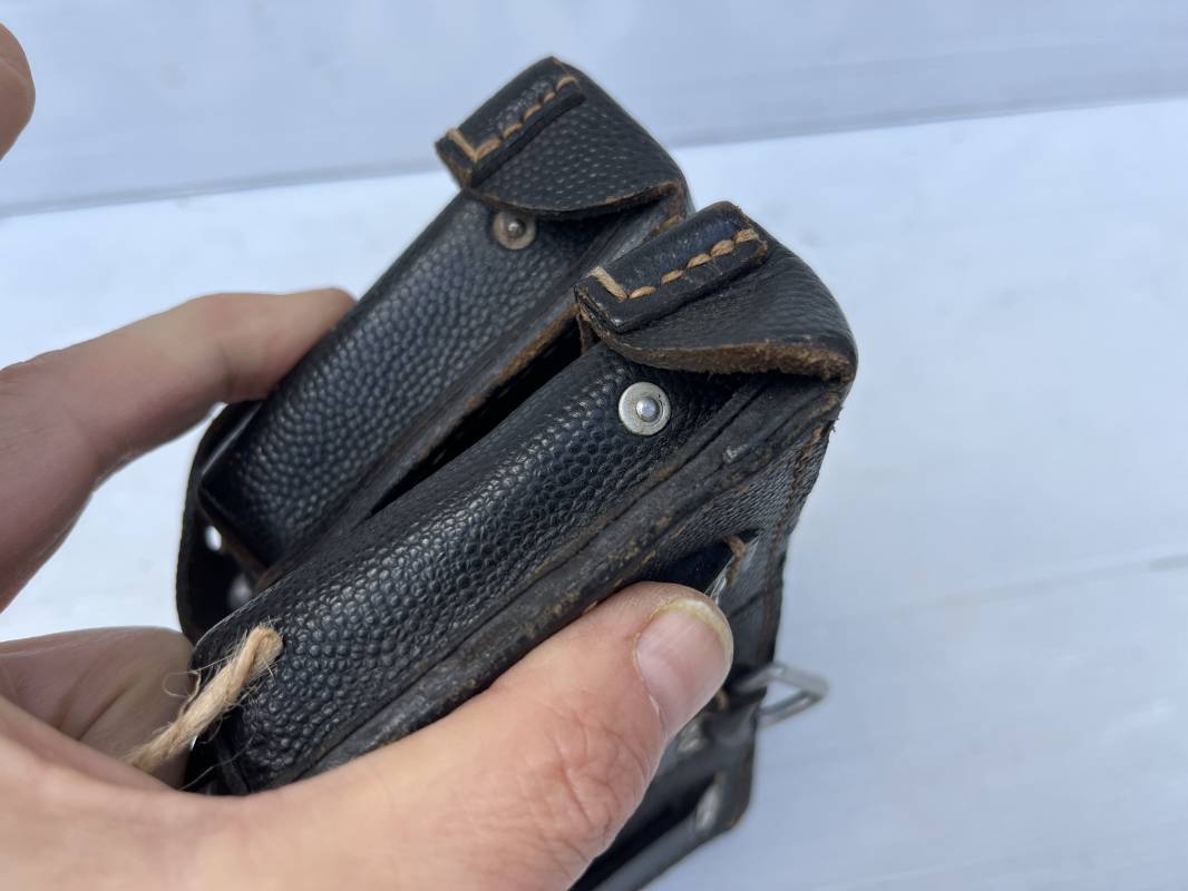 Tres belle paire de cartouchières 98 K en cuir grenelé noir . Cartochières homogéne et du meme fabricant . Marquages au dos Hans Romer 1940 . Rivets et passants en alu . Réceptionnée bureau habillement de la LW LBA 1940 . Légérement portées en parfait état .Séparations internes manquantes sur une desdeux cartouchières Ref 21264