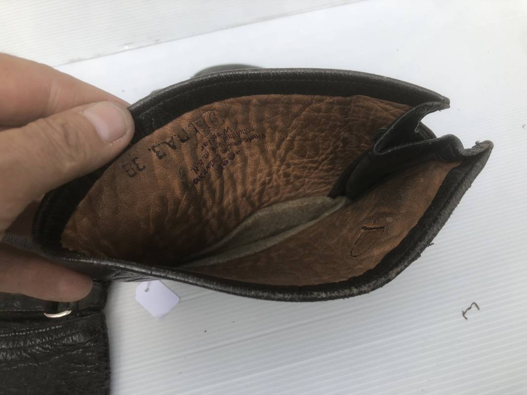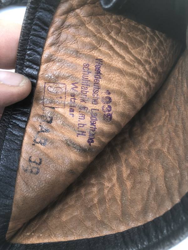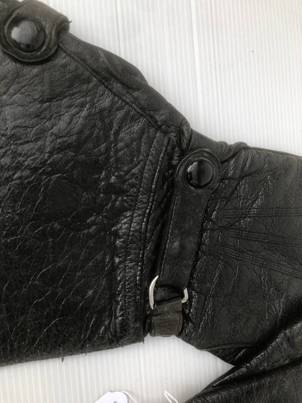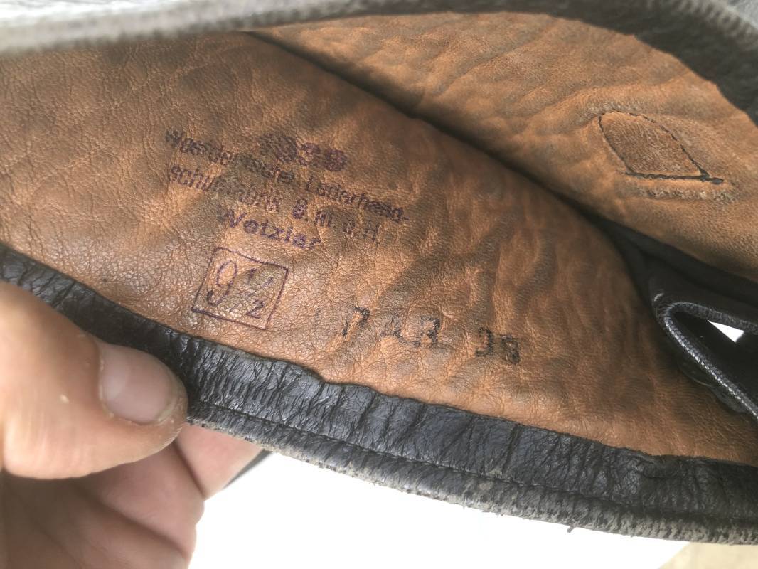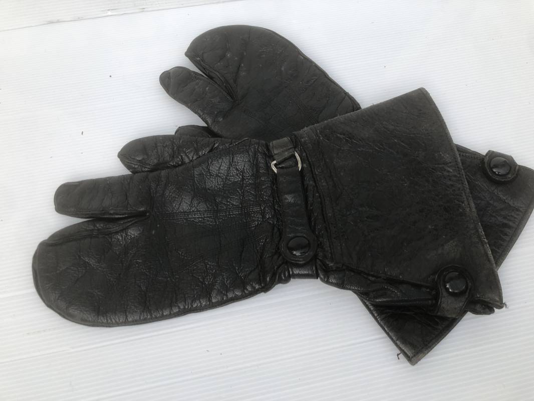 Belle paire de gants de vol d'un navigant de la Luftwaffe . Paire de gants à crispins en cuir noir . Lanières en cuir et boucles avec pressions . Intérieurs des mains doublé en laine blanche . Marquage fabricant receptionné LBA daté 1939 Taille 9 1/2 . Cuir souple , legerement porté en parfait état Ref 19404