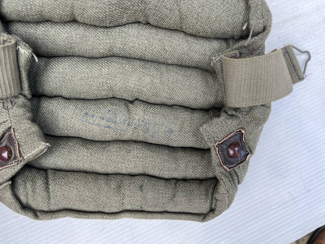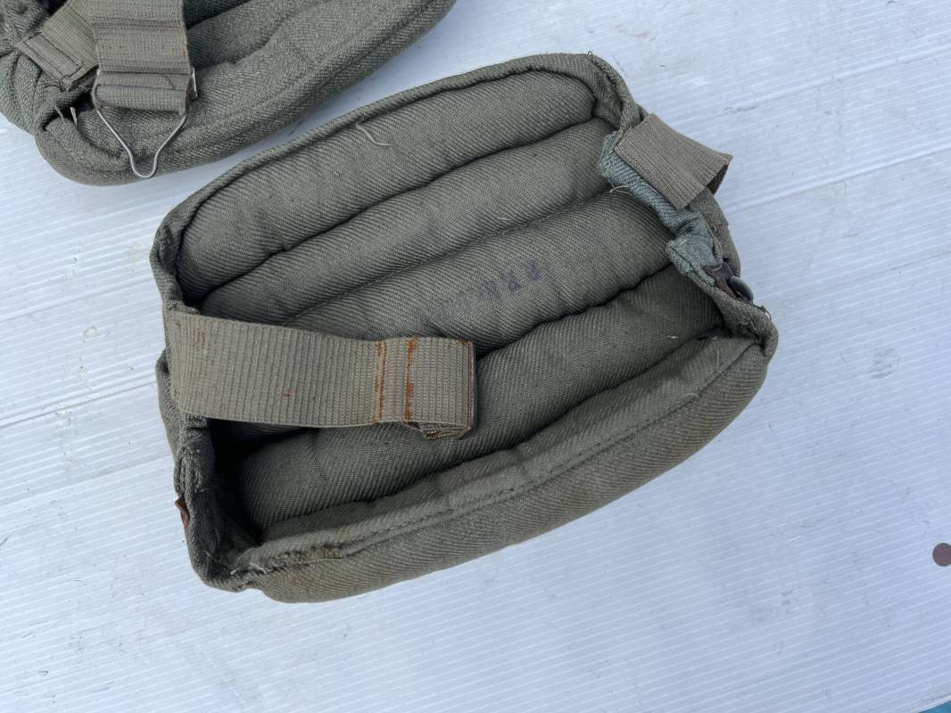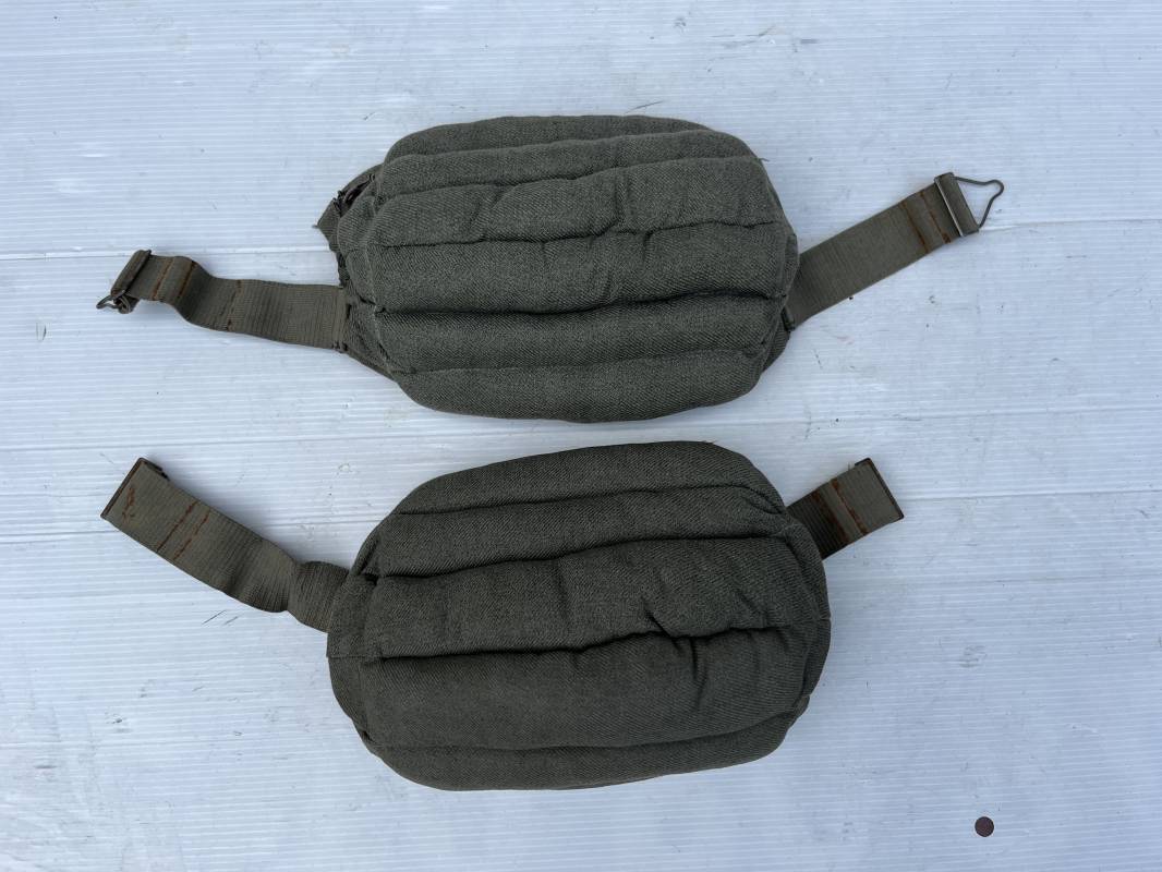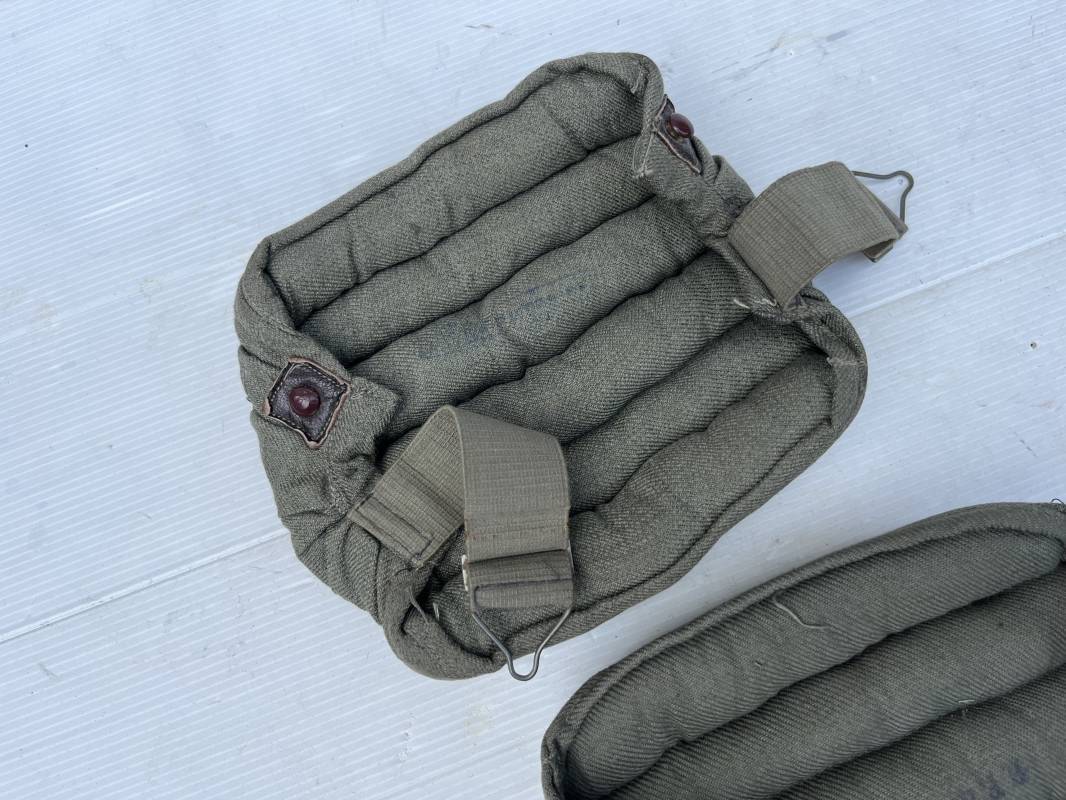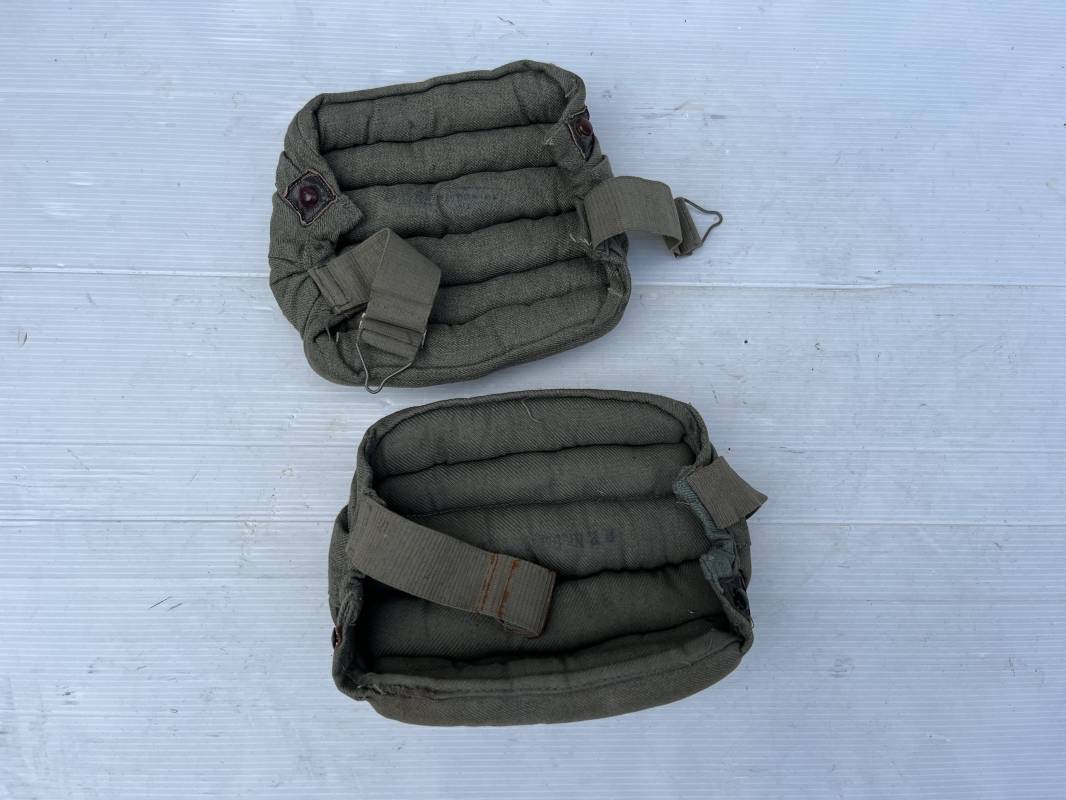 Trés belle paire de genouillères d'un chasseur parachutiste de la Luftwaffe . Paire de genouillère d eprotection pour tenue de saut . Genouillères de dotation en coton vert , élastiques et tétons d'origine . Superbe état de conservation . Marquage fabricant Rbnr sur l'intérieur . Parfait état Ref 21200