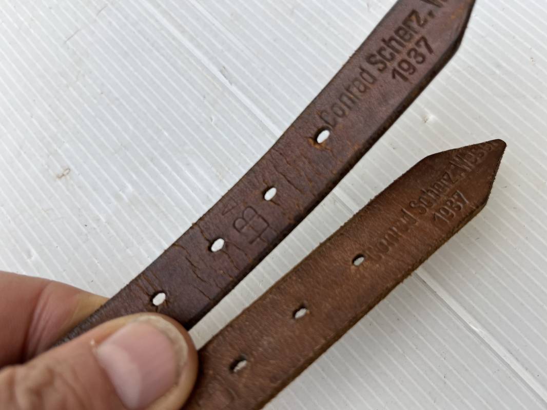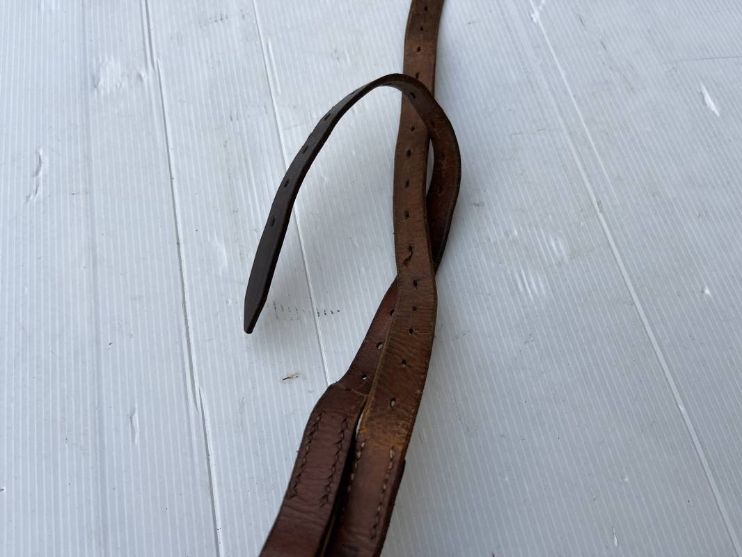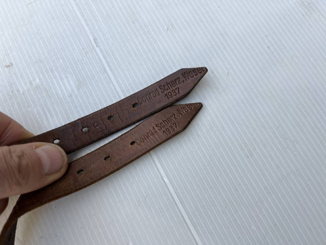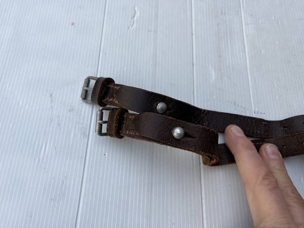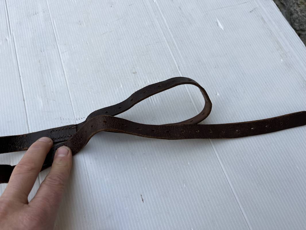 Rare paire de sangles à paquetage ( gamelle , tente , capote .. ) de la Luftwaffe en cuir marron foncé . Paire homogéne du meme fabricant 4Conrad Scherz 19374 receptionné LBA . Boucles et tétonS en alu . Petites pattes en cuir pour d2grafage rapide . Cuir soupe longueur 52 cm parfait état . Peu courant en vrai paire ! 21603