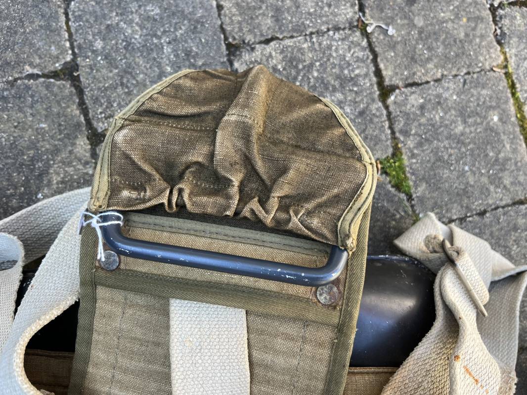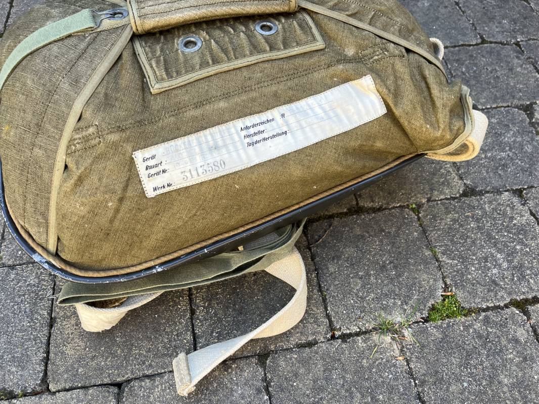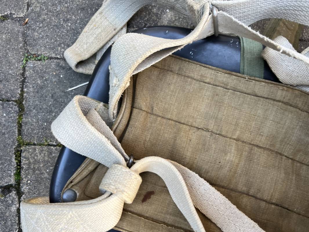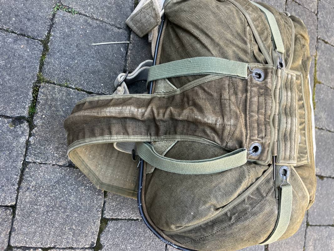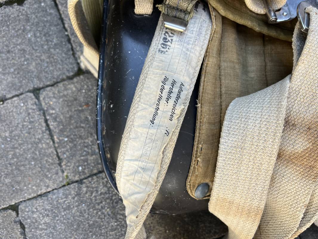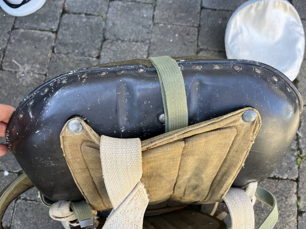 Rare parachute dorsal de pilote ou navigant de la Luftwaffe, « Rückenfallschirm », dossier en aluminium, système de dégrafage rapide du harnais, voilure avec extracteur et suspentes, nombreux tampons de fabrication et d'inspection, daté 3 juin 1942, .Ce modèle équipait aussi bien les pilotes de chasse que les équipages de bombardier de la Luftwaffe. Le parachute n a pas été déplié pour vérifier l'état de la voilure . Voilure interieure en soie blanche . Harnais en forte toile blanche , étaiquette soie . Boucleries en metal . Large boucle de degrafage rapide sur le devant . Parachute legerement utilisé en parfait état 1935/45 Ref 21928
