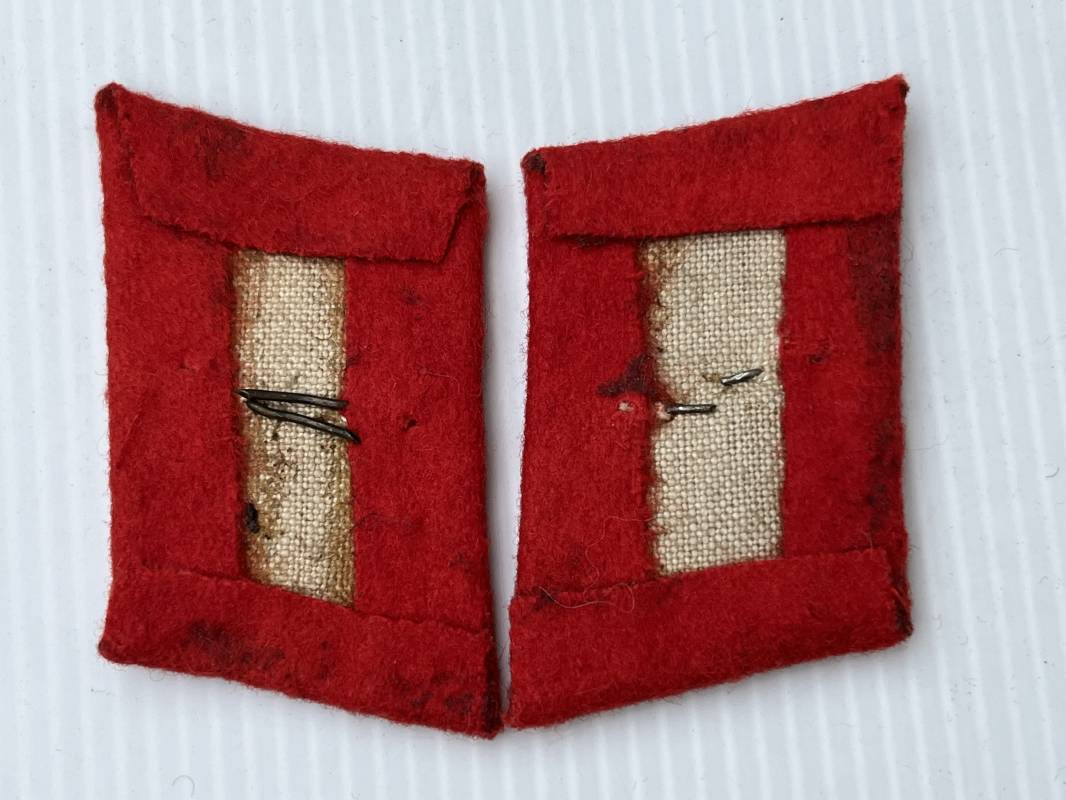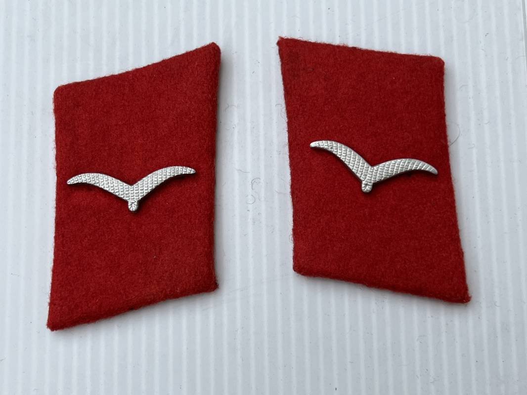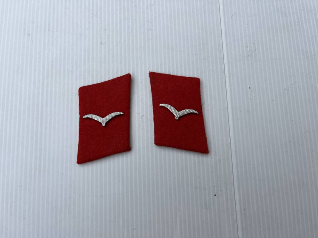 Belle paire de pattes de col troupe de la Luftwaffe d'un artilleur ( Flak) . Dimensions 55x40mm. Socle en toile recouvert drap de couleur rouge . Pattes de col portée et démontées d'une veste , parfait état , tres belle patine . MouetteS metalliqueS sur chaque coin de col 1935/45. Ref 20173