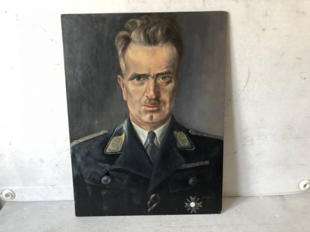 Peinture sur panneau bois isorel d'origine d'un portrait d'un officier pilote de la Luftwaffe . Dimensions 345X458 mm ; Parfait état . 1940/45 Ref 11922