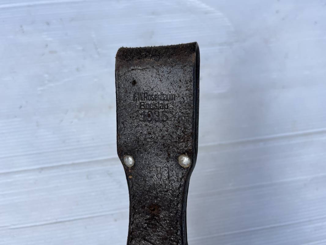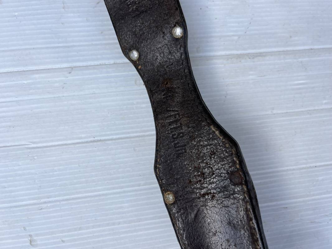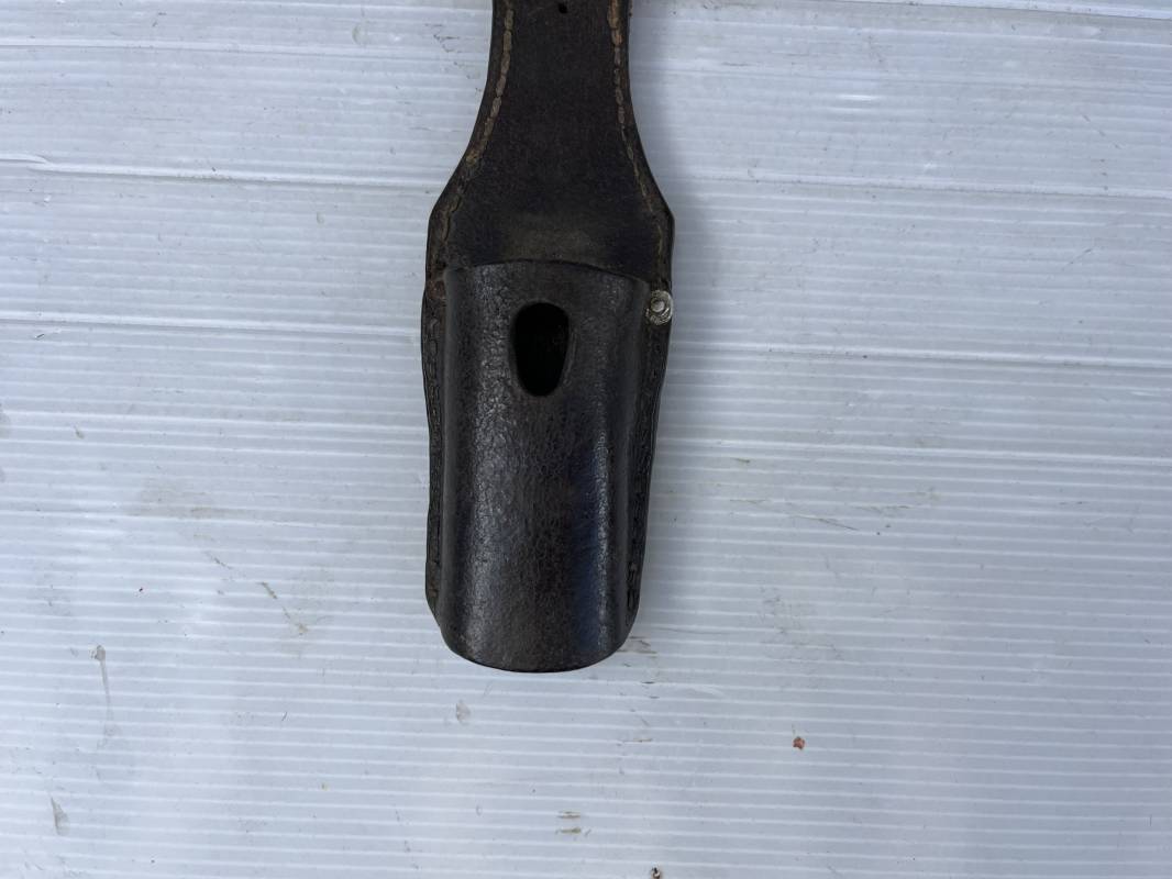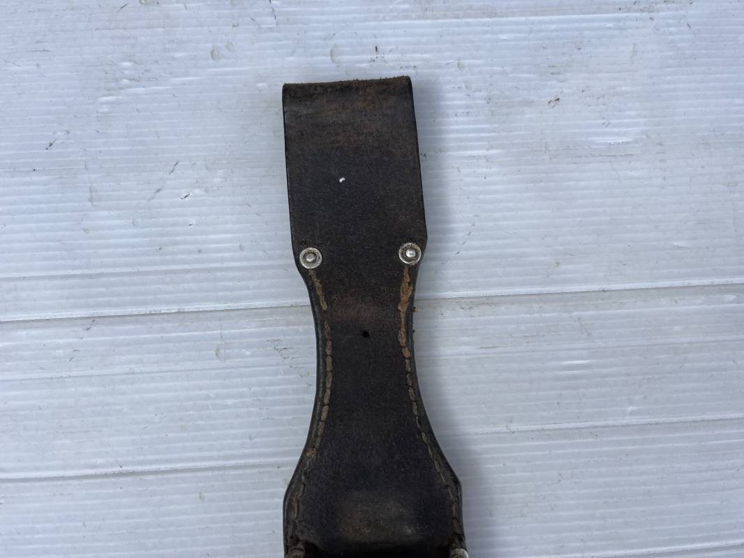 Trés beau porte baionnette 84/98 de la Luftwaffe ebn cuir retournée marron foncé . Rivets en alu . Marquage fabricant daté 1936 Receptionne LBA 36 et affectation Kp / Fl.T;S Ju . Cuir souple légérement oorté en parfait état Ref 21133