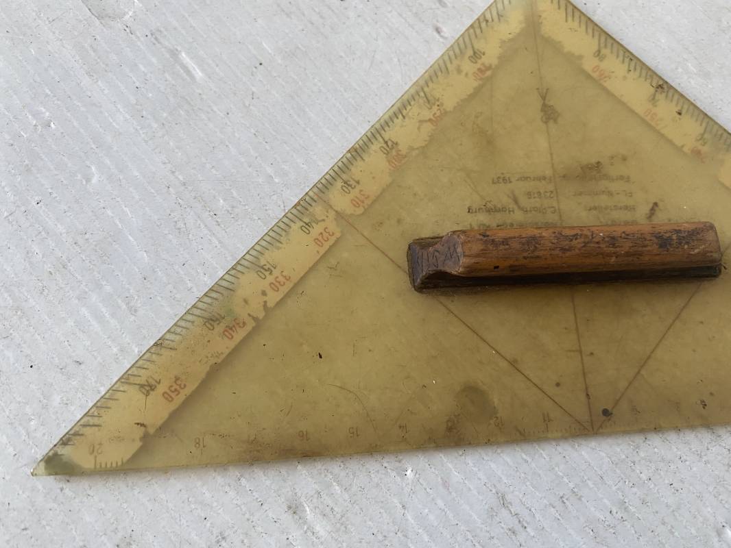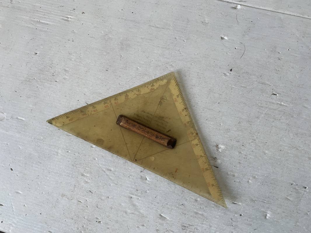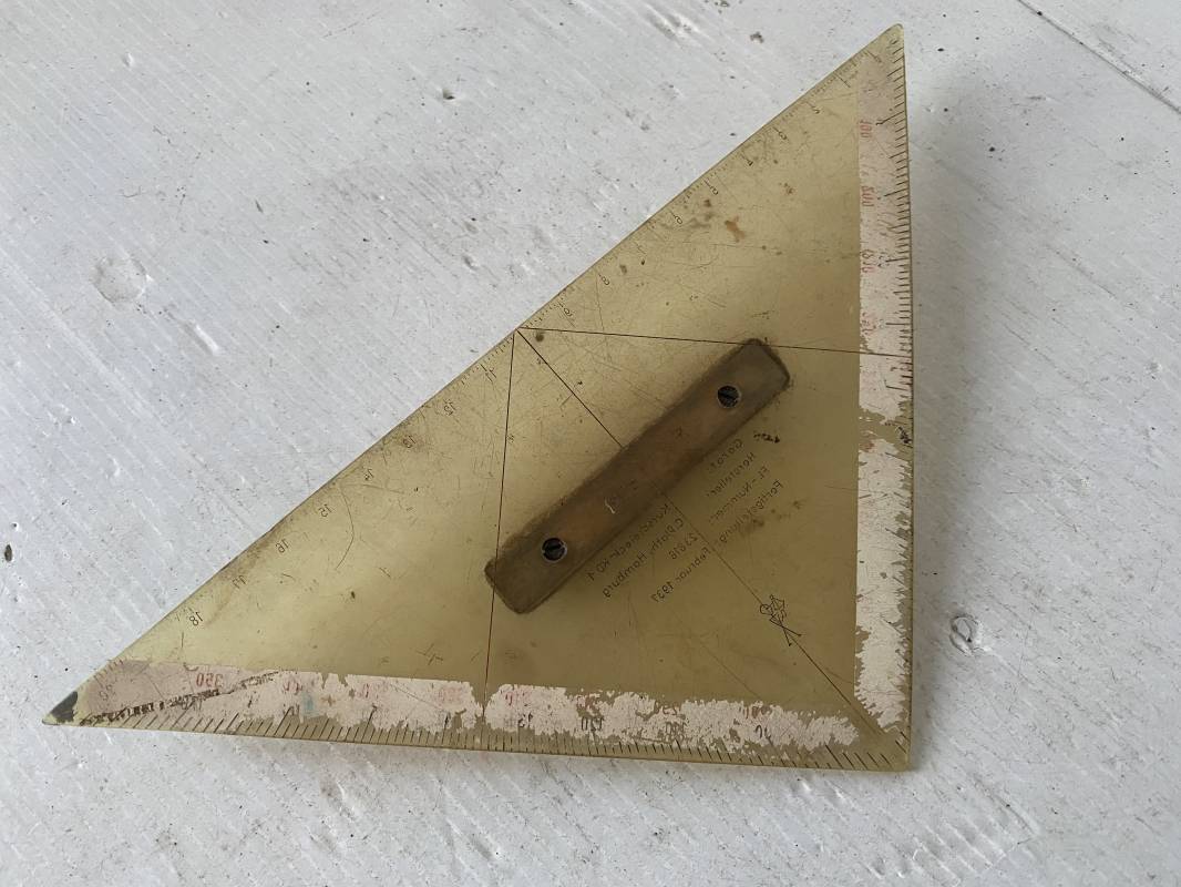 Réglette de vol pour navigant de la Luftwaffe. Dimensions 22x16x16cm. Triangle en Plexi translucide avec support en bois. Marquage fabricant Plath à Hambourg daté 1937. Légèrement utilisé en bel état. Peu courant. Bon instrument de vol pour navigant de la Luftwaffe 1935/45. Ref 16848