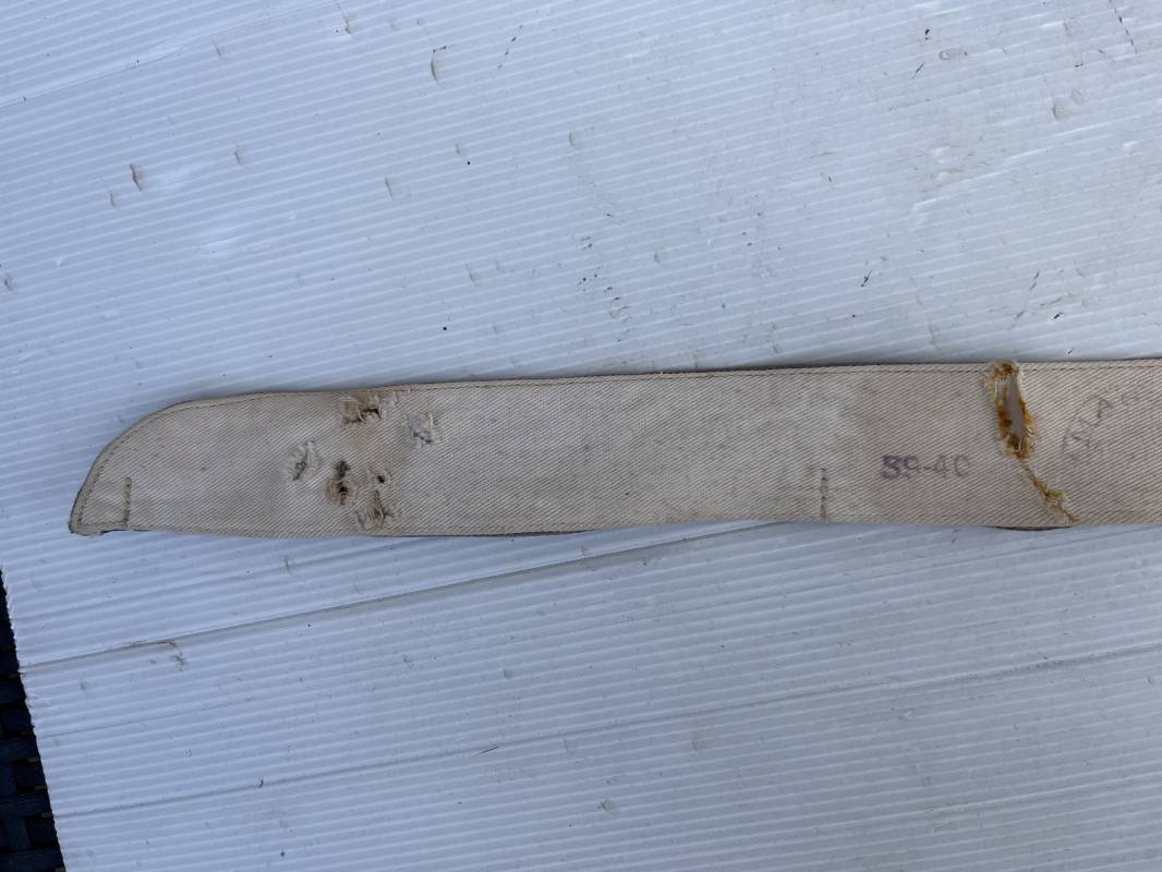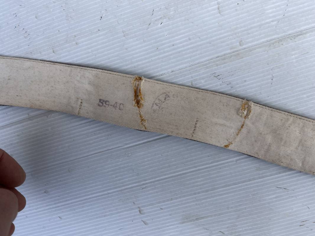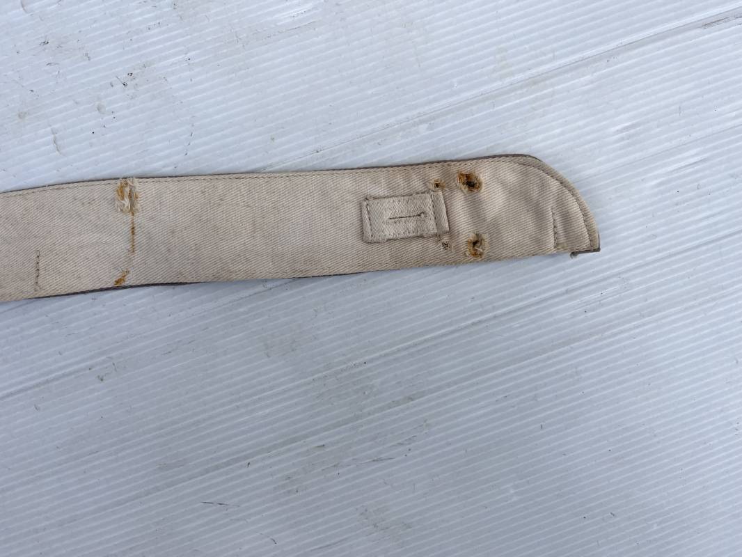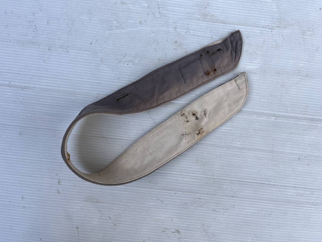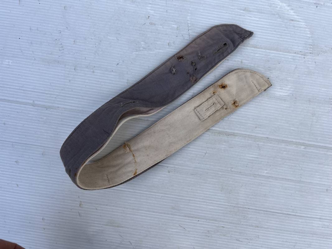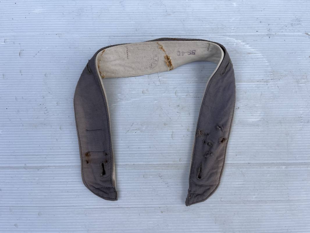 Sous col de dotation ( kragenbinde) pour vareuse de la luftwaffe . Toile de coton gris bleu et interieur blanc , boutonnières . Longueur totale 52 cm . Porté en bon étét avec traces d usures . Tamon rond encre de fabricant . Ref 19794