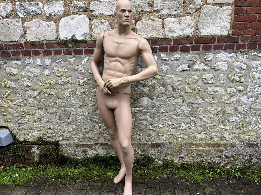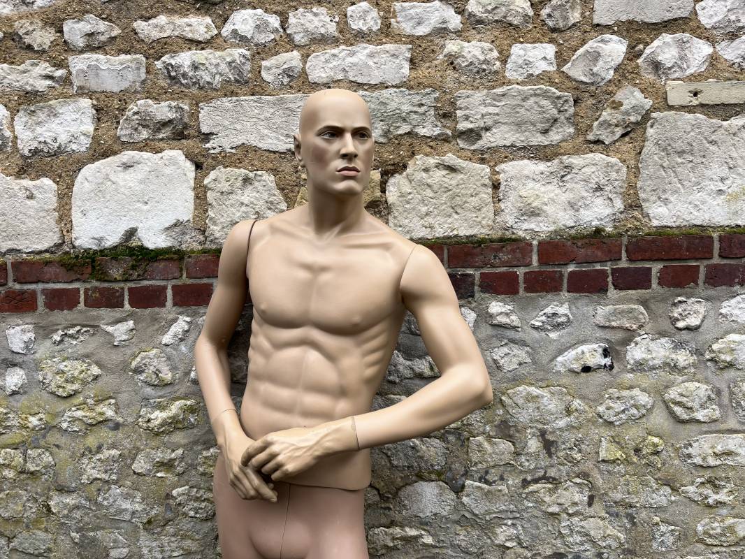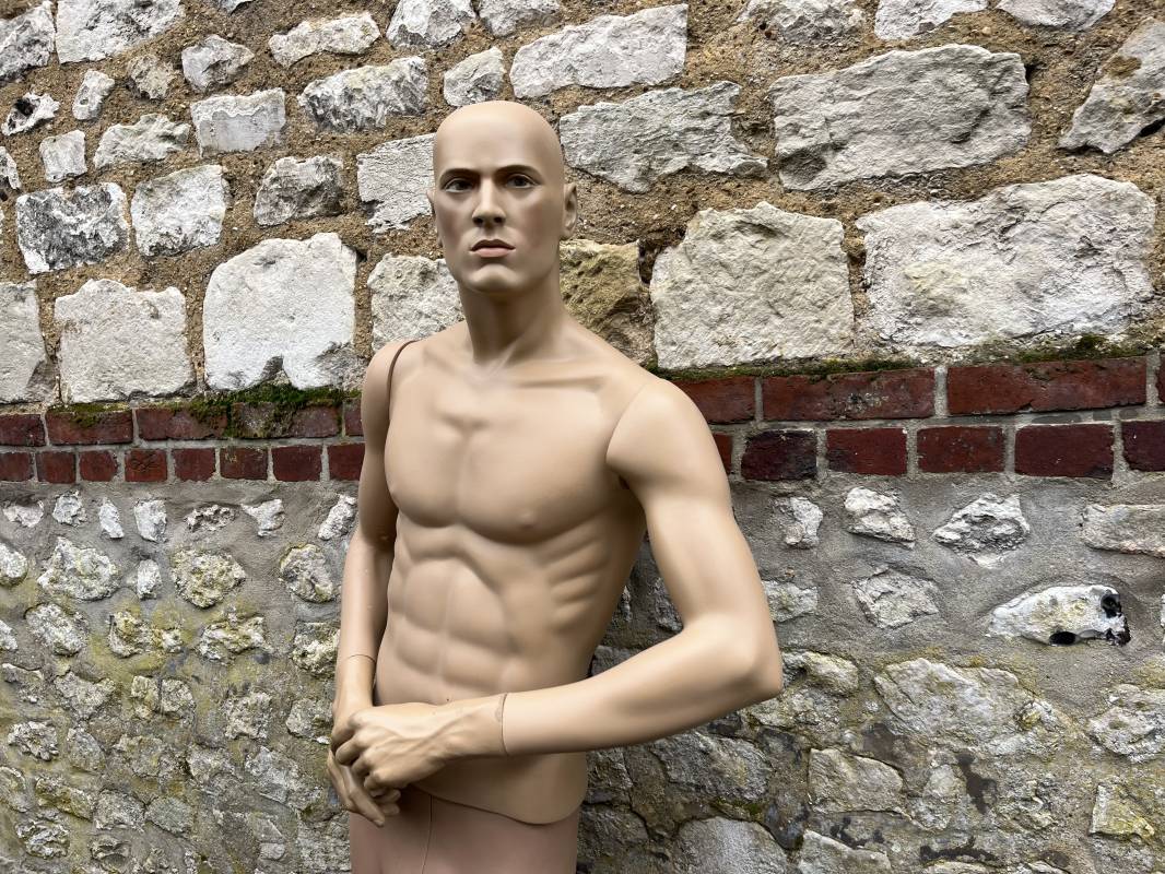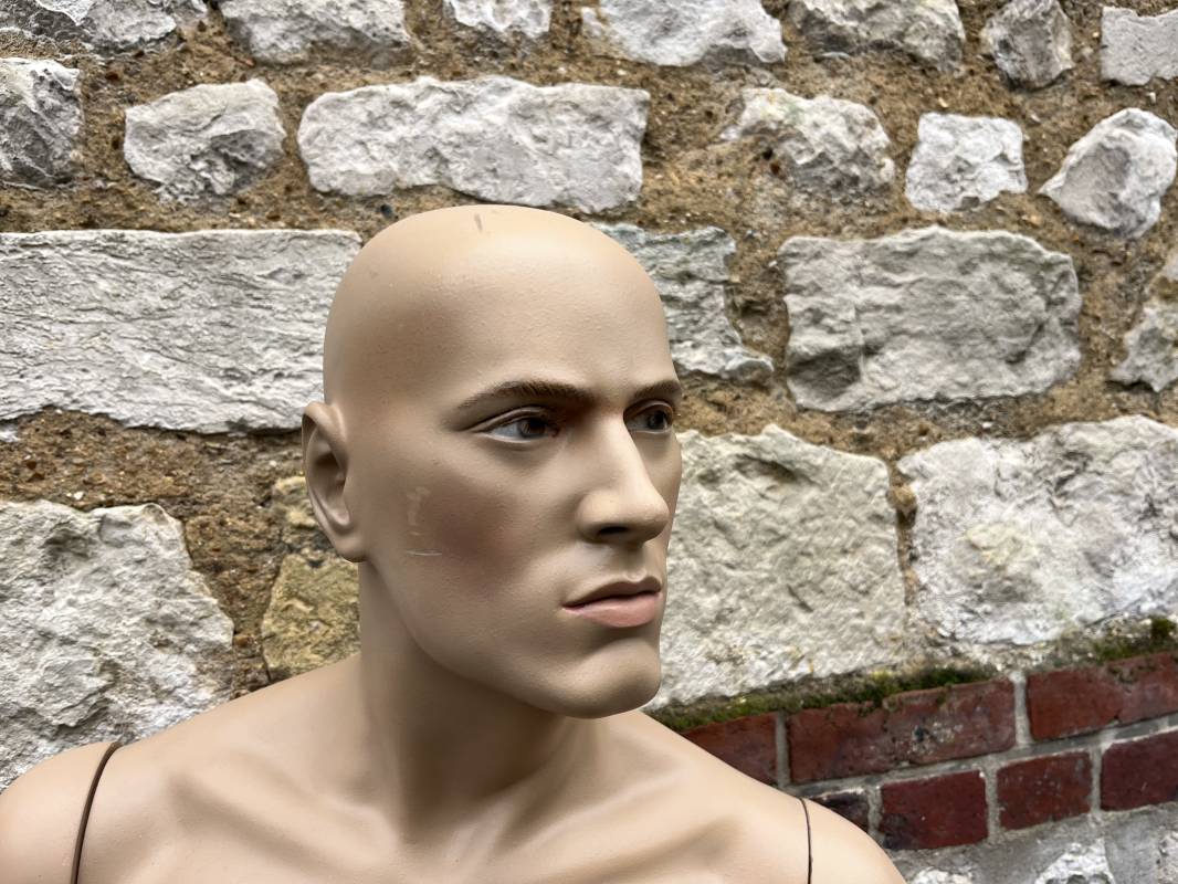 Beau mannequin homme Hindsgaull . Bras articulé . Pieds non coupés . Belle téte . Hauteur totale 185 cm .Haut et bas du mannequin sont du meme fabricant mais depareillé ( leger debordement du buste sur un coté ( voir photos ) Envoi possible par la poste 40 E pour la France metropolitaine Ref 21721