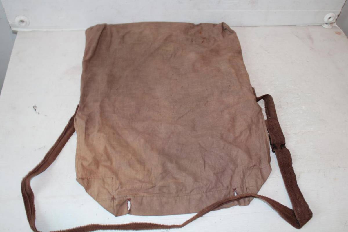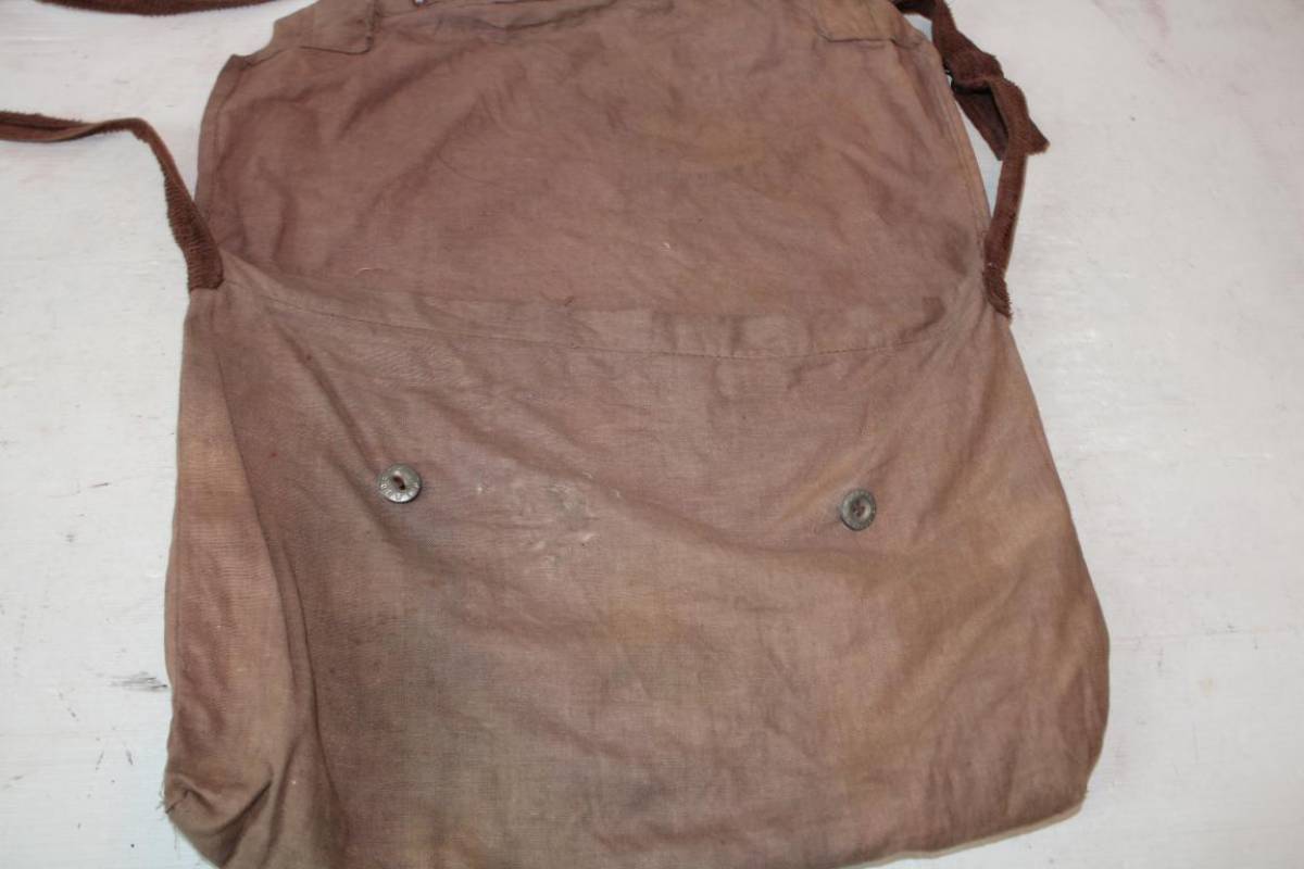Belle musette individuelle modèle 1892 pour poilu. Confection ersatz en toile "légère" de couleur cachou. Deux boutons métalliques type mercerie. Curieuse sangle en toile de coton marron foncé. Boucle métallique. Bonne musette typique des fabrication ersatz de l'année 1915. Bon état. Ref 11166