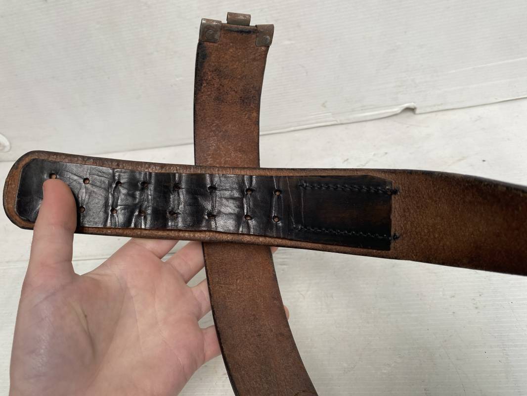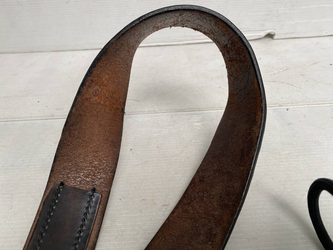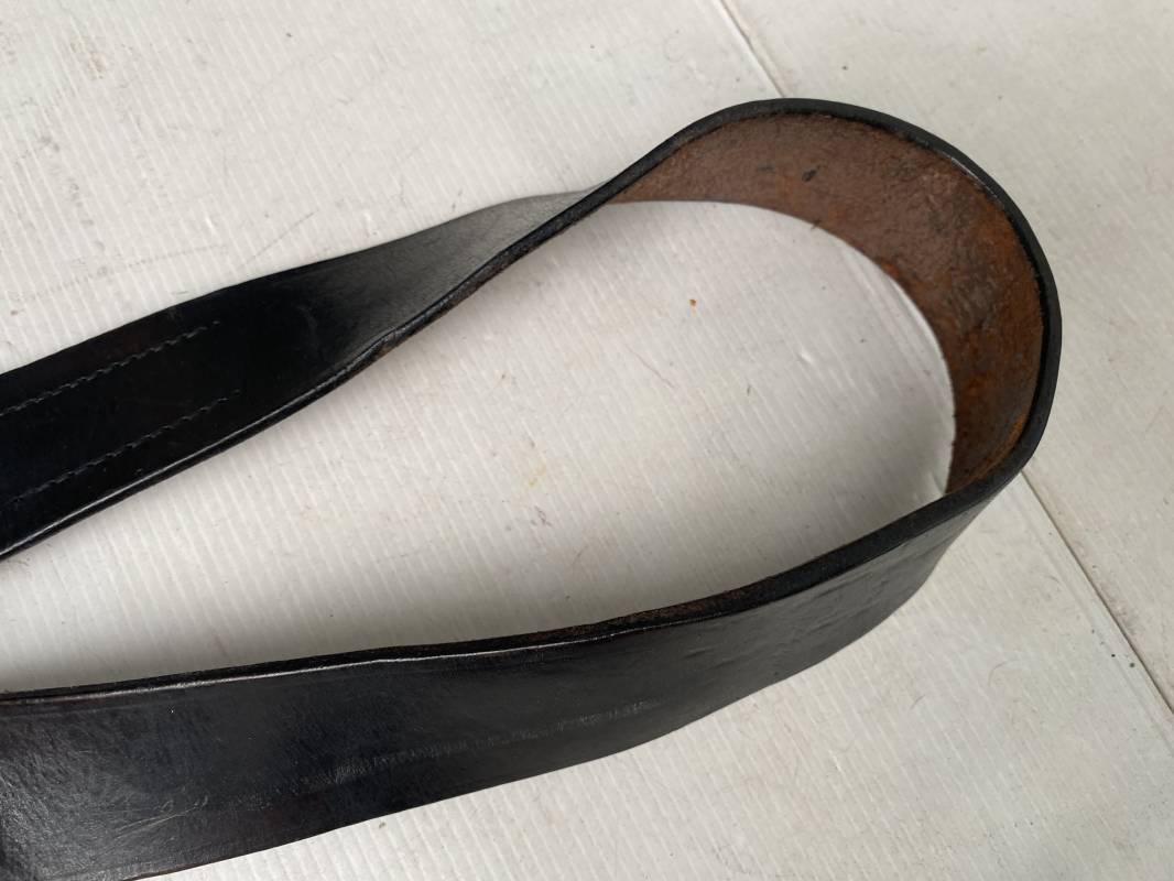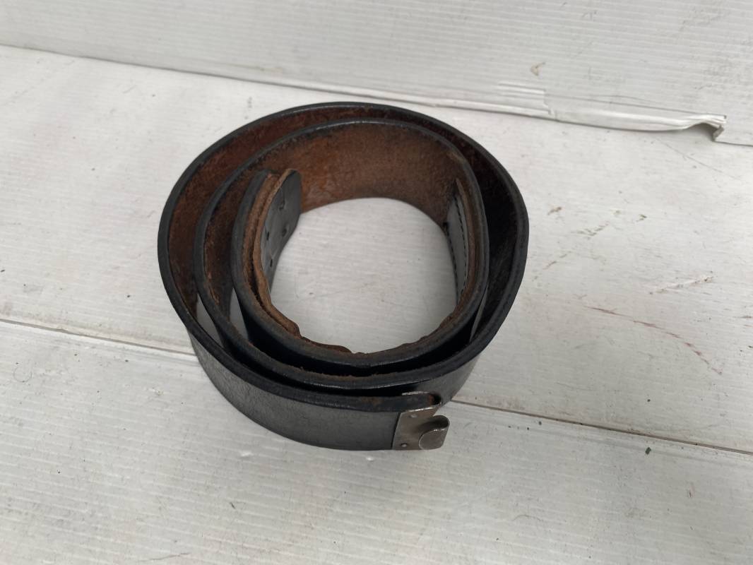 Ceinturon troupe du personnel du NSDAP (HJ, SA, NSKK...). Ceinturon en cuir noir. Crochet de fixation en fer, riveté. Languette intèrieure de réglage de taille. Longueur 85cm. Légèrement porté en parfait état 1935/45. ref 17611
