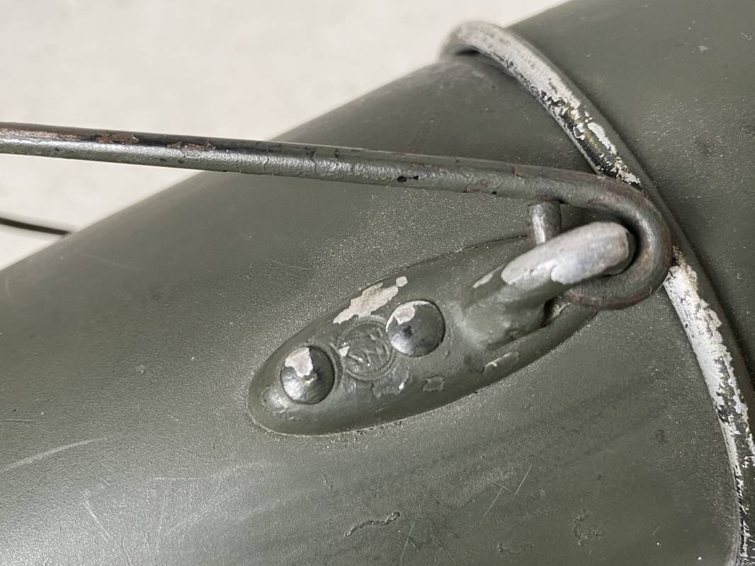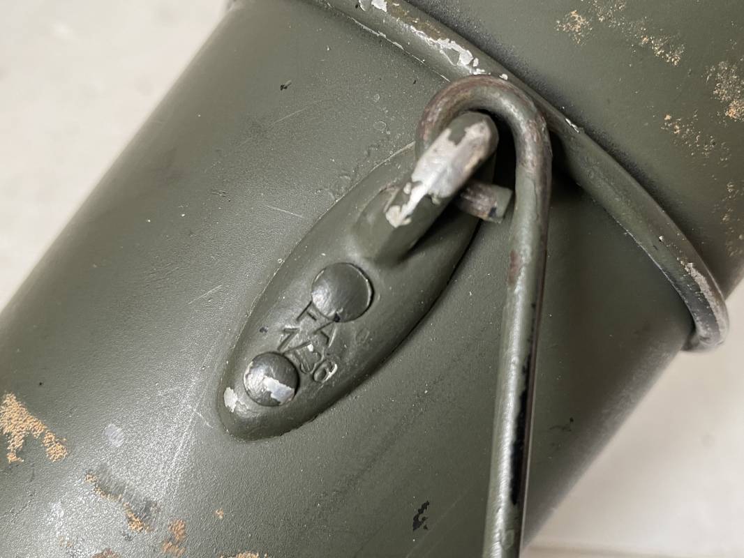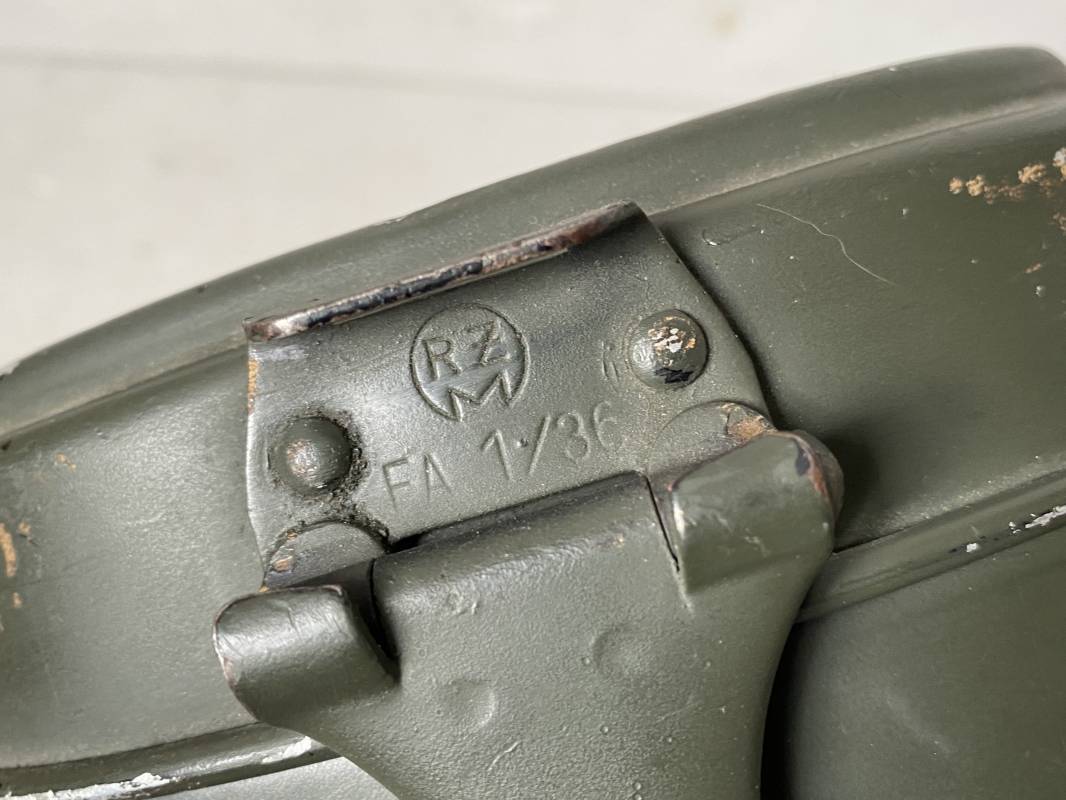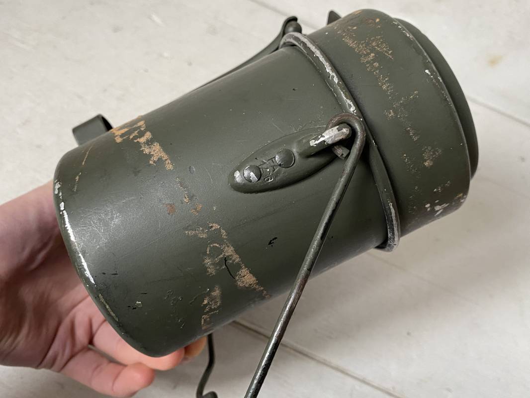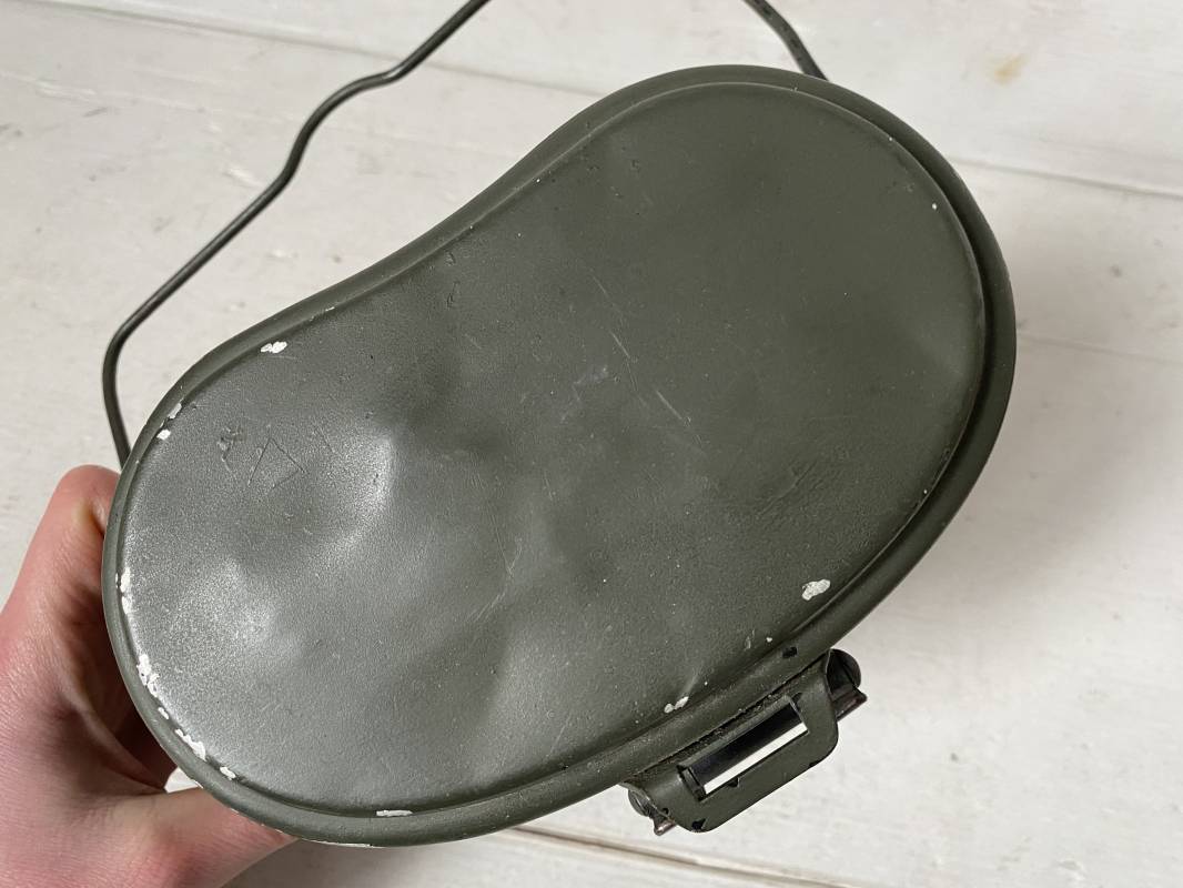 Gamelle individuelle modèle 1931 en alu du NSDAP ( SA, HJ , NSKK , PL .... ) . Peinture verte qui semble recouvrir une peinture noire d'usinage. Marquage RZM FA 1/36. Poignée et rabat en fer. Légèrement utilisé en parfait état 1935/45. Ref 14297