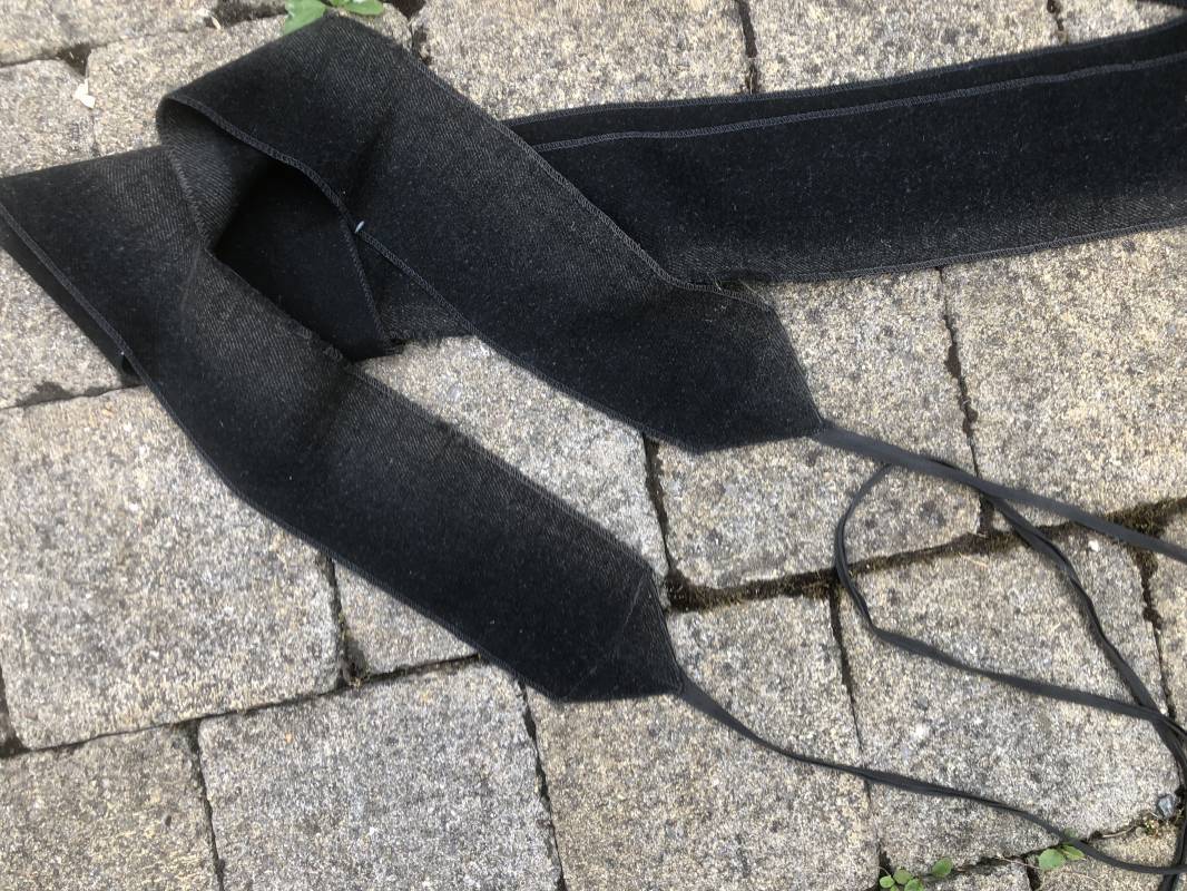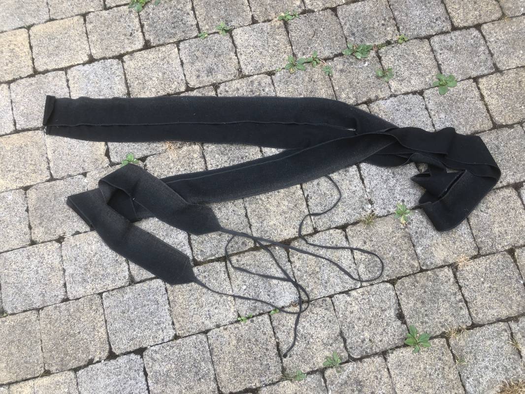 Belle paire de bandes moletières d'un officier en drap noir . Typique aout 1914 pour la tenue de combat . PLeine longueur , ourlée fil coton sur les cotes . Lacets en coton noir . Légérement porté en bel état . 1914/15 Ref 16426