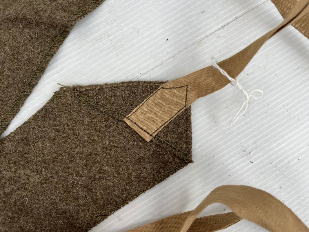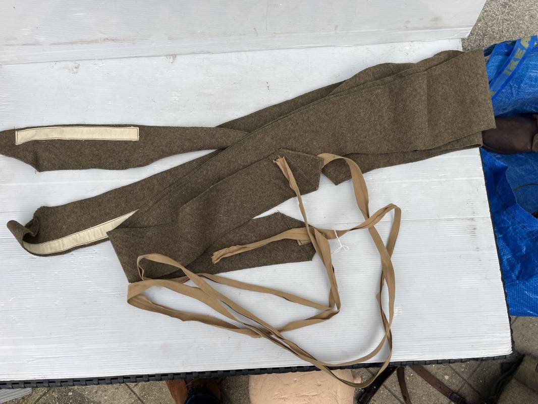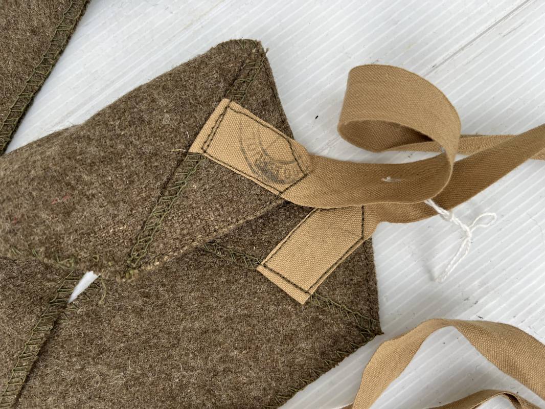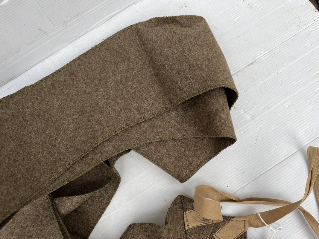 Très belle paire de bandes moletières Troupe en drap kaki. Paire homogène et du même fabricant en trés bel état. Modèle cintré. Lacets en coton kaki . Bandes de renforts en coton blanc en bas de bandes. Légèrement porté en tres bel état 1939/40 Ref 21317