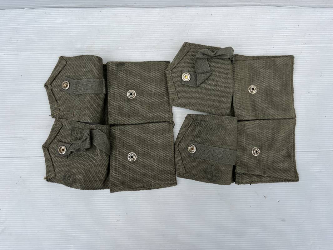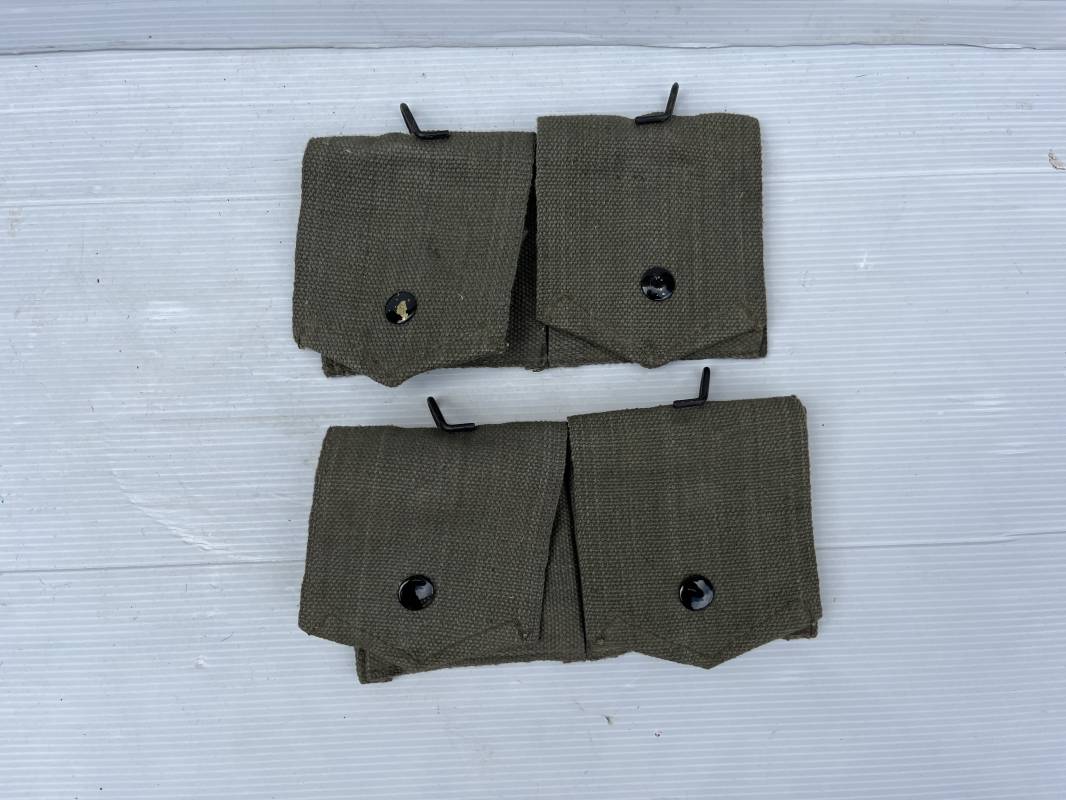 Trés belle paire de cartouchières TAP 50 pour fusil. Paire en forte toile verte. Rabats avec simple pression du modéle 1950 . Lanières coton à l'intérieur. Larges crochets métalliques de fixation au ceinturon. Légèrement utilisé en TR2S bel état . Ref 21077