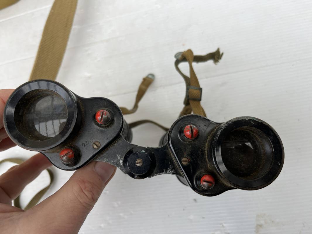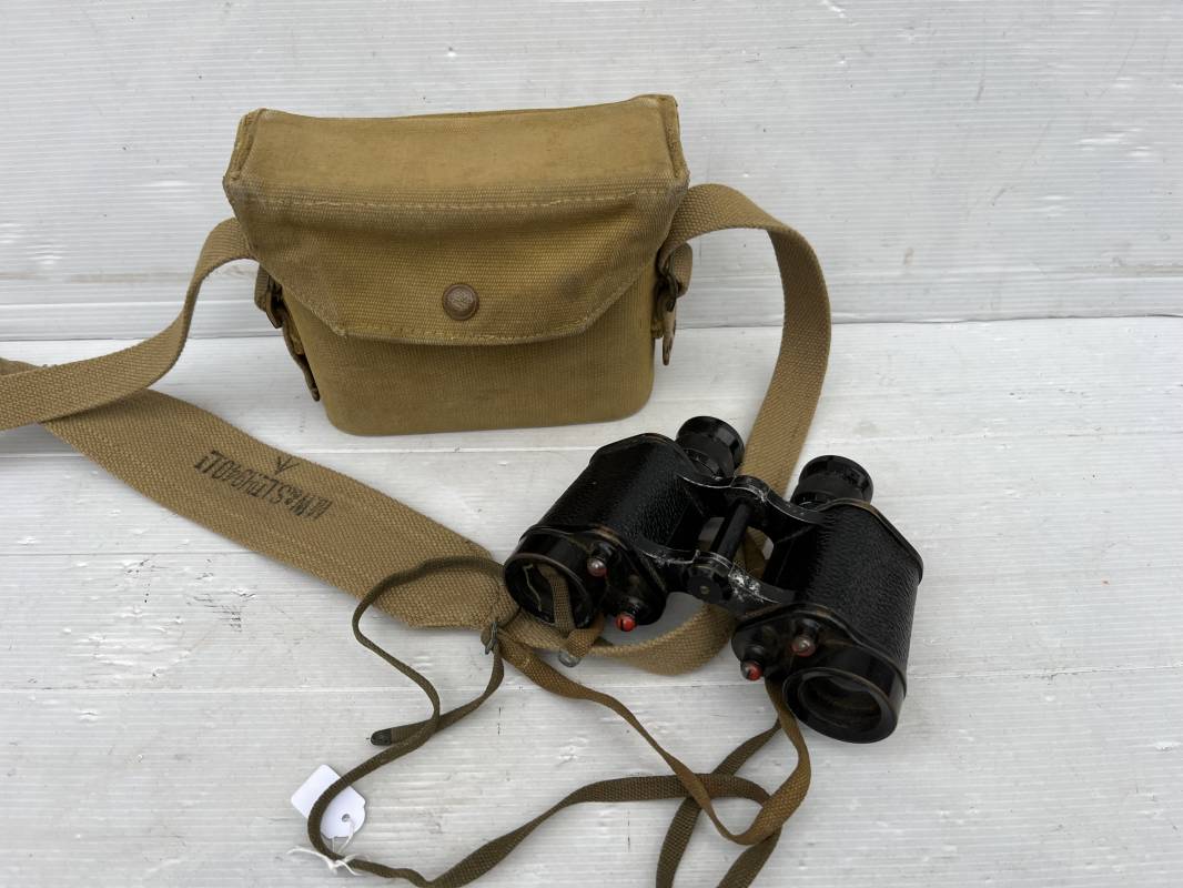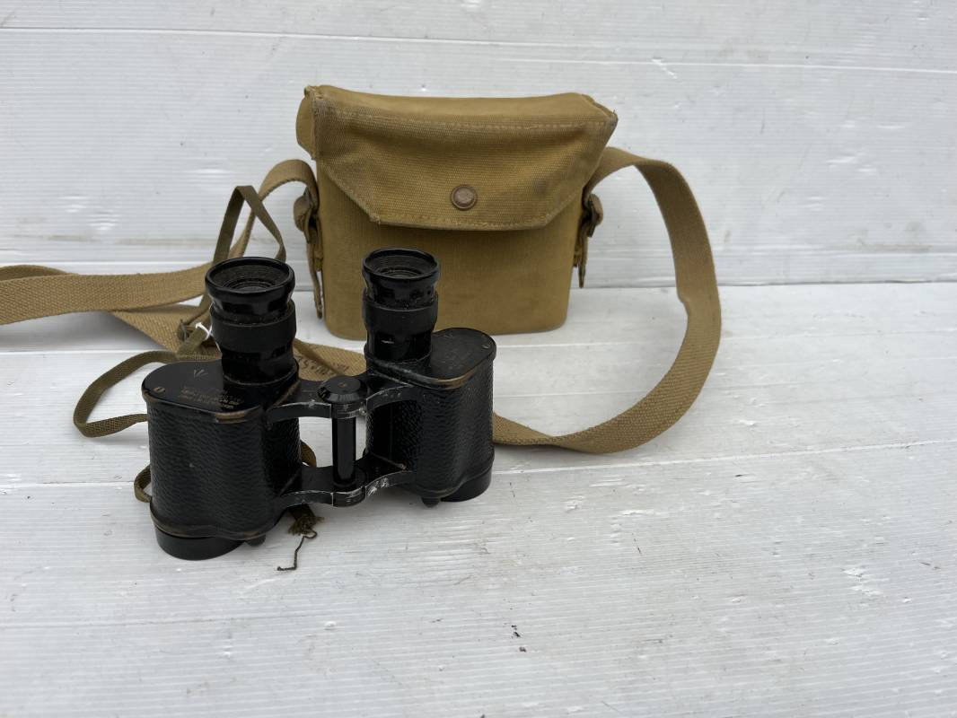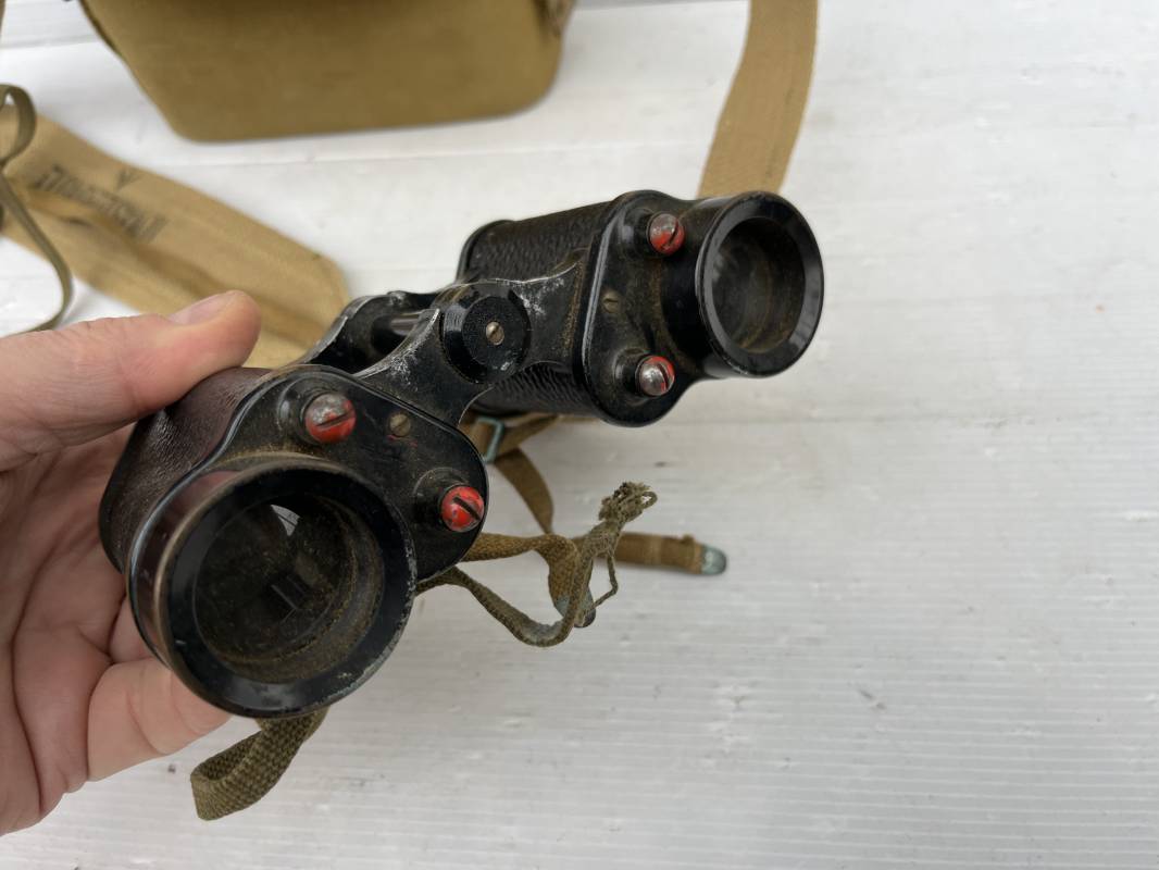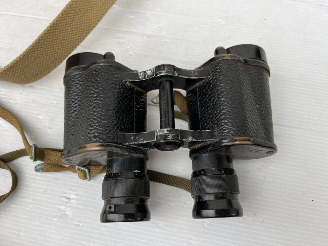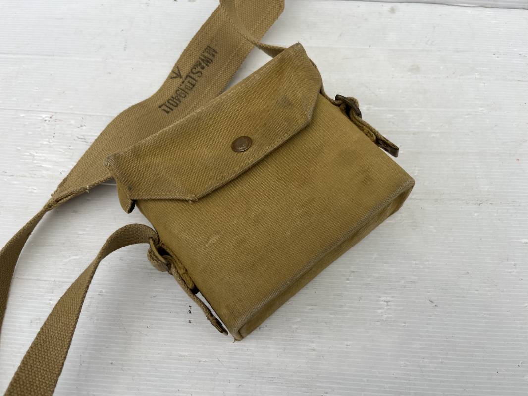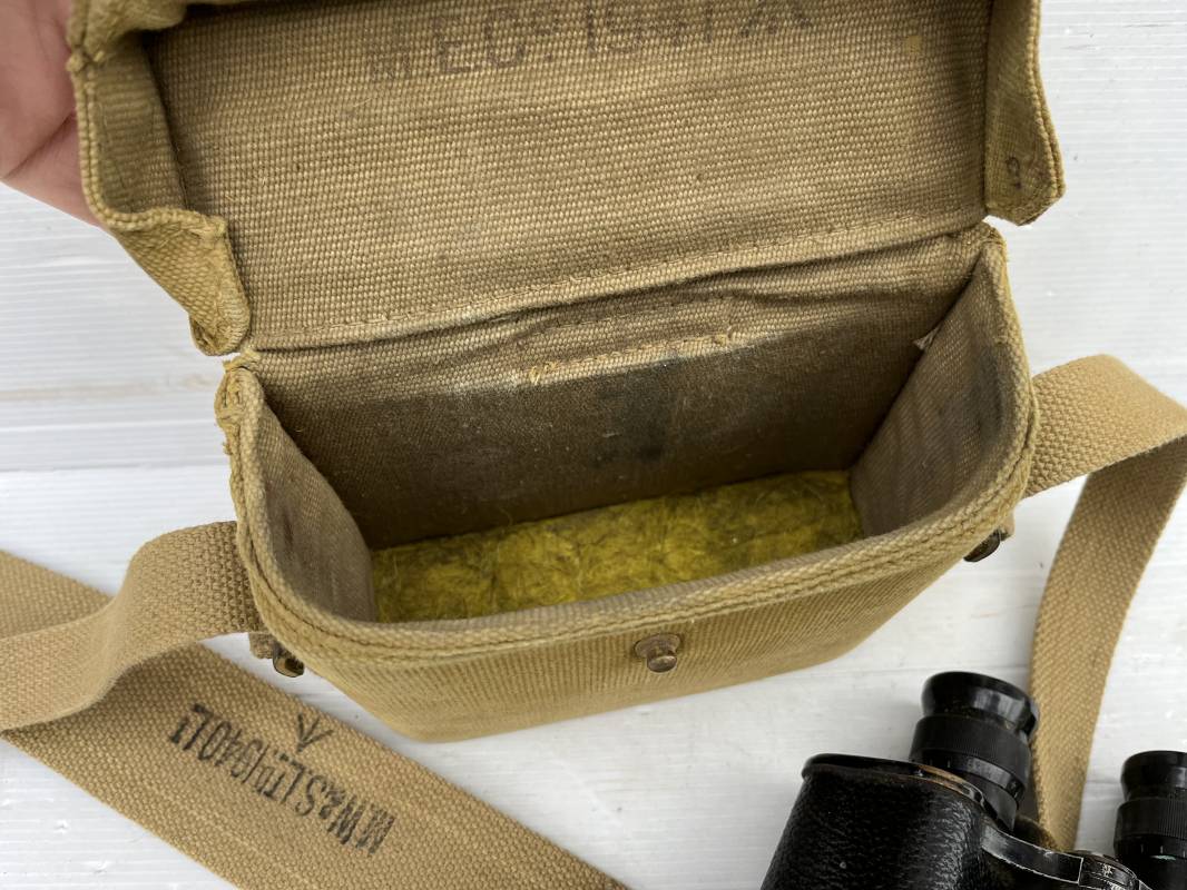 Trés belle paire de jumelles MKIII et étui Pattern 1937 . Paire de jumelles MKIII Bino Prism n °2 MKIII Grossissement 6 . Marquage fabricant Taylor Hobson 1943 Optique en bel état . Métal et laiton avec peinture noire d origine . Lanières en coton filet et boucles métallique de réglage . Etui porte jumelles de dotation pattern 1937 en coton filé beige . Intérieur avec feutrine de protection . Rabat avec pression . Marquage fabricant MECo 1941 . Crochets en laiton sur le derrière pour la fixation au ceinturon . Sangle en coton filet pour le port en sautoir , marquage fabricant daté 1940 . Bel ensemble en parfait état Ref 17079