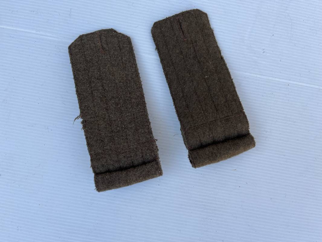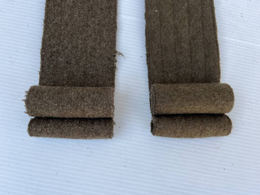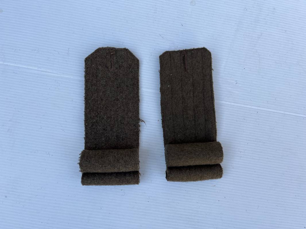 Rare paire de pattes d'épaules en drap kaki pour capote troupe. Paire homogène et du même fabricant. Rouleaux modèle 1935 en drap kaki. Piqures en fil kaki, rouleaux, boutonnières. Légèrement porté en parfait état. Nous garantissons l'authenticité absolue de cette paire trouvée dans la poche d'une capote modèle 1938. Peu courant. Ref 19779