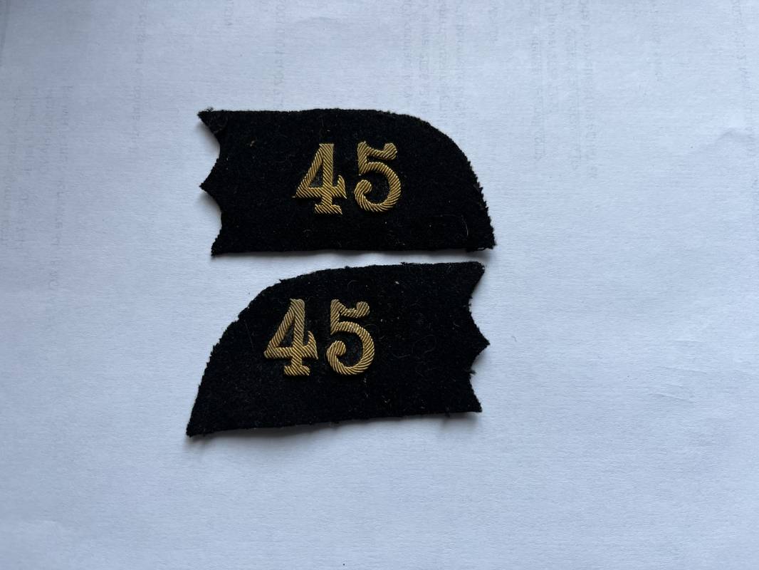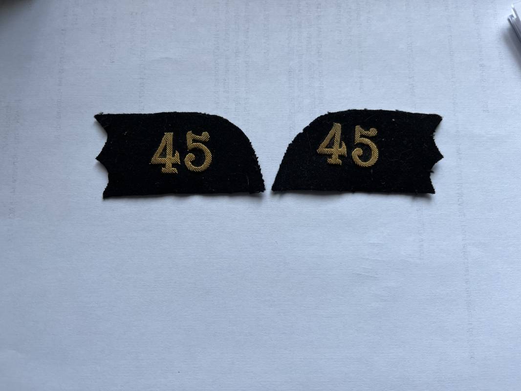 Tres belle paire de coins de col pour veste Mdle 1893 ou 1913 officier de l infanterie . Dimensions 75X38 mm Pattes de col décousues d une vareuse . Parfait état . Drap de fond noir , chiffres brodés cannetille dorée . Parfait état 1890/1914 Ref 21711