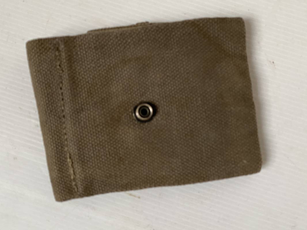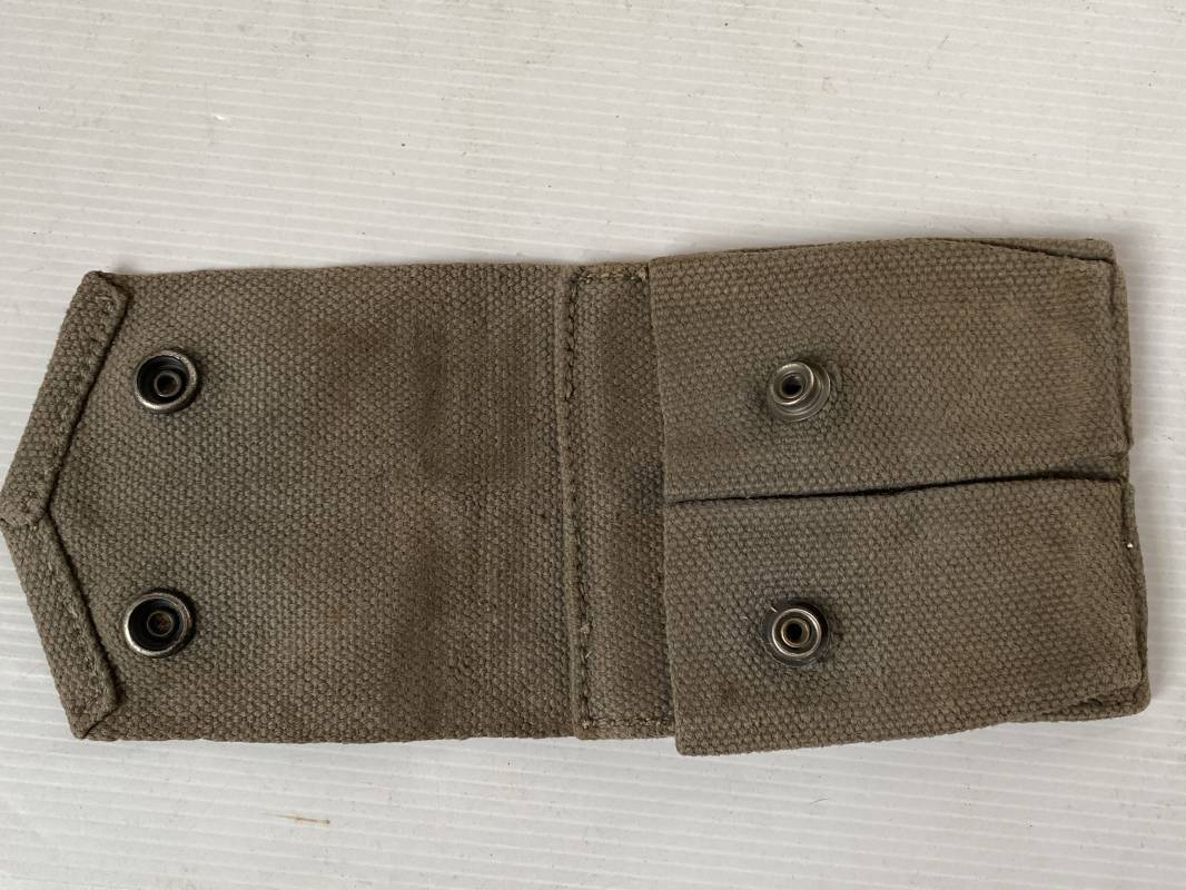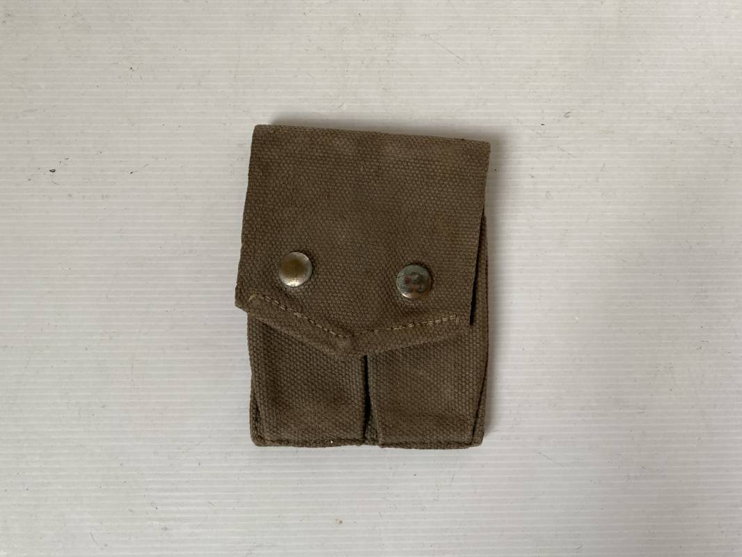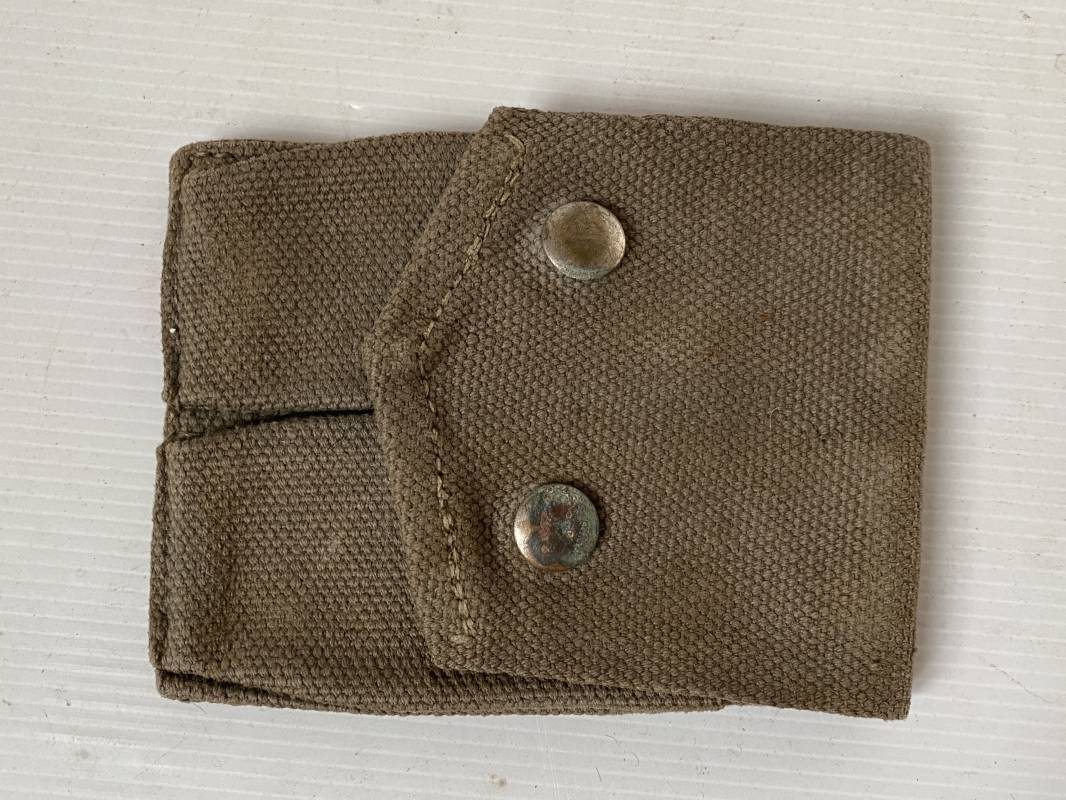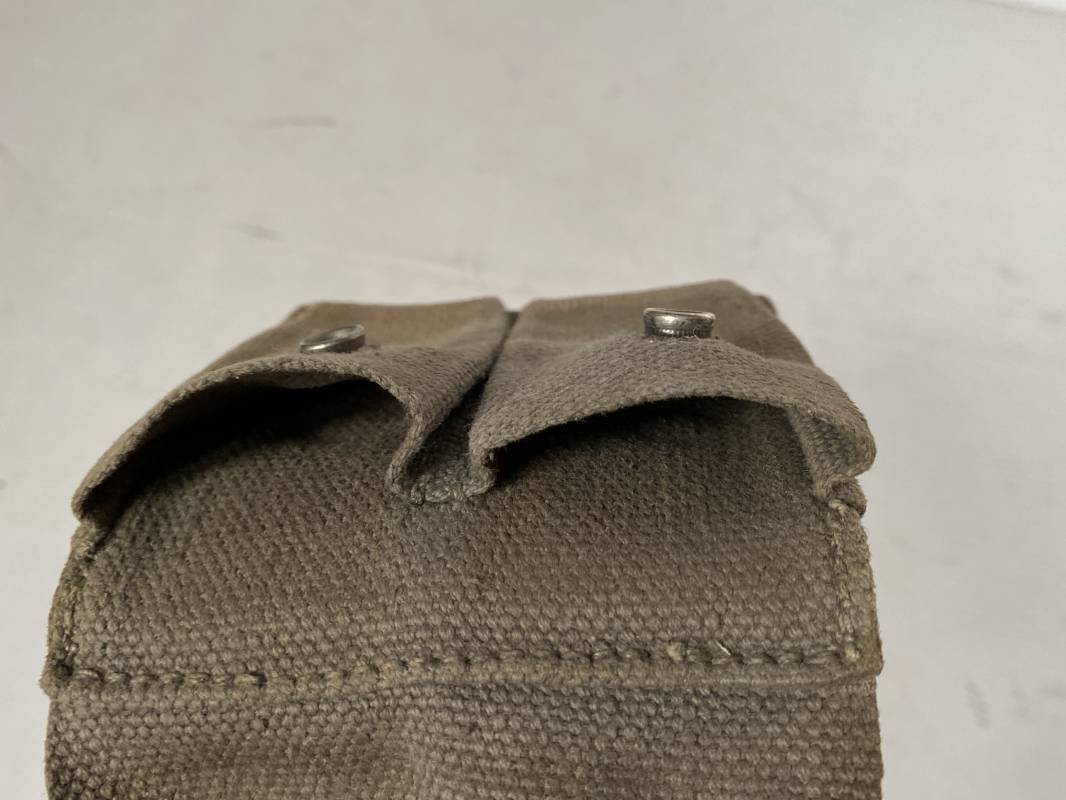 Porte chargeurs modèle 1950 pour Pistolet automatique . Pochette TAP 50 en forte toile verte. Rabat à boutons pression. Rivets métalliques . Bouton pression de fixation au ceinturon. Porté en bel état 1950/55. Ref 15255