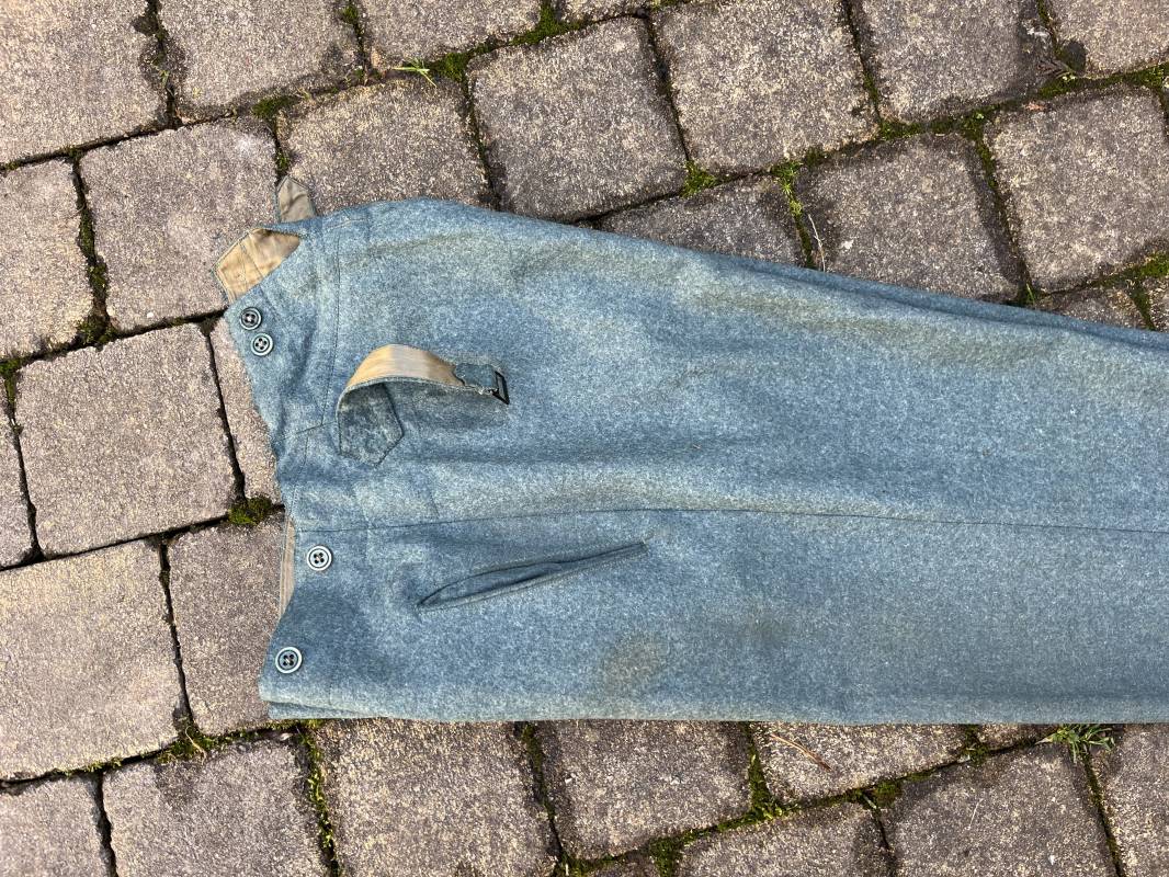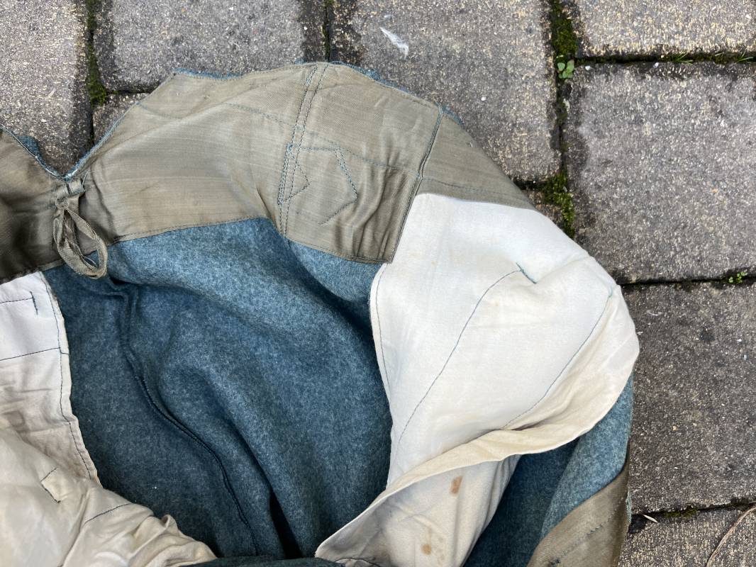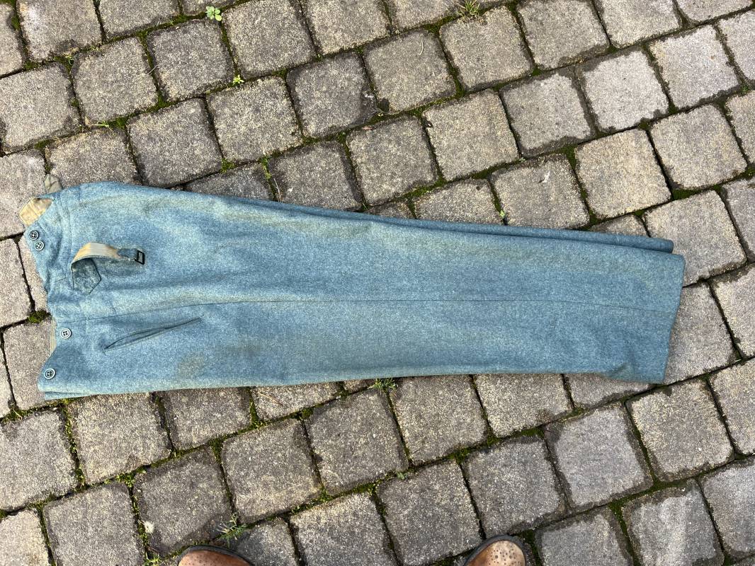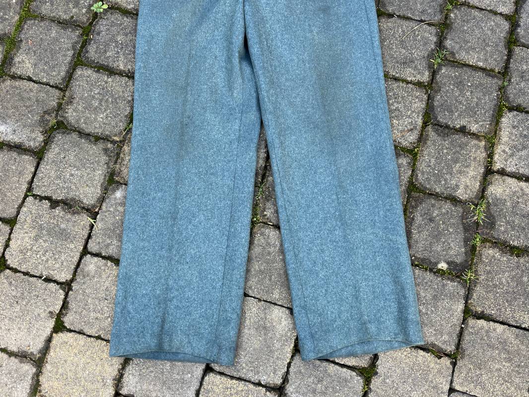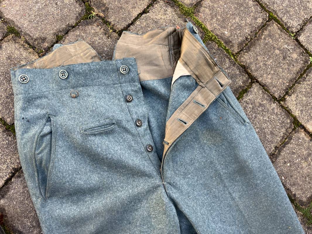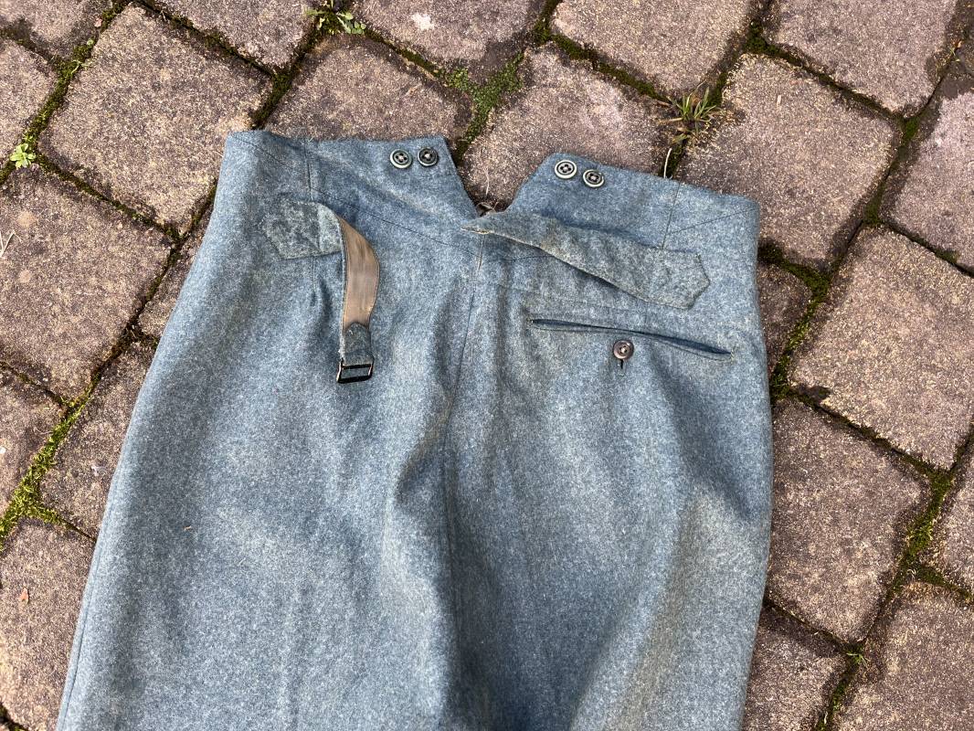 Beau pantalon troupe modele 1936 de la police ou gendarmerie en drap vert . Pantalon de dotation . Trois poches dont une fessière . Poche a gousset . Martingale dans le dos . Boutons en bakélite vert cousus d origine . Martingale et boucle métallique . Intérieur doublé en satinette gris vert , poches en coton blanc . Marquages encre fabricant H Hillgen . Drap frais , légérement porté en bel état Taille 40 Longueur 107 cm . Beau pantalon de dotation de la Schutzpolizei ou gendarmerie allemande . 1935/45 Ref 21768