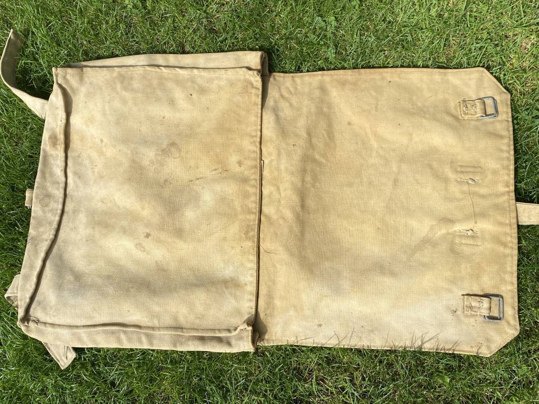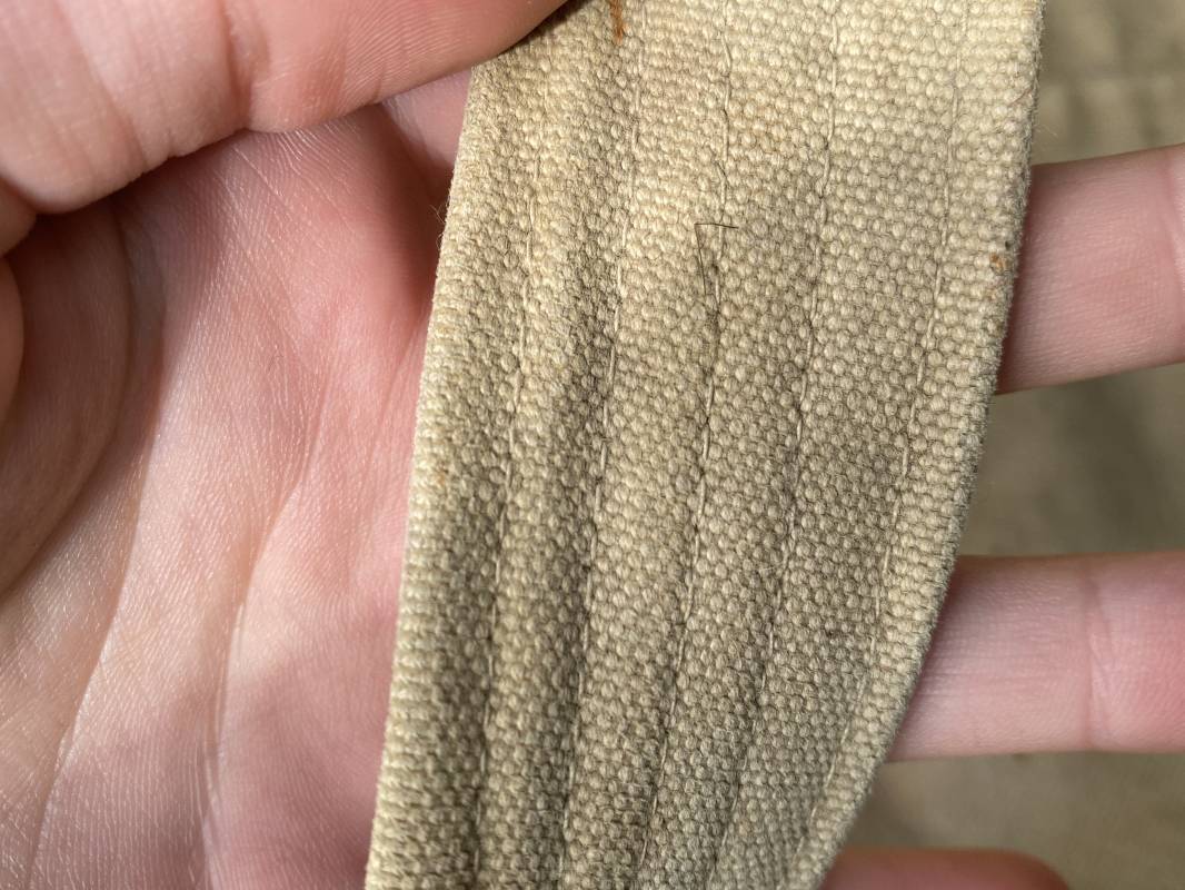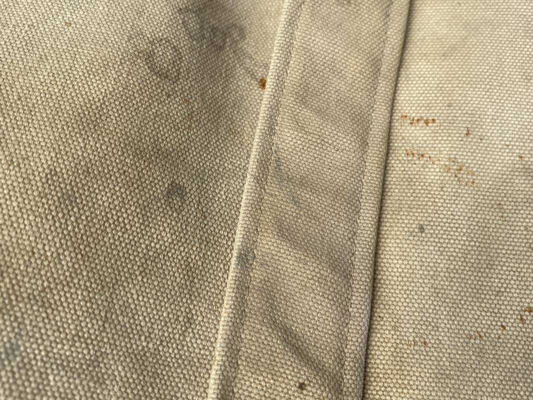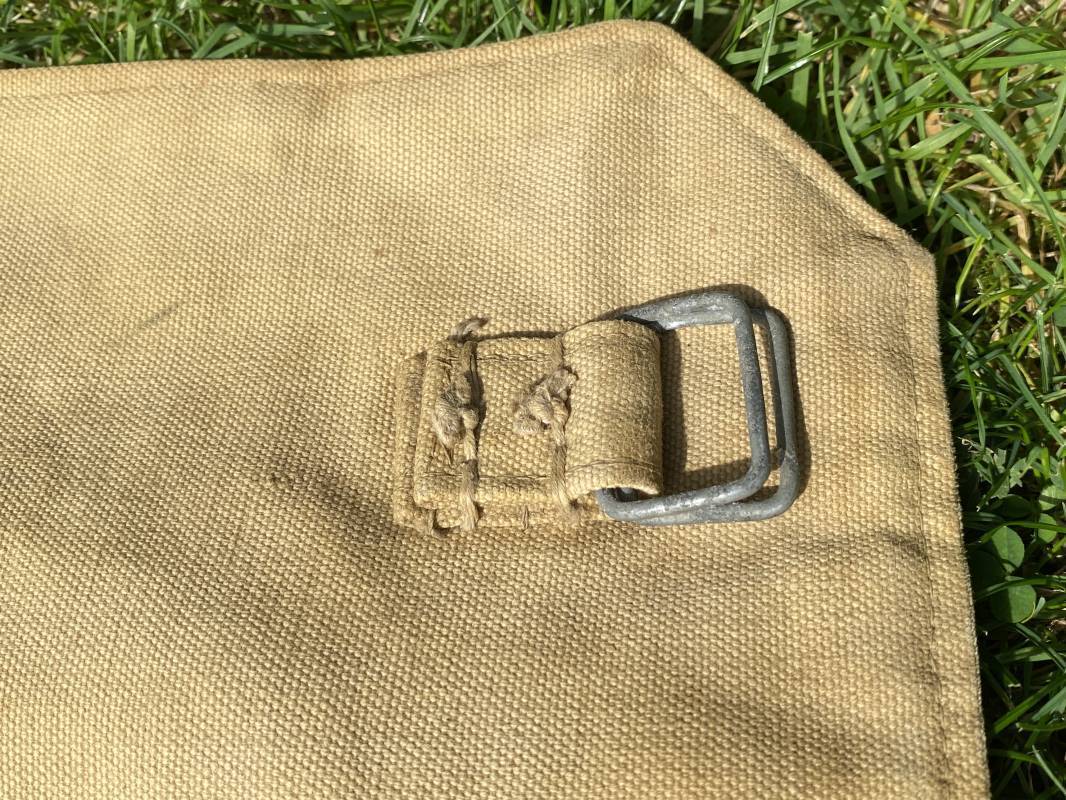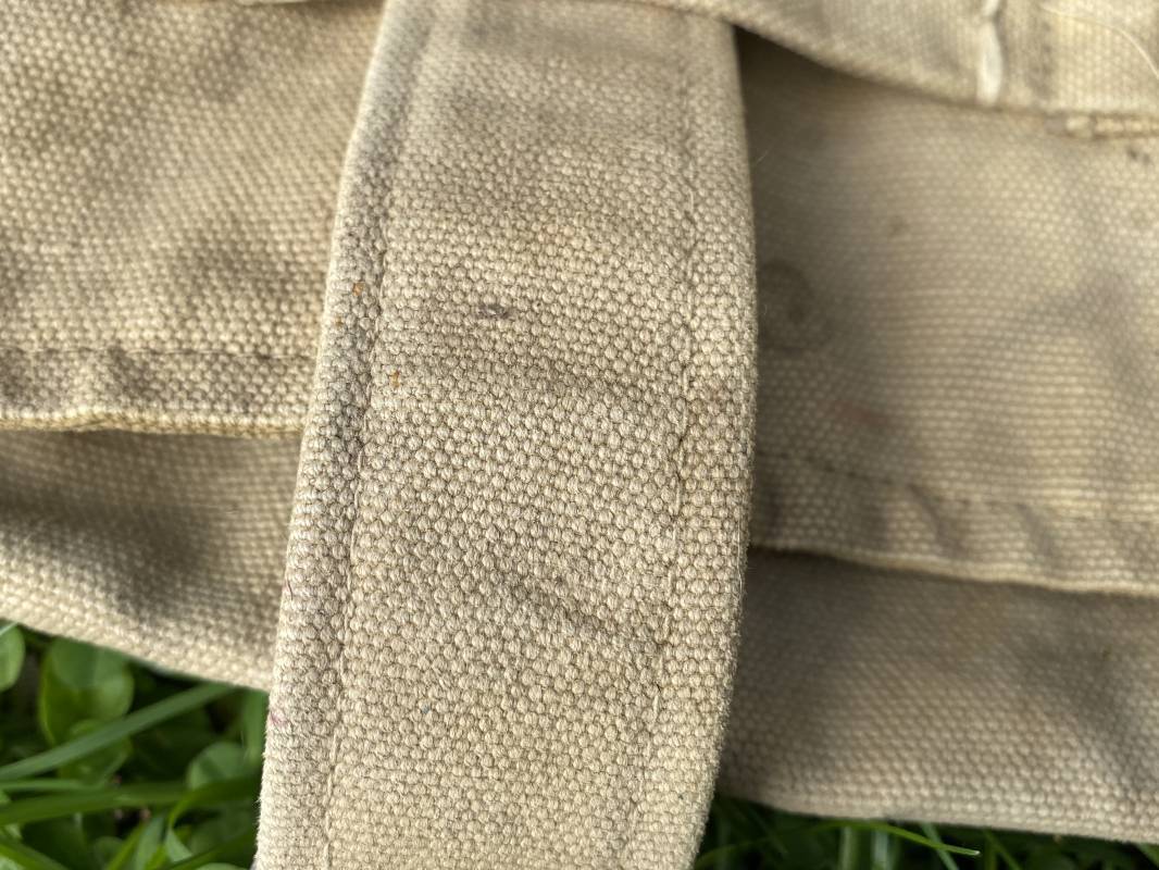 Sac a dos modéle 1915 de fabrication Ersatz . Forte toile kaki clair . Bretelles toile et boucleries métalliques . Grande sangle frontale pour le port de la marmitte et équipements divers . Sac porté en bon état . Fabrication dite 'de fortune' typique de l'année 1915 Equipement ersatz peu courant 1915/18 Ref 5773