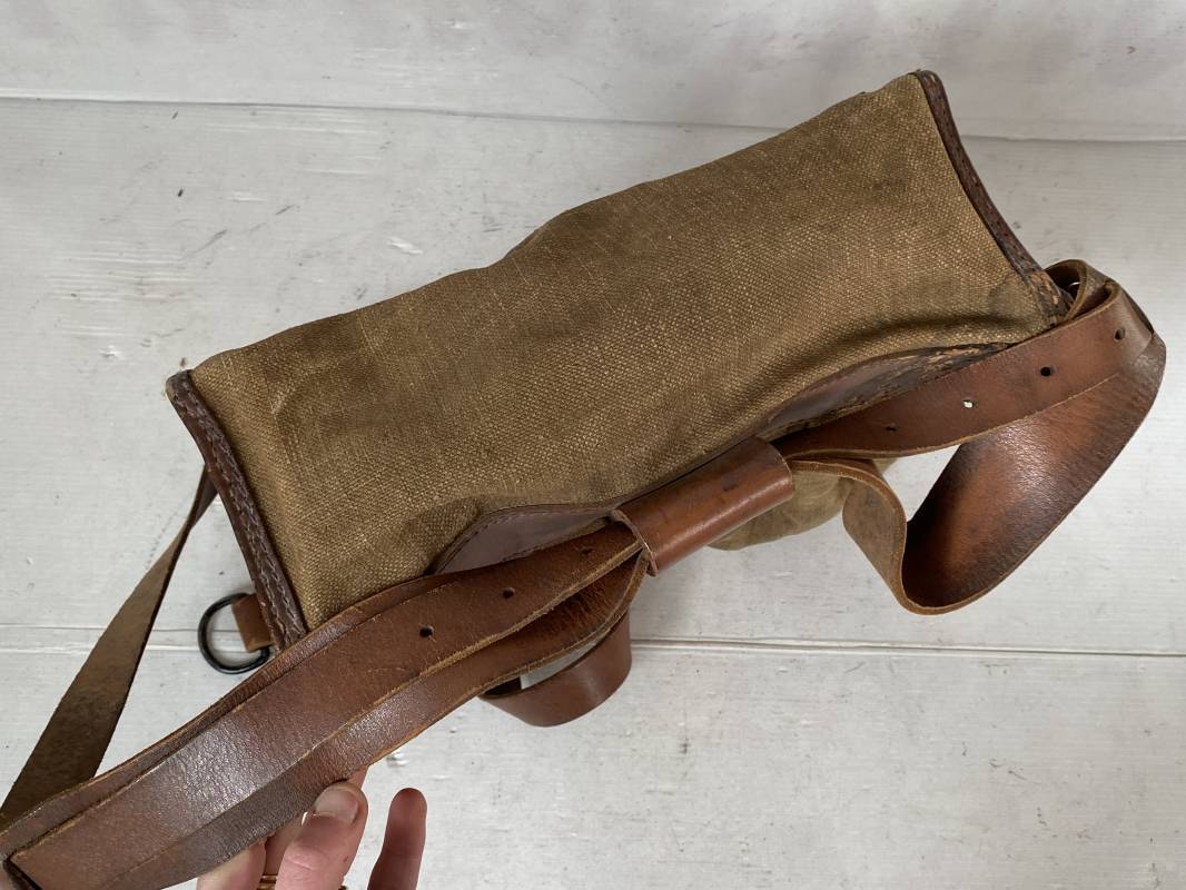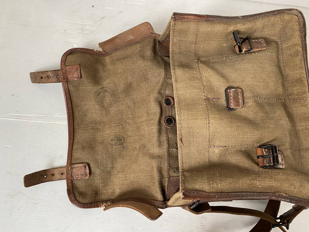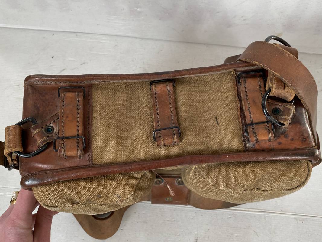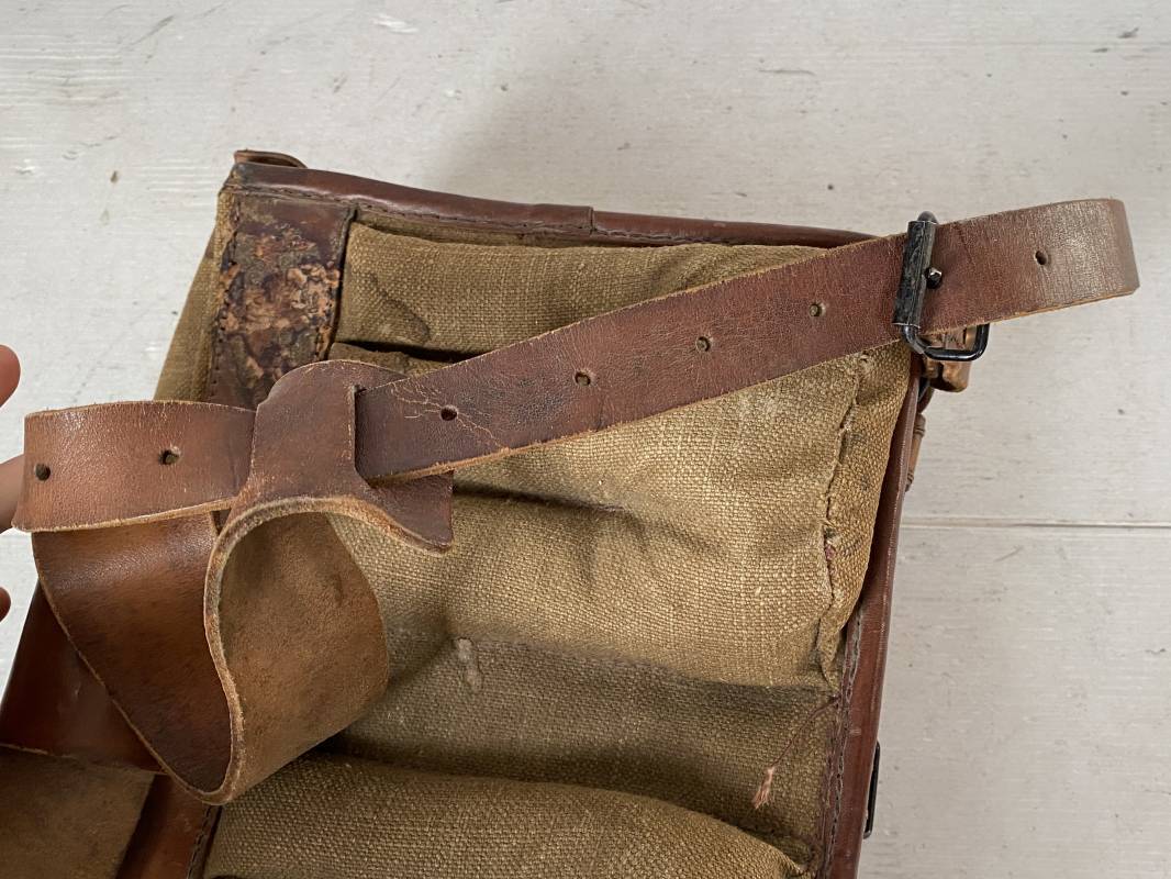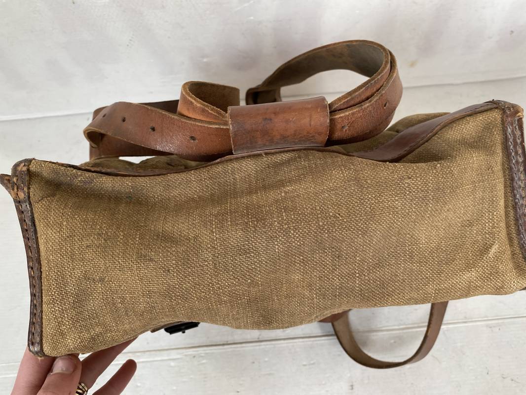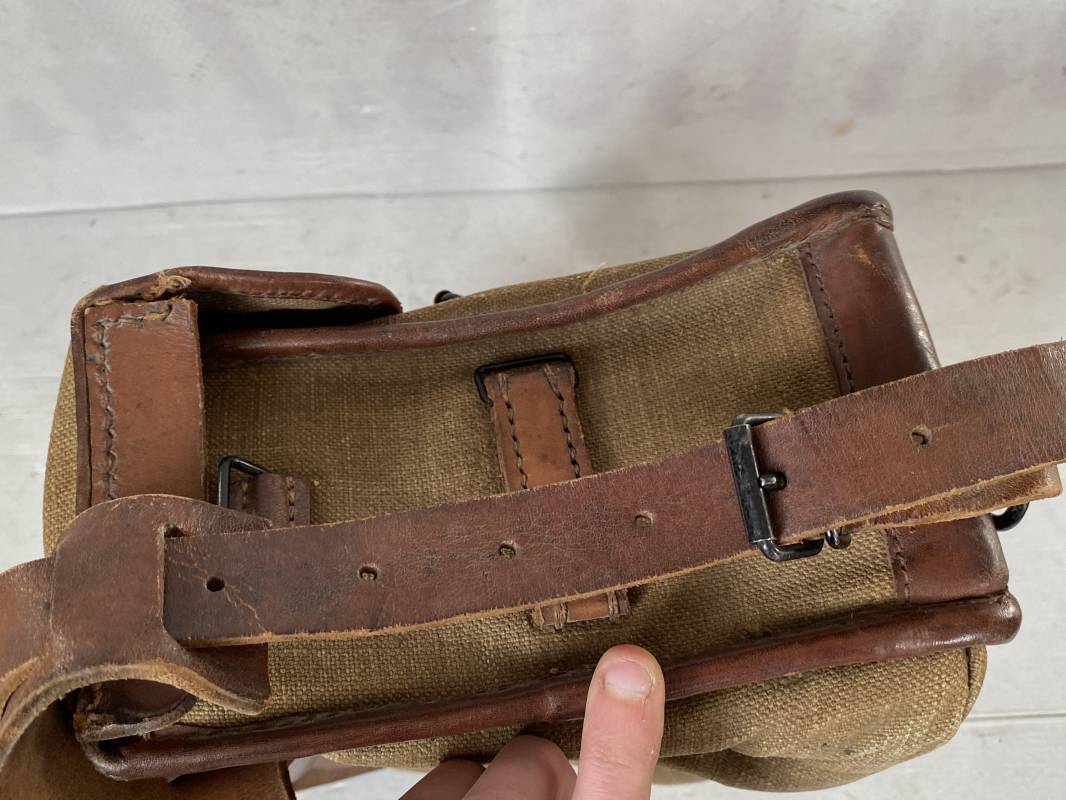 Rare sac à dos de pourvoyeur du FM 24/29.Sac à dos porte chargeurs Sac en toile kakie . Bretelles en cuir fauve, boucles et crochets métalliques. Intérieur avec compartiments en toile. Patelette de fermeture avec boucles métalliques. Tampon encre fabricant date illisible. Légèrement porté en parfait état, bel équipement peu courant 1935/40. Ref 14592