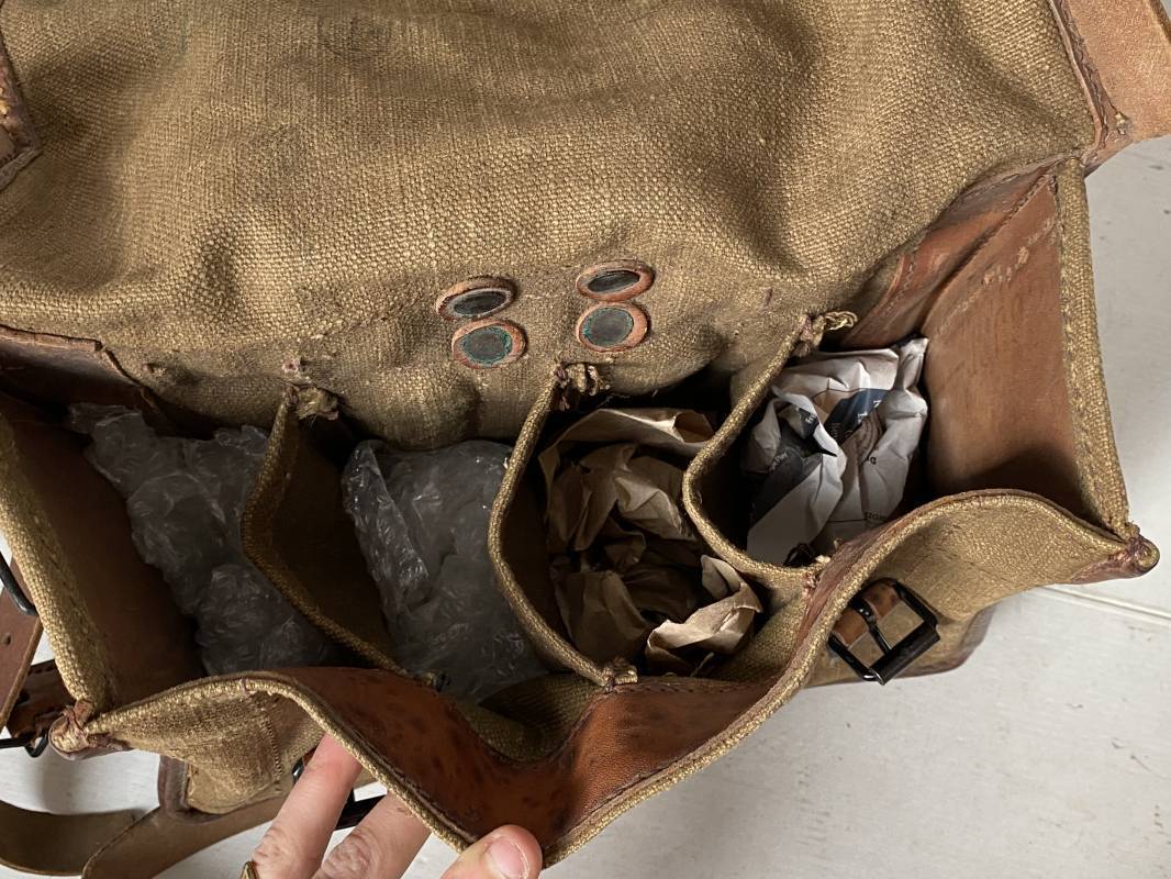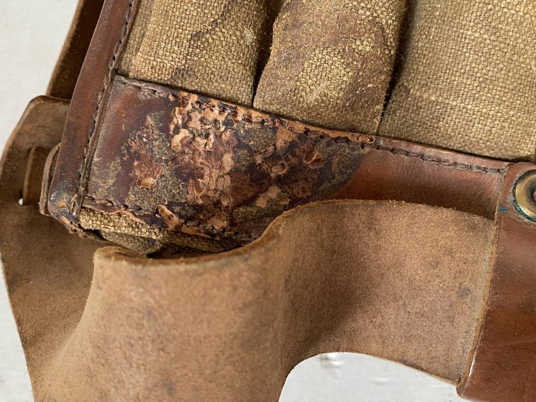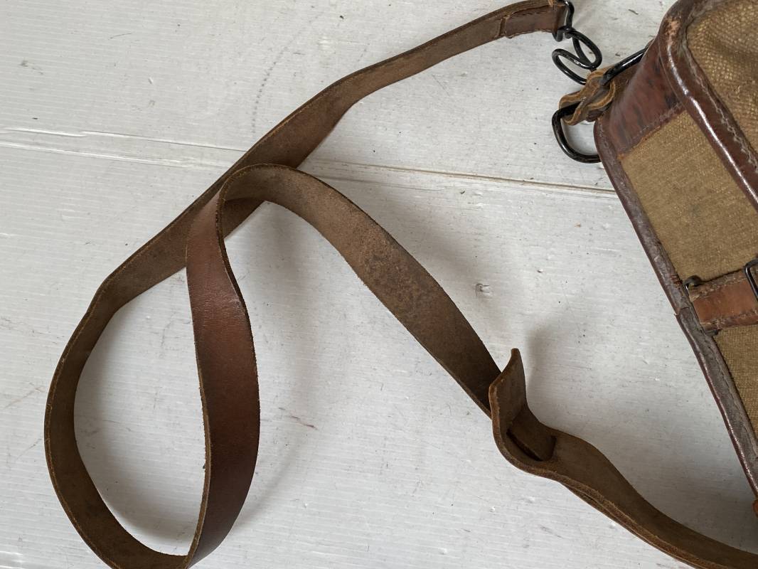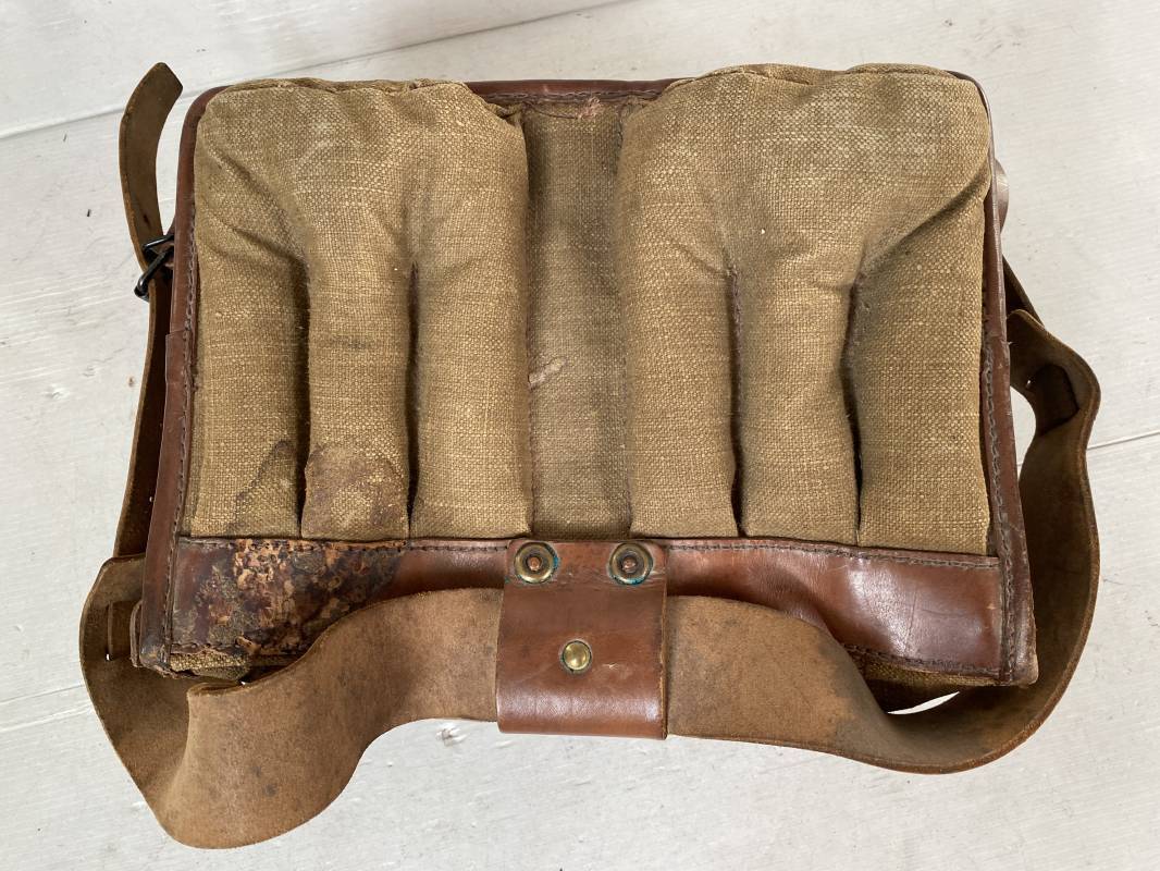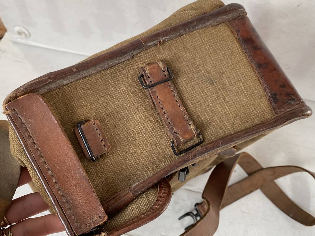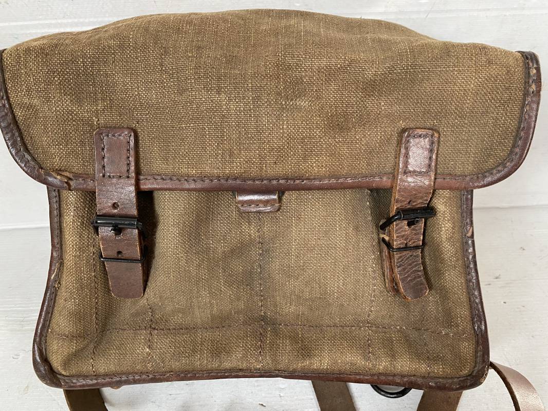 Rare sac à dos de pourvoyeur du FM 24/29.Sac à dos porte chargeurs Sac en toile kakie . Bretelles en cuir fauve, boucles et crochets métalliques. Intérieur avec compartiments en toile. Patelette de fermeture avec boucles métalliques. Tampon encre fabricant date illisible. Légèrement porté en parfait état, bel équipement peu courant 1935/40. Ref 14592