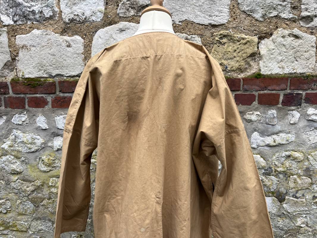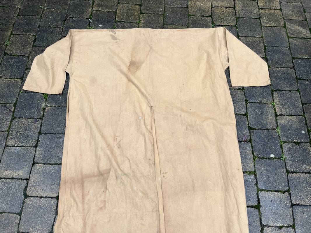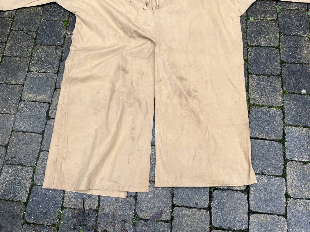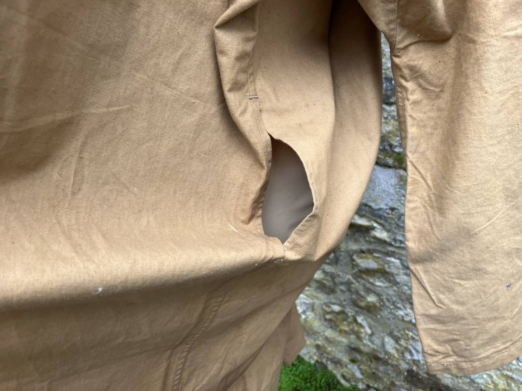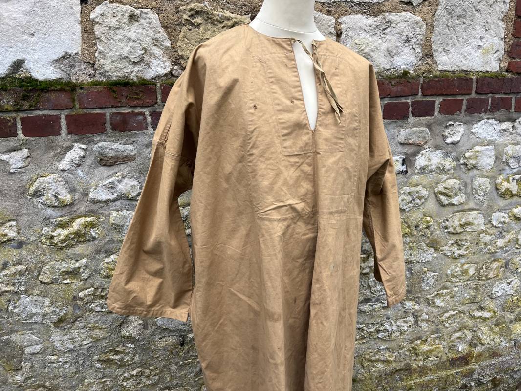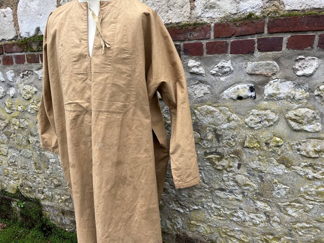 Trés belle gandourah d un spahis en coton kaki . Gandourah de dotation . Fermeture frontale avec lacet en coton kaki , deux poches intérieures . Deux fentes latérales d acces a la culotte . Fentes avant et arrières . Tampon rond fabricant Maison LANIEL Vimoutiers Daté 1935 . Tampon oval de réception daté 08 3 39 Taille 1 Largeur épaules 50 cm manches 57 cm longueur 125 cm . Belle de coton kaki clair . Légérement porté en parfait état . Rare uniforme d un spahis en mai juin 1940 21861