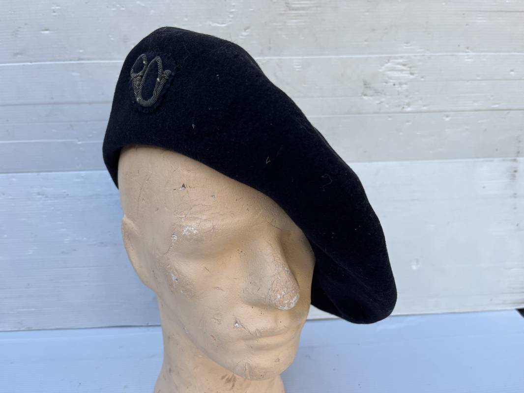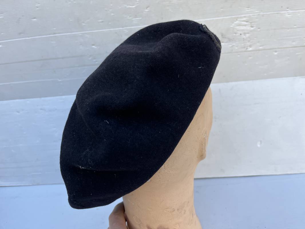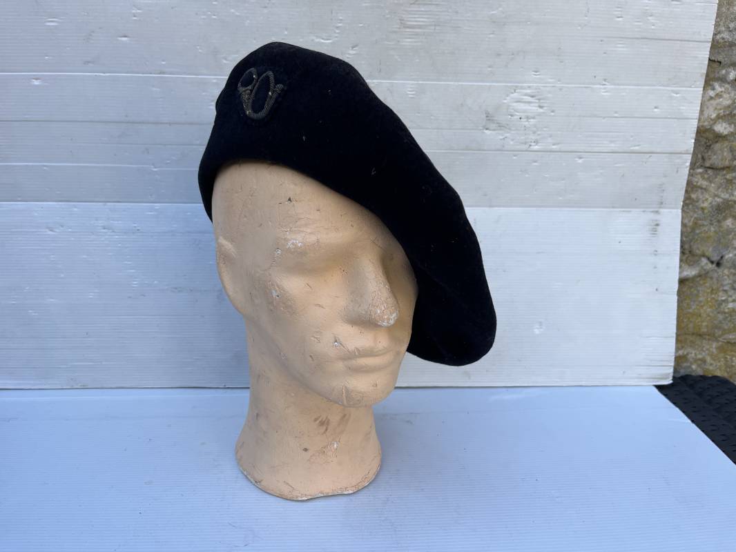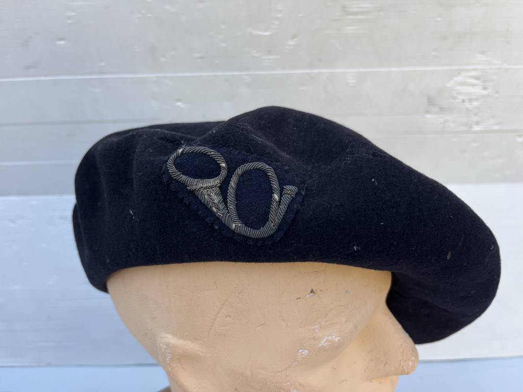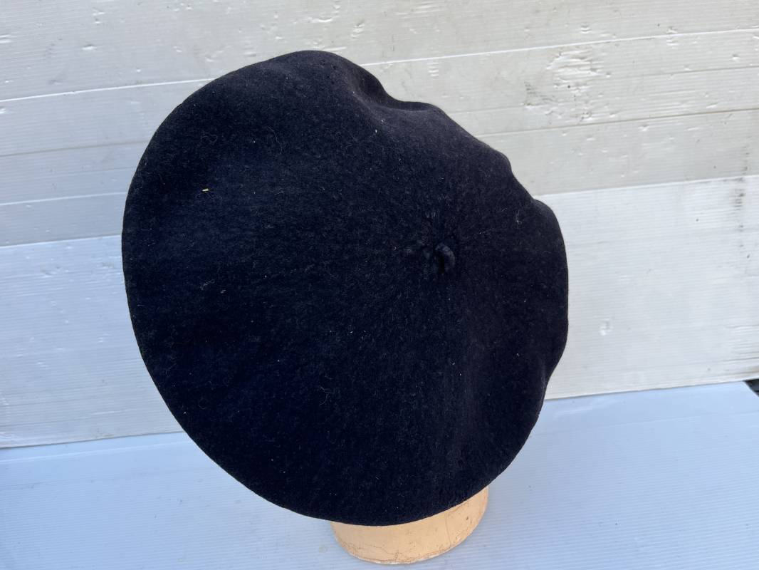 Trés belle tarte d un chasseur alpin . Tarte de dotation en drap de laine bleu nuit Diametre 32 cm . Cor de chasse brodé en cannetille argent cousu d origne pour cadre ( officier ou sous officier ) . Intérieur doublé en coton blanc . Tampon rond encre noir fabricant difficilement lisible Taille 59 . Légérement porté en tres bel état 1935/40 Ref 19827