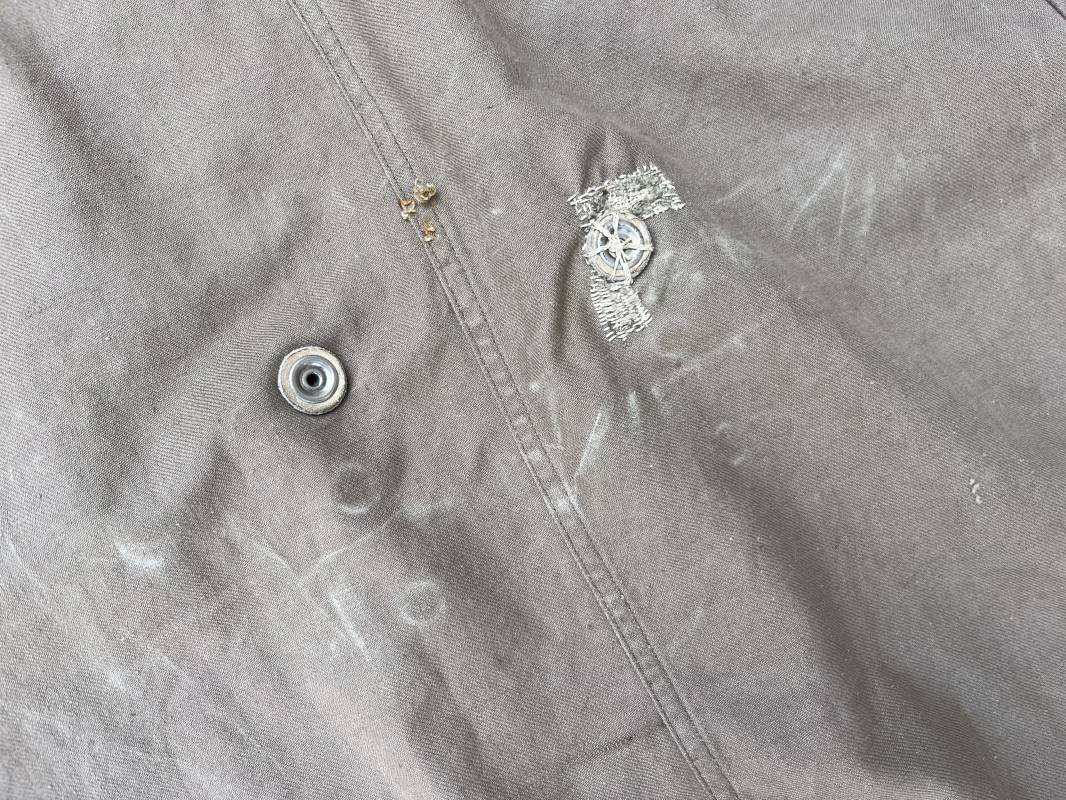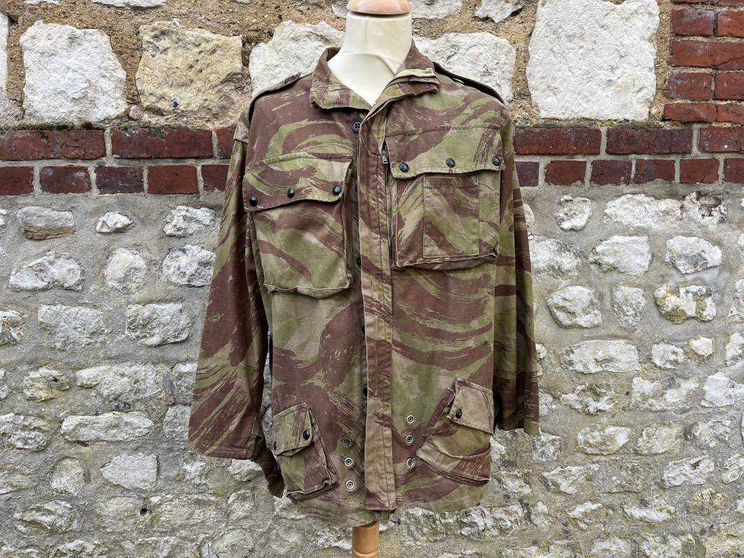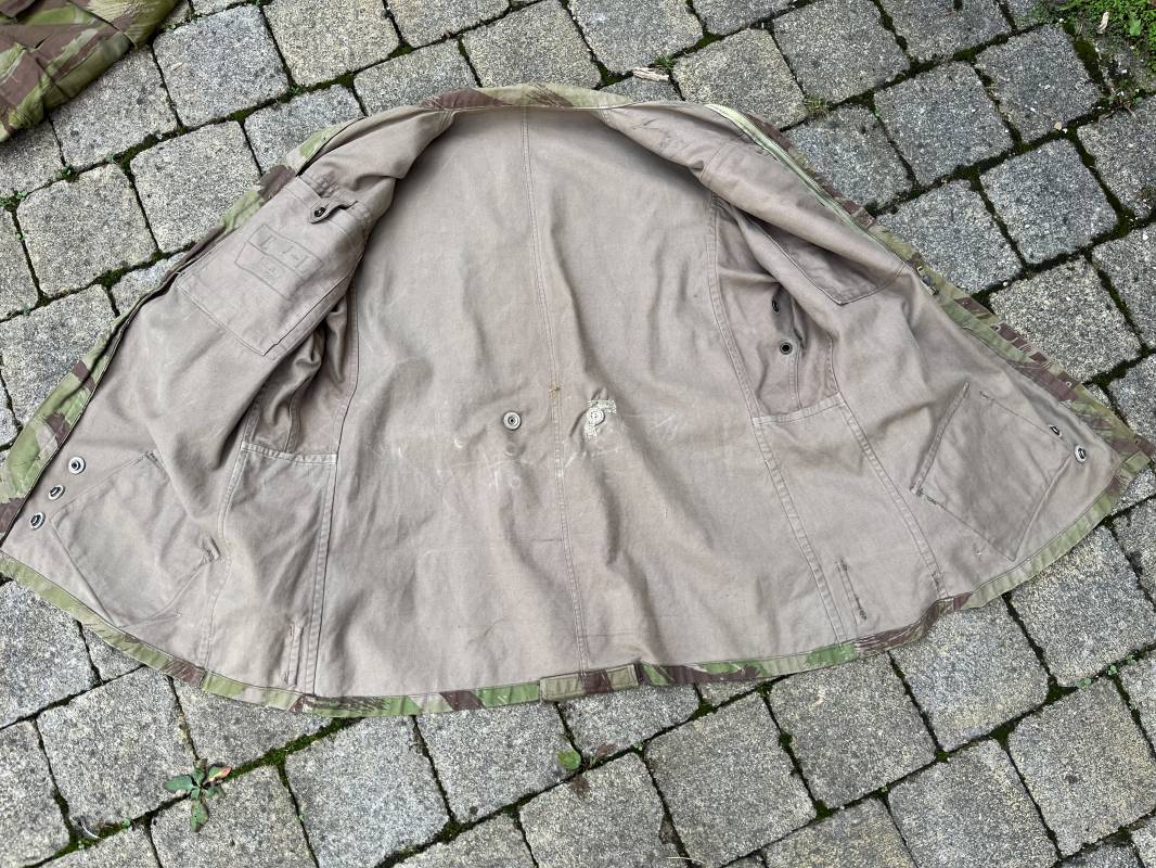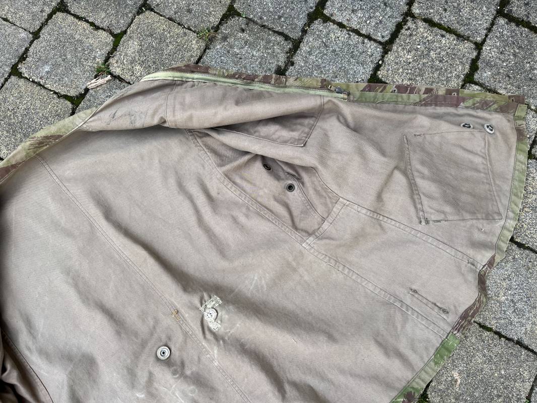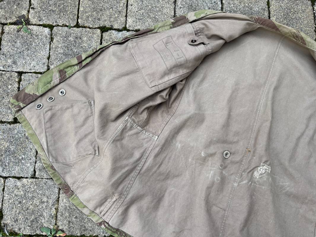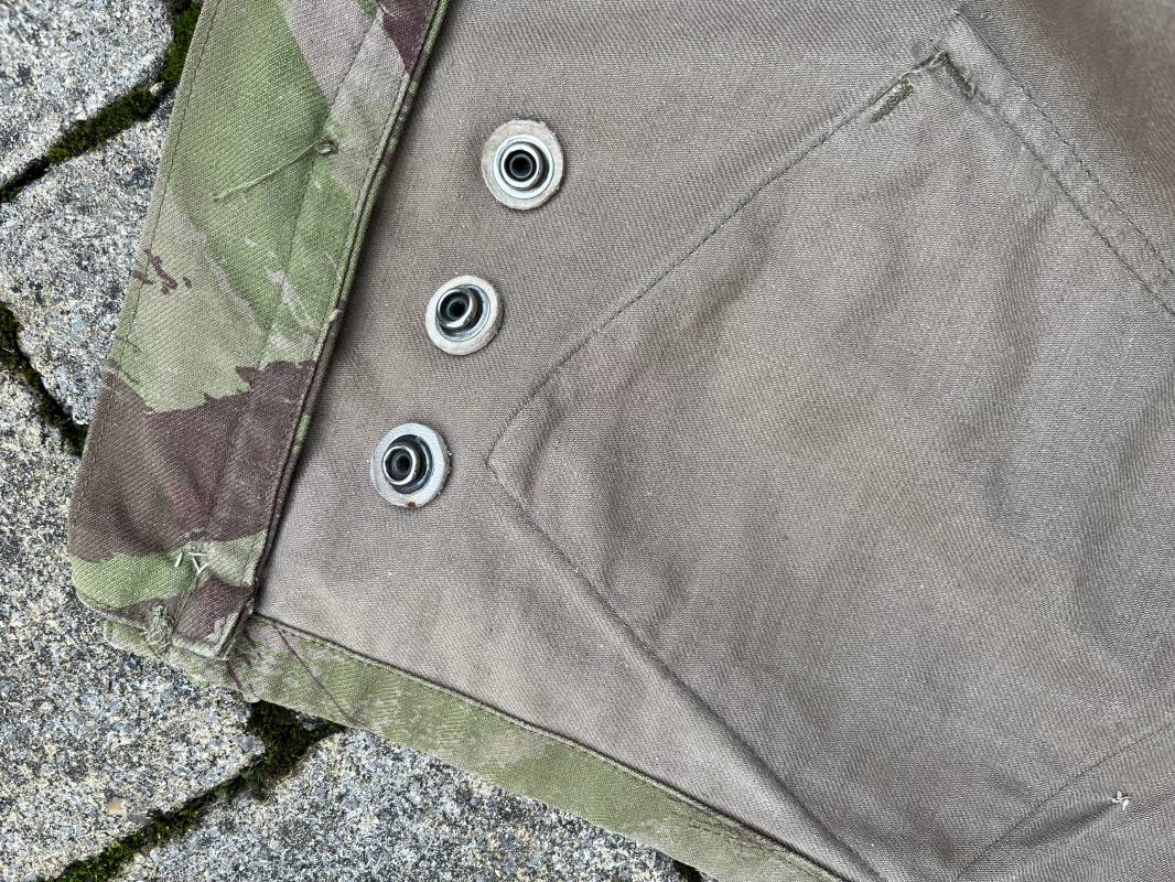 Rare Veste de saut Parachutiste Modèle TAP 1947/52 , fermeture frontale à huit boutons et glissière d'origine et fonctionnelle fabricant AILEE . Quatre poches à pression dont une à glissière fonctionnelle et d'origine fabricant AILEE . Pattes de serrage en bouts de manches avec larges boucles en métal anodizé . Pattes d épaules . Oeillets de ventilation sous les aisselles . Marquage fabricant 'S.I.A. Jouet les tours '. Taille E 1 L . Queue de castor avec pressions . Largeur épaules 50 cm , logueur 80 cm , manches 58 cm . Veste légèrement portée en parfait état . Trés belle patine générale . Rare veste typique de la bataille de Dien bien Phu . Veste définitive en collection para indo . Rare Ref 21425